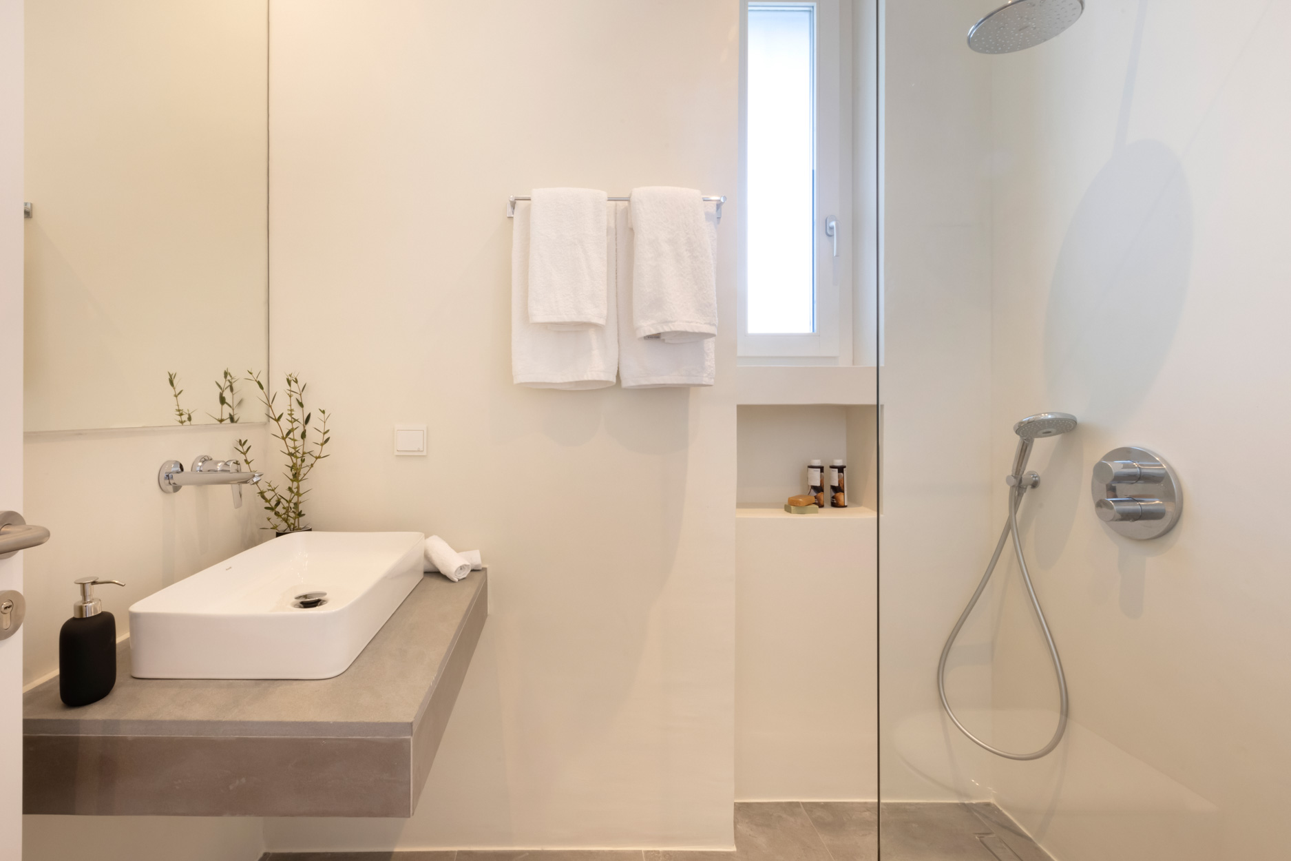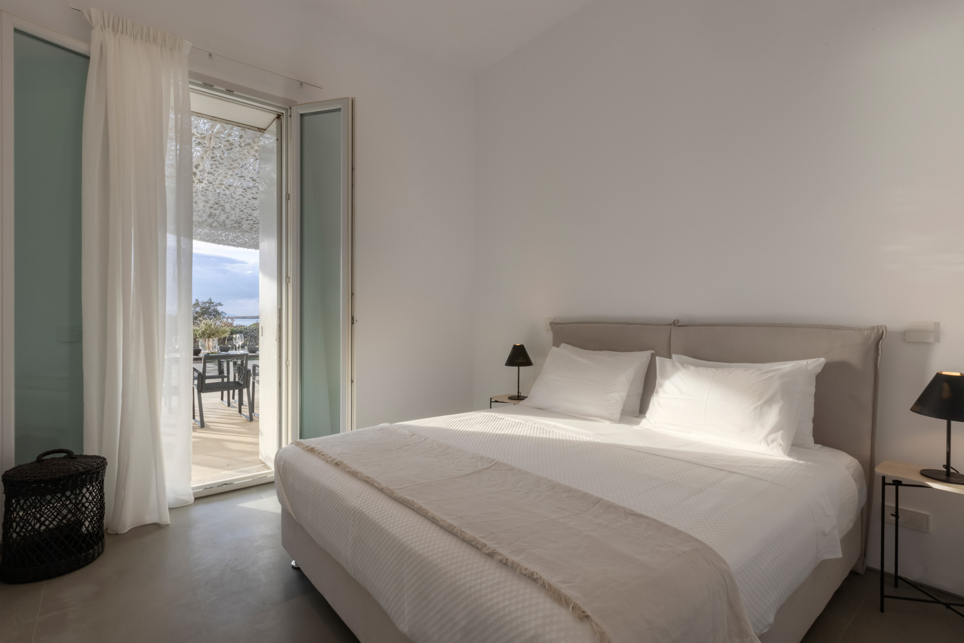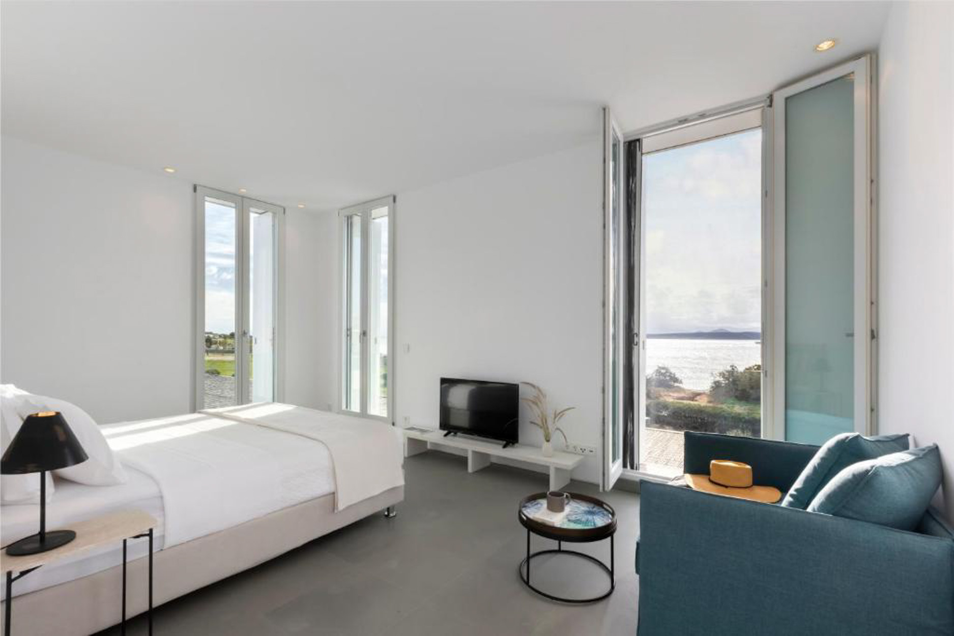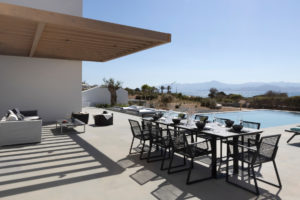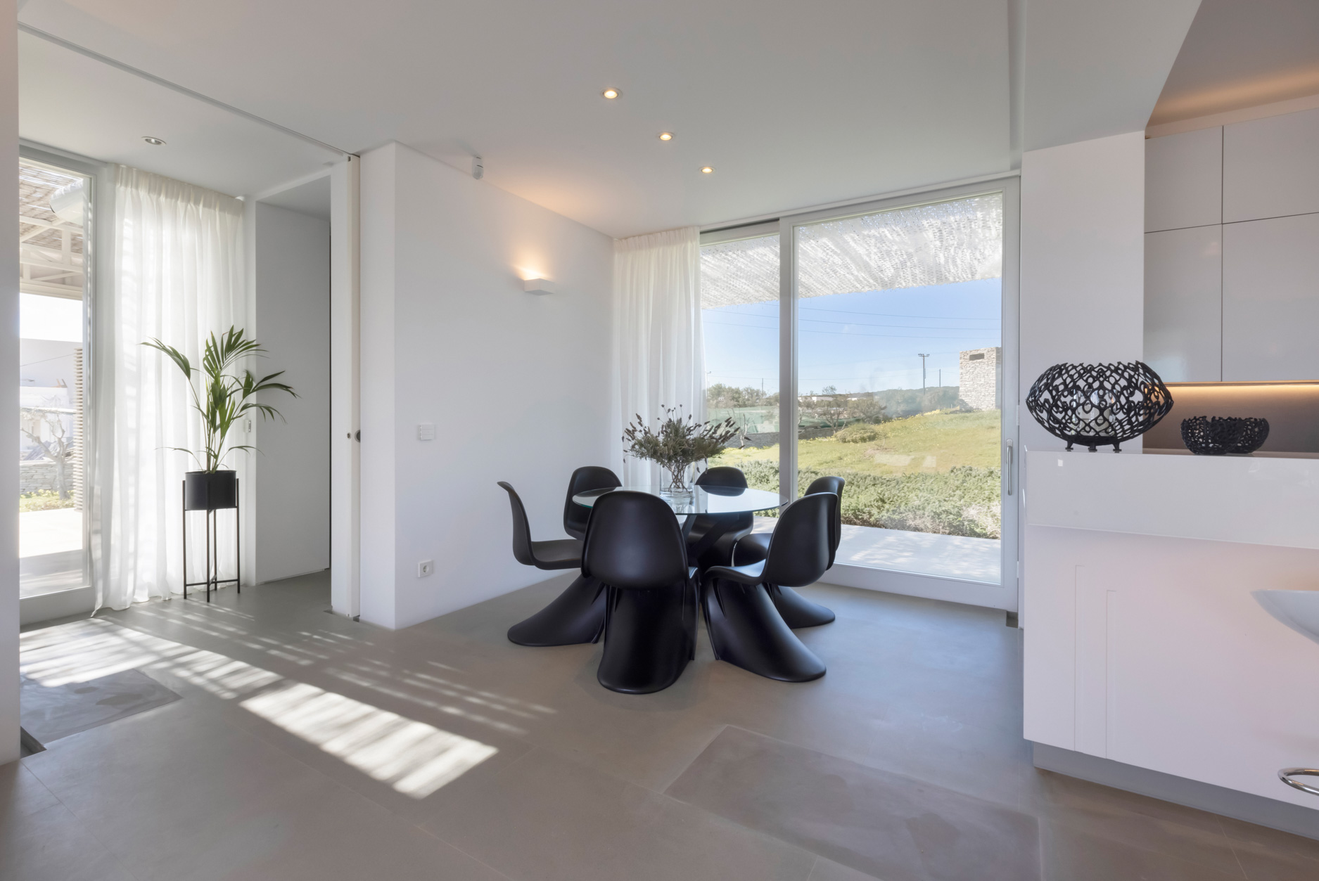 The villa enjoys an exceptional location directly in front of Santa Maria Beach after crossing the road —one of Paros’ most beautiful stretches of golden sand and turquoise water. Guests can enjoy the sea just steps from their door, while the vibrant town of Naousa—with its charming harbor, boutiques, and acclaimed restaurants—is only a short drive away.