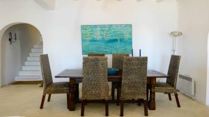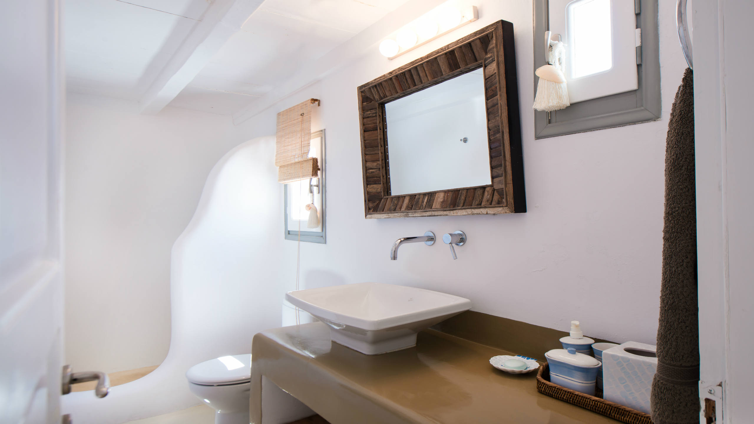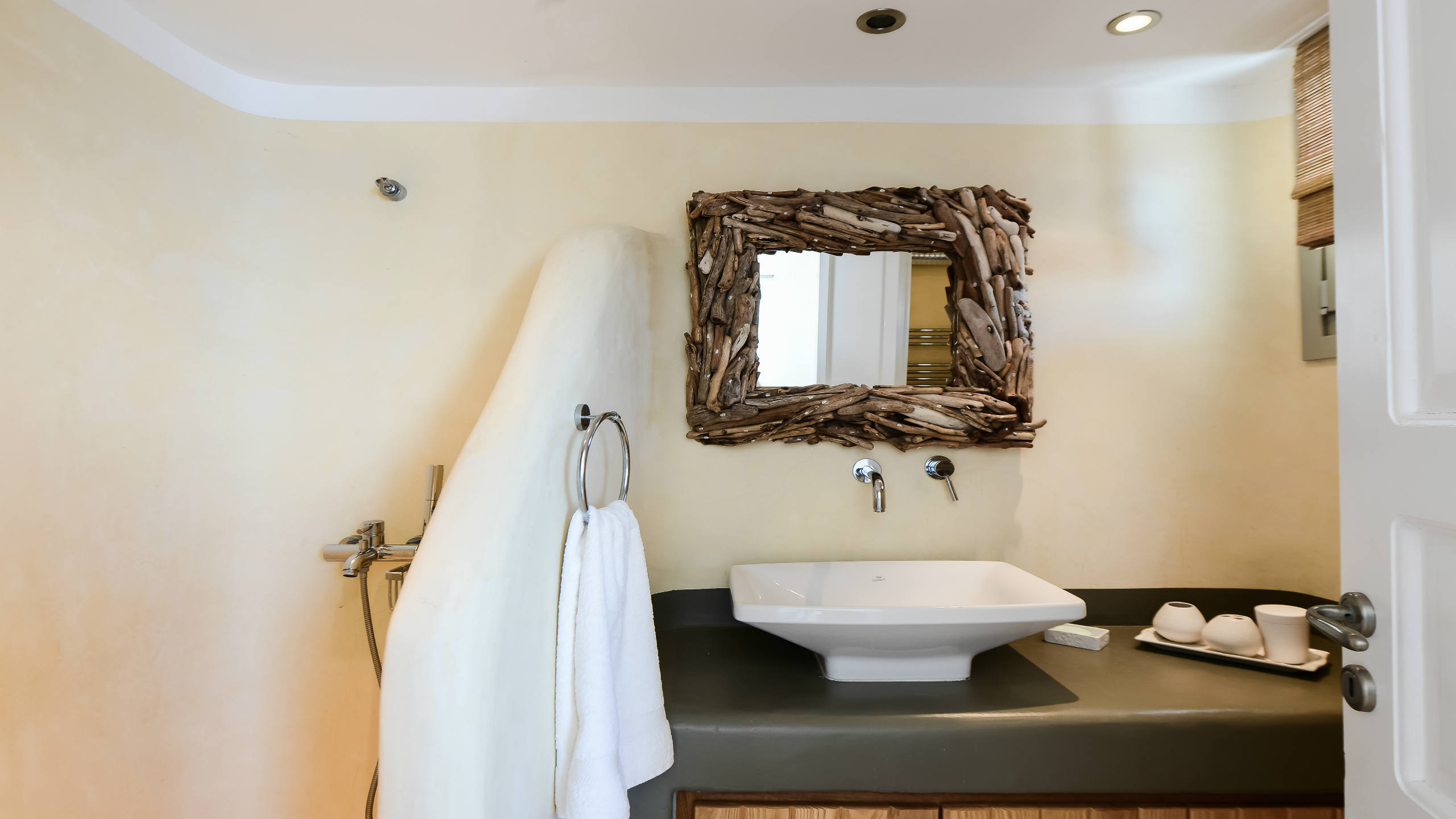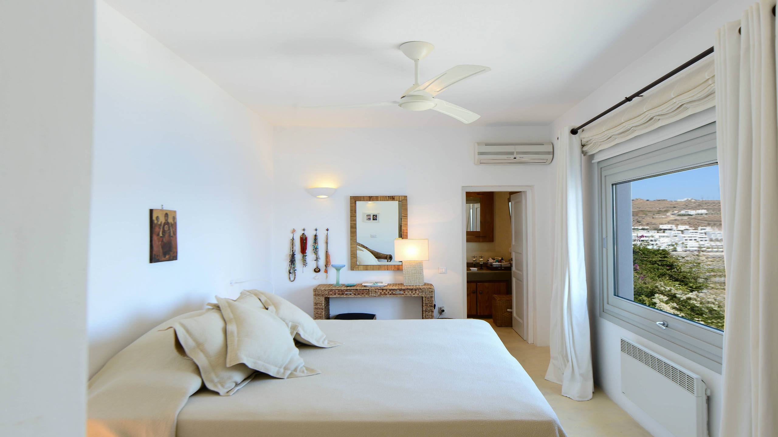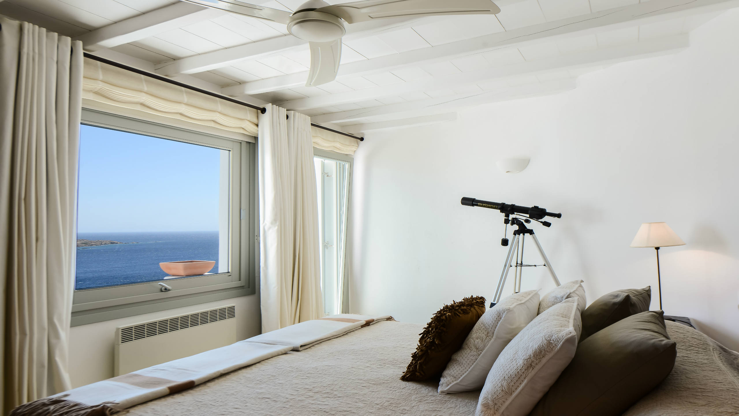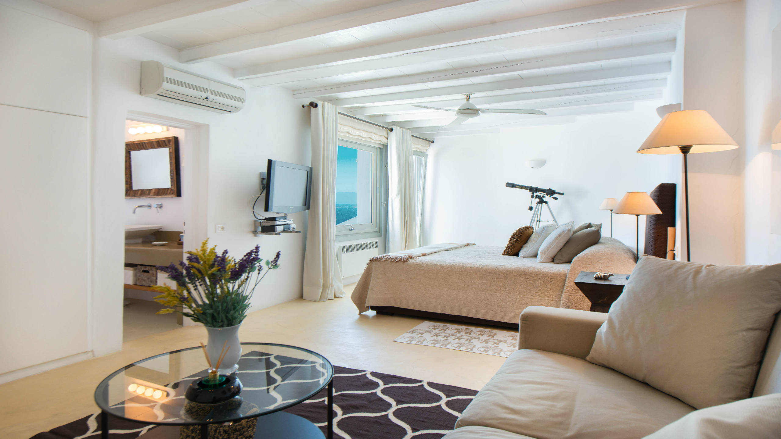 The Villa boasts 4 comfortable double bedrooms, one with its independent entrance and all en suite. Indoors, its pleasant warm colours combine with the Cycladic white to create a homey summer ambience,  Its outdoors offers spectacular views of the surrounding area.