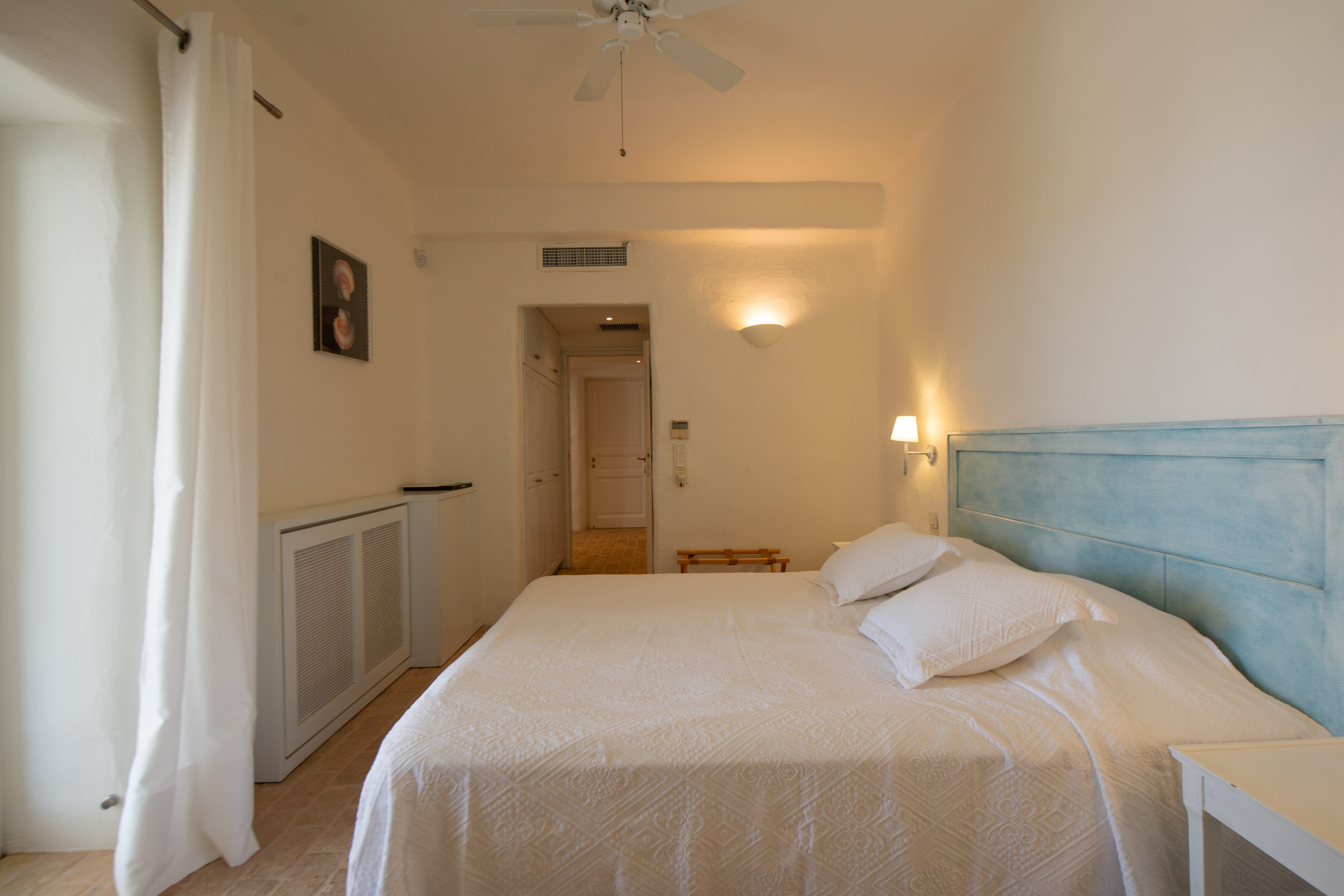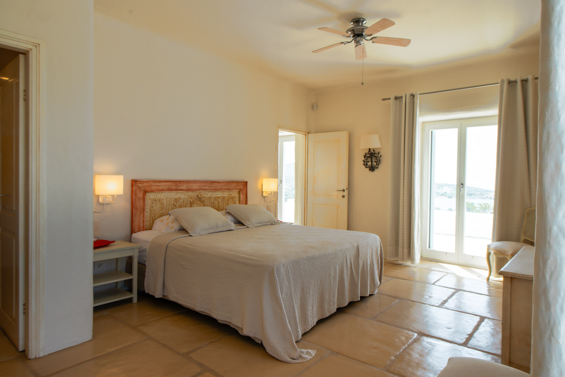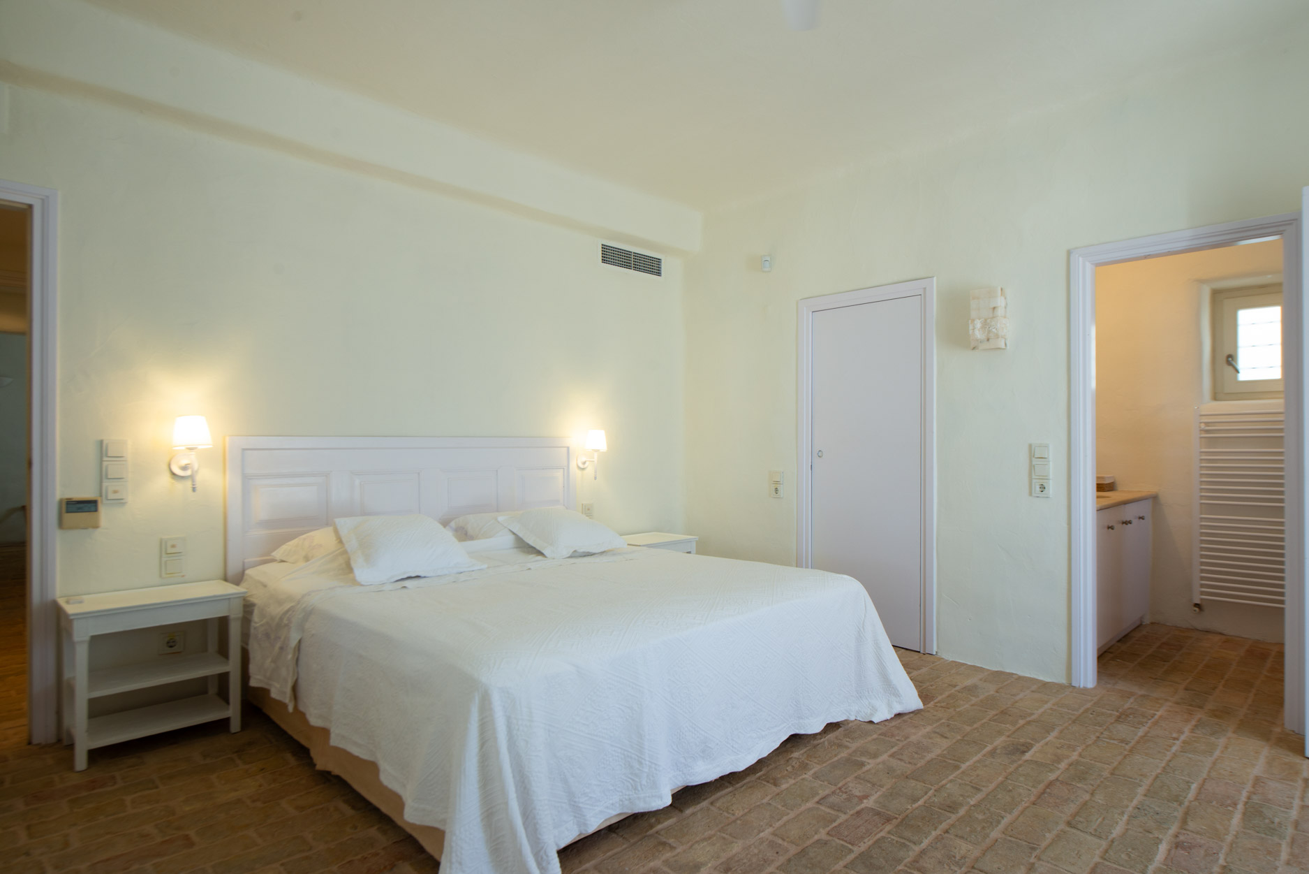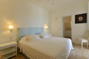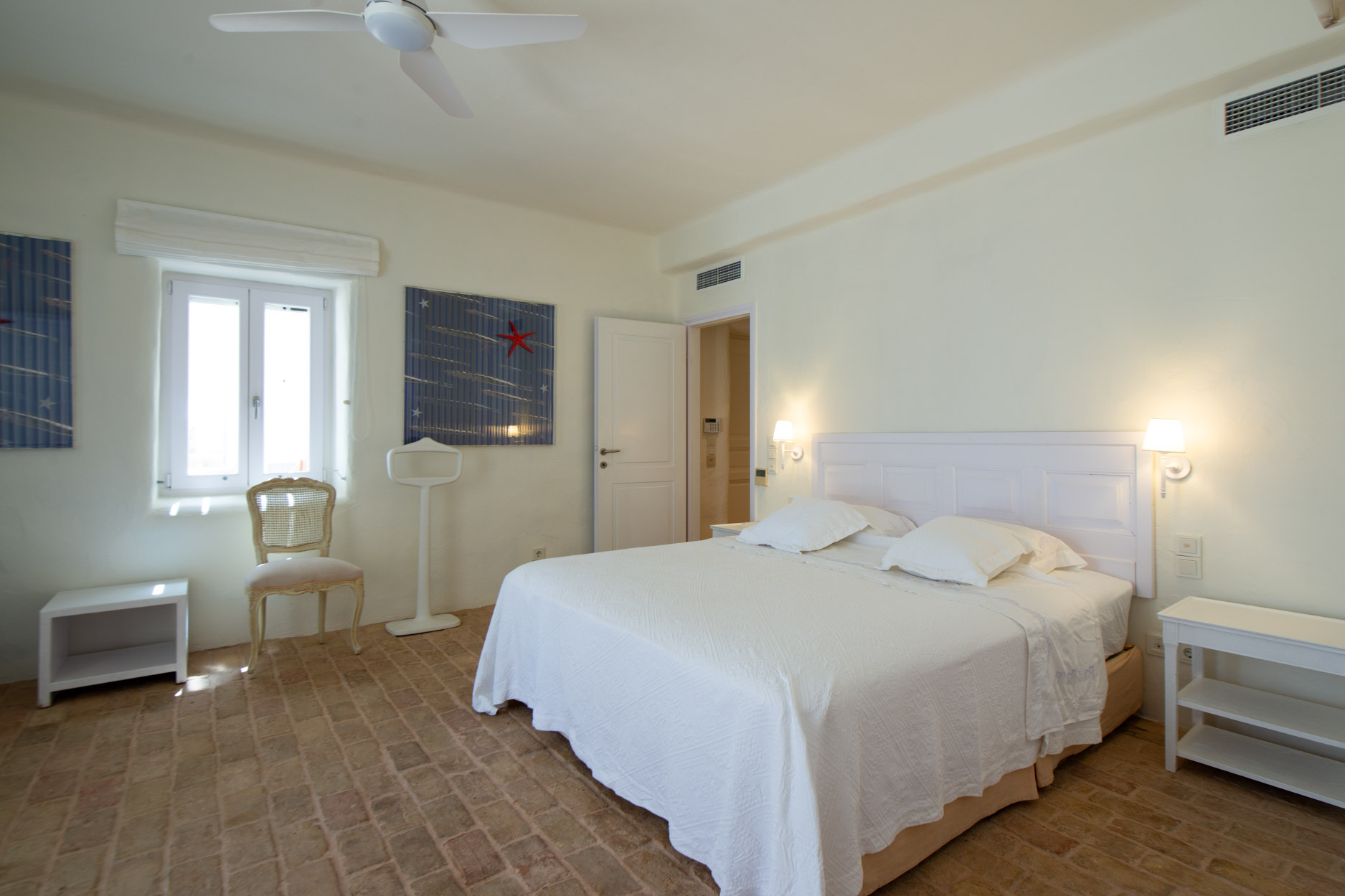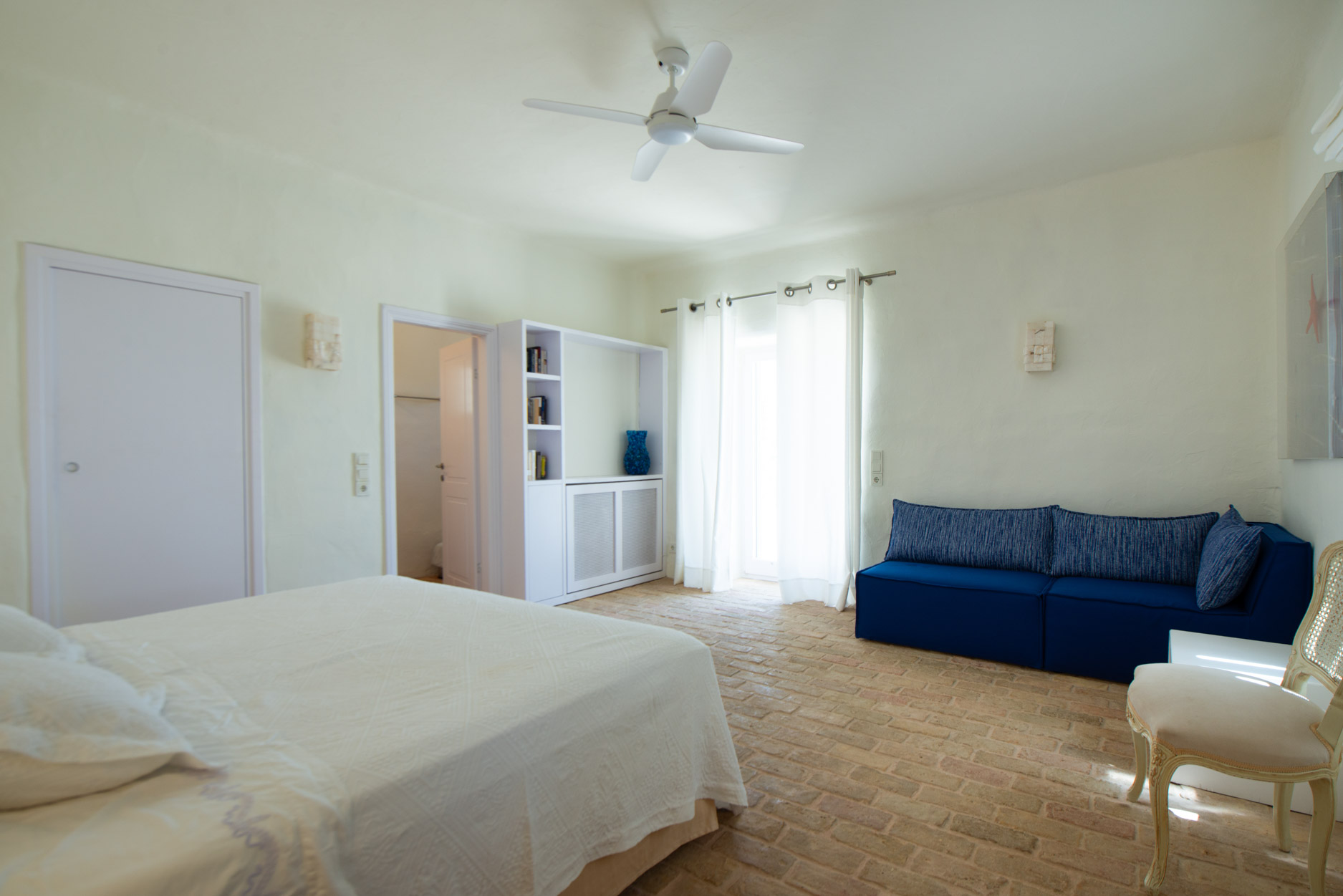 One master bedroom with a king-size double bed, A/C, en-suite bathroom, access to two private terraces, sea view.