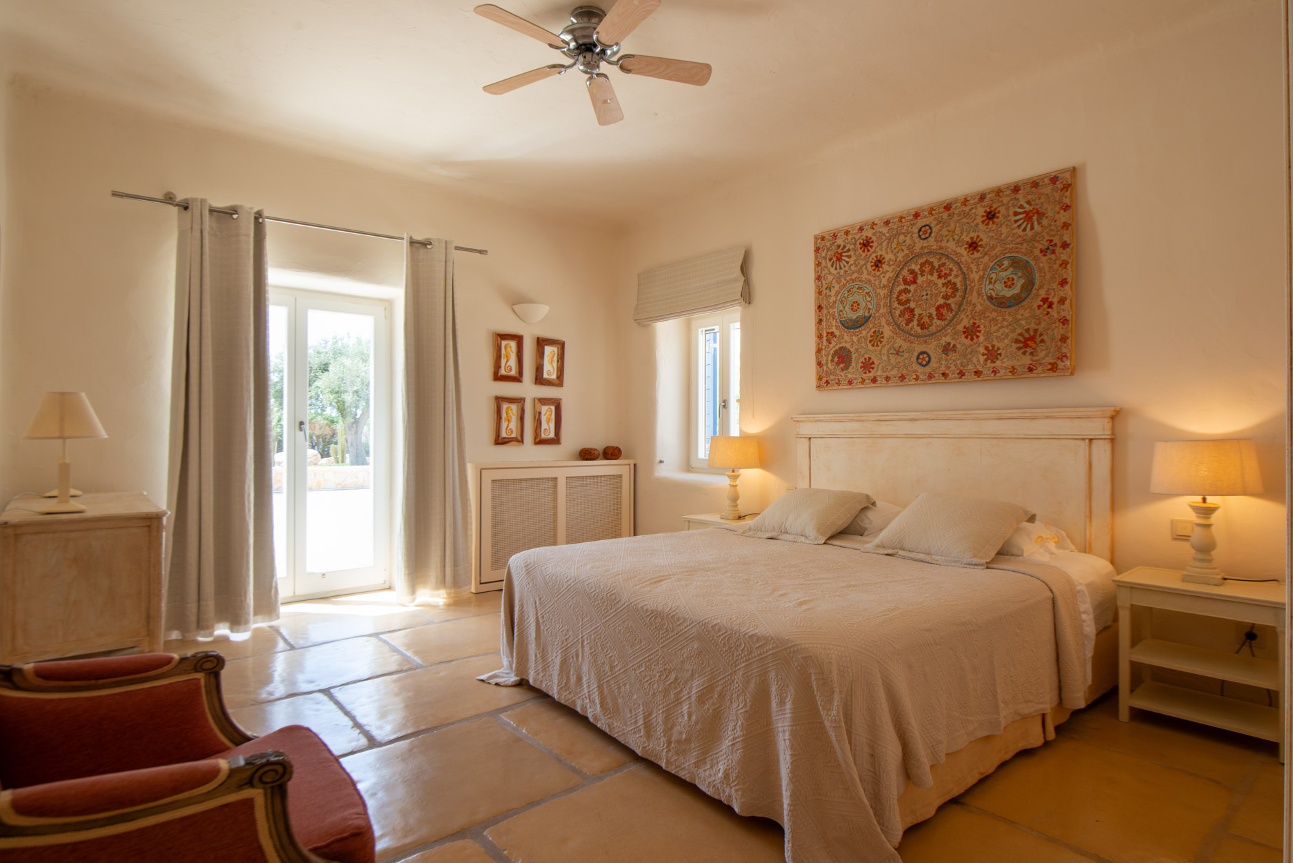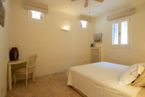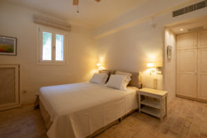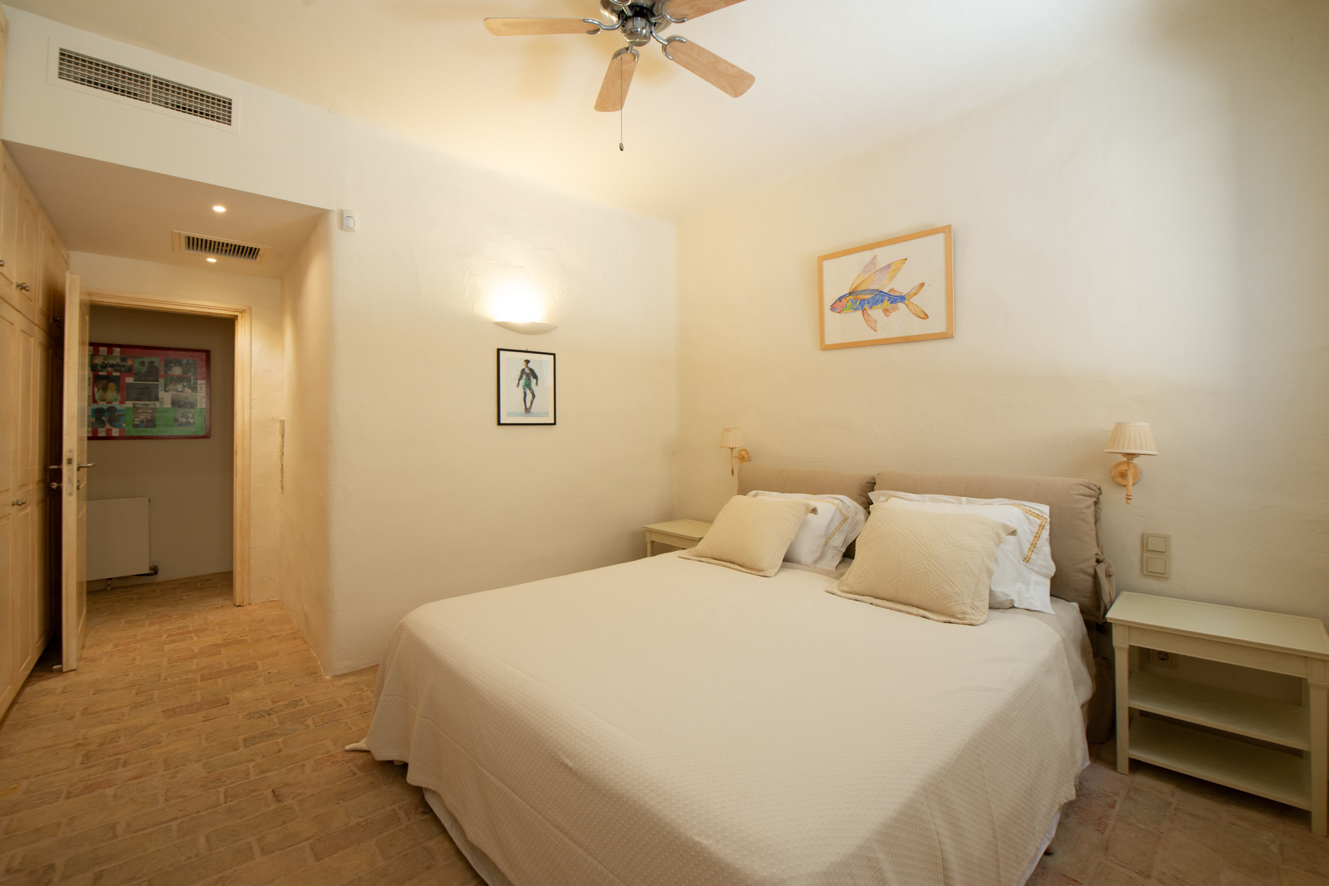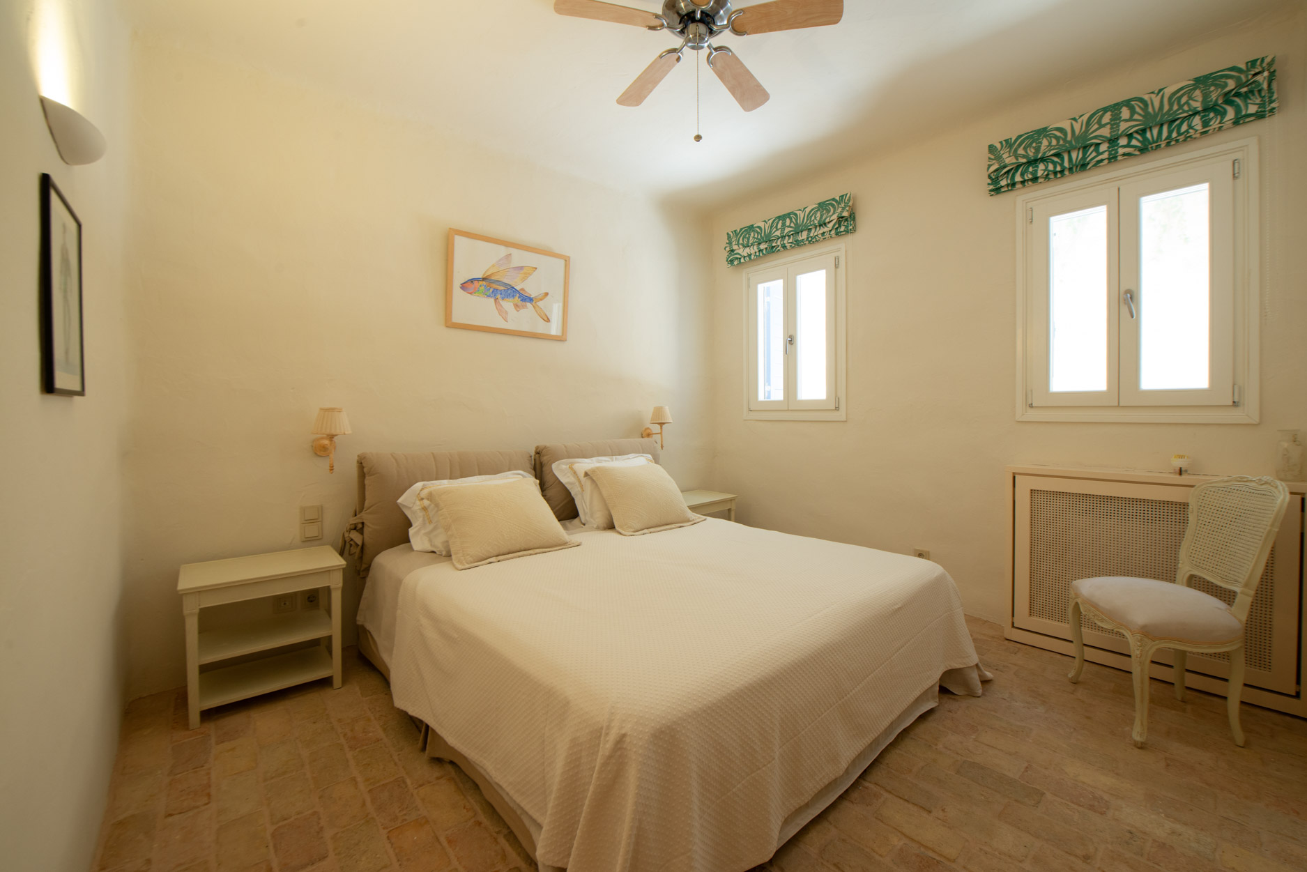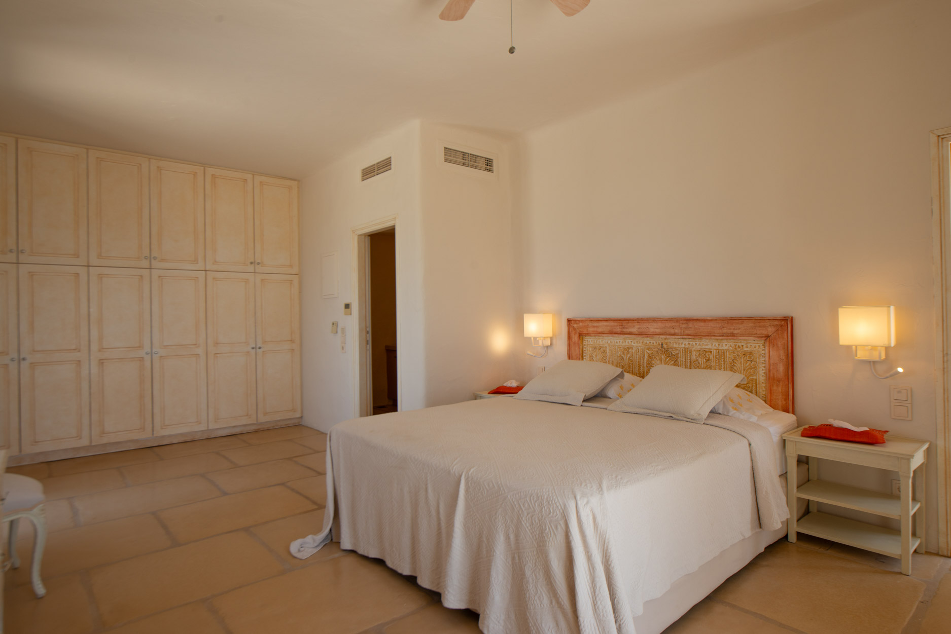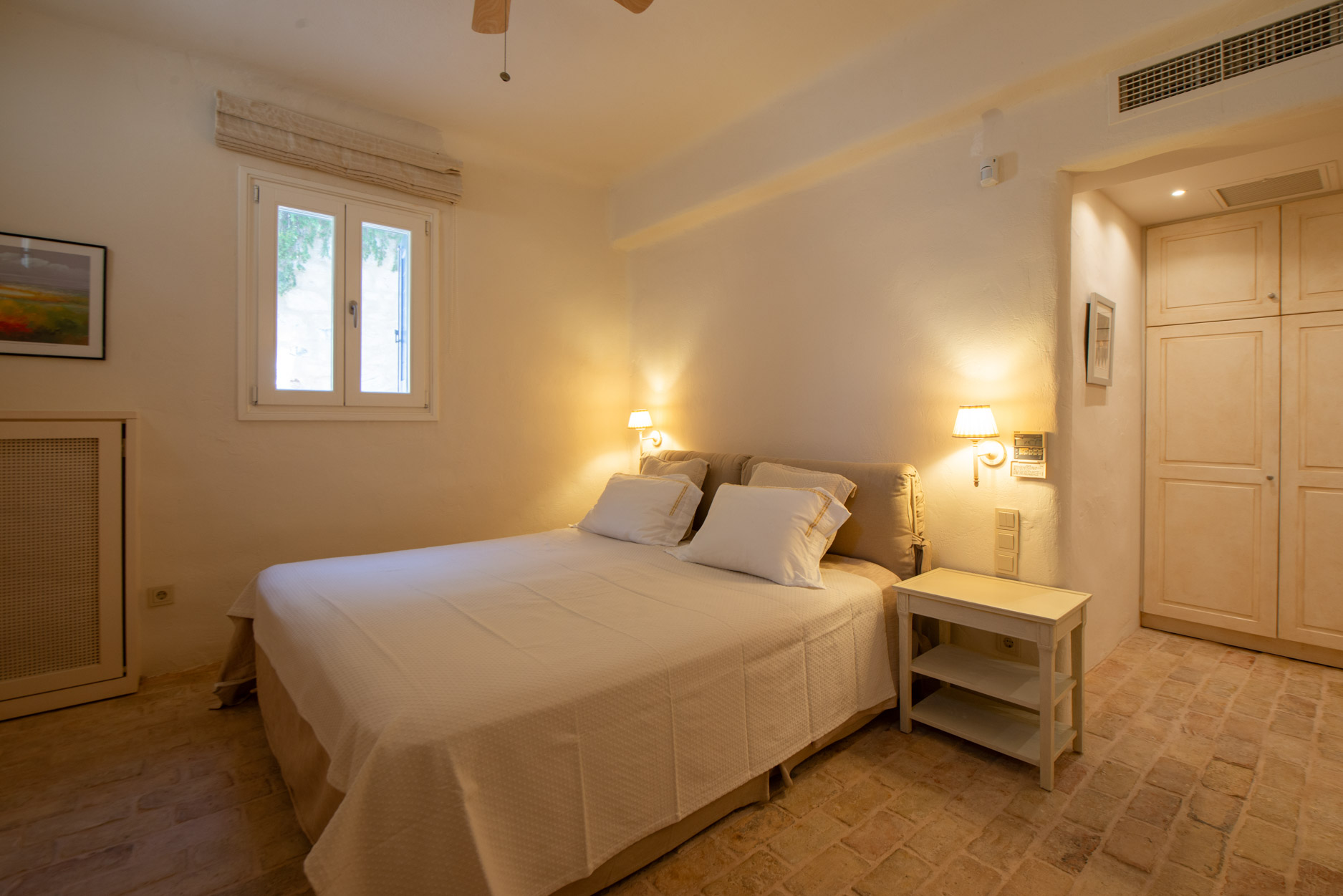 One master bedroom with a king-size double bed, A/C, en-suite bathroom, access to two private terraces, sea view.