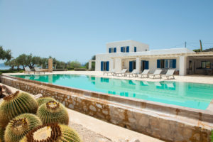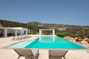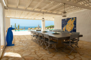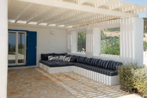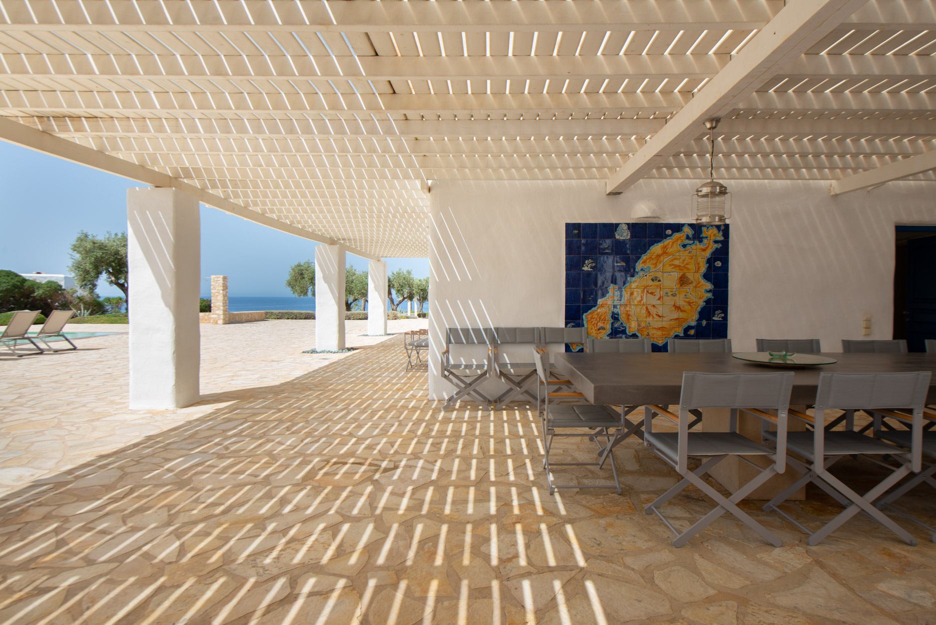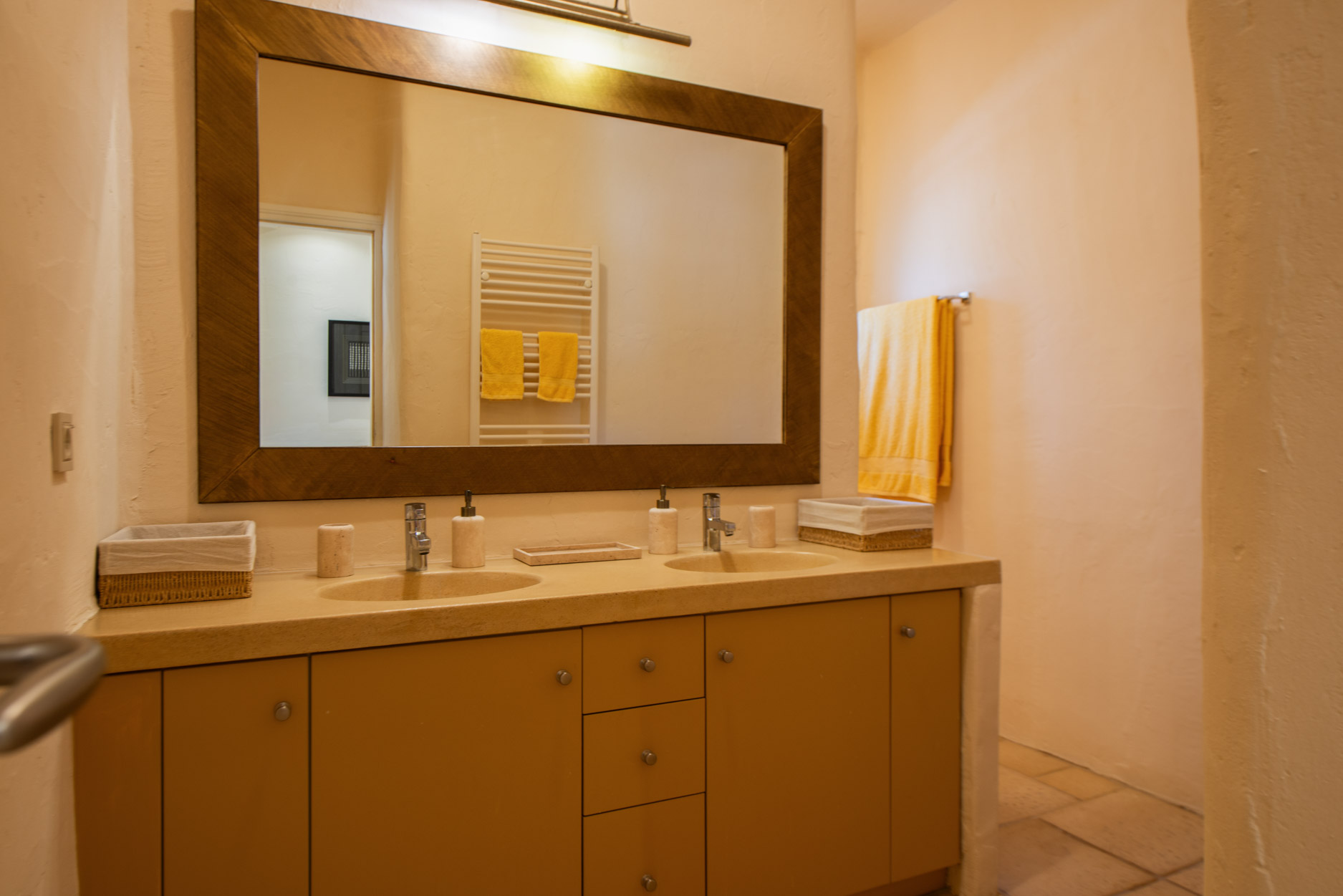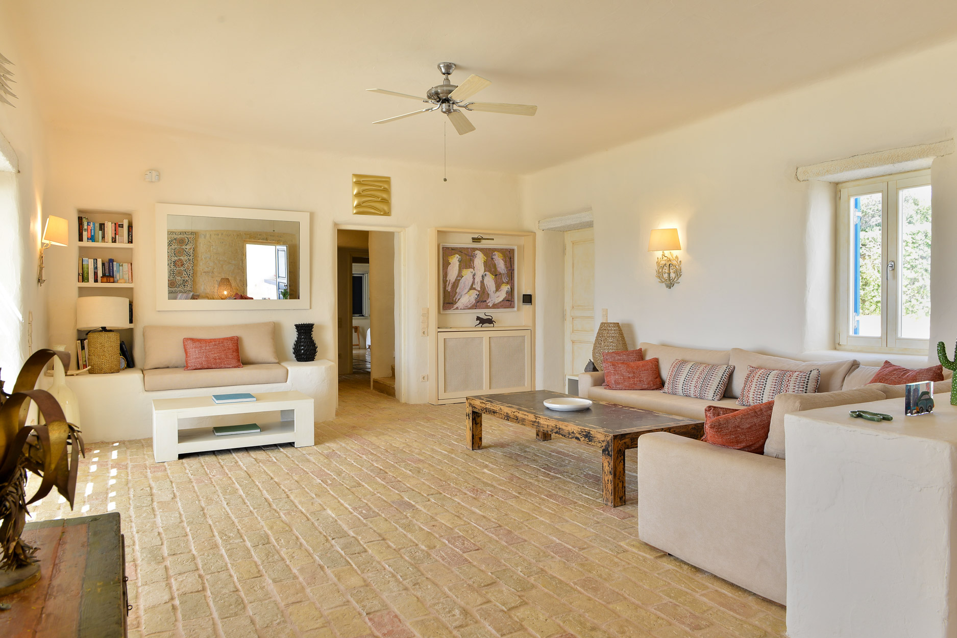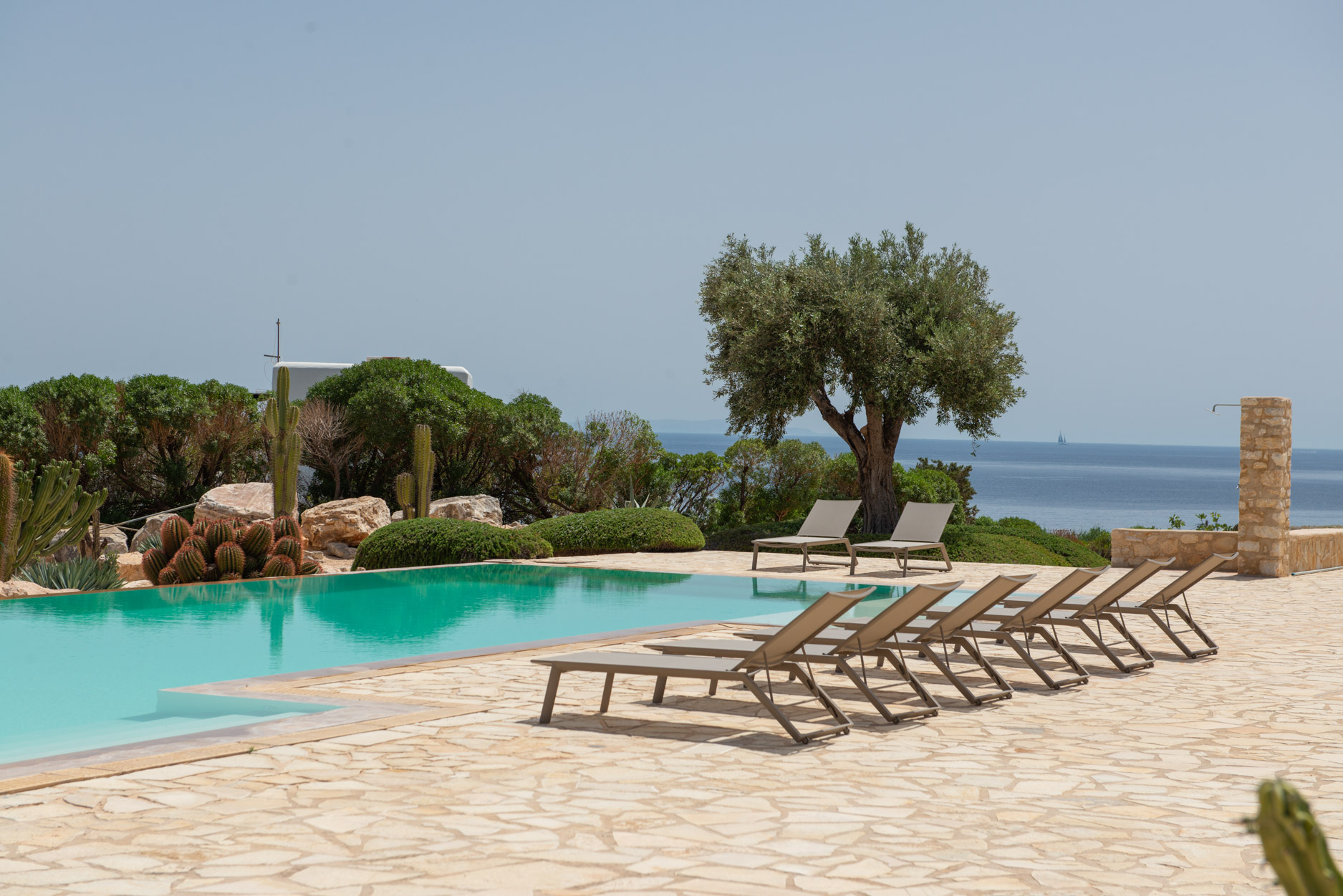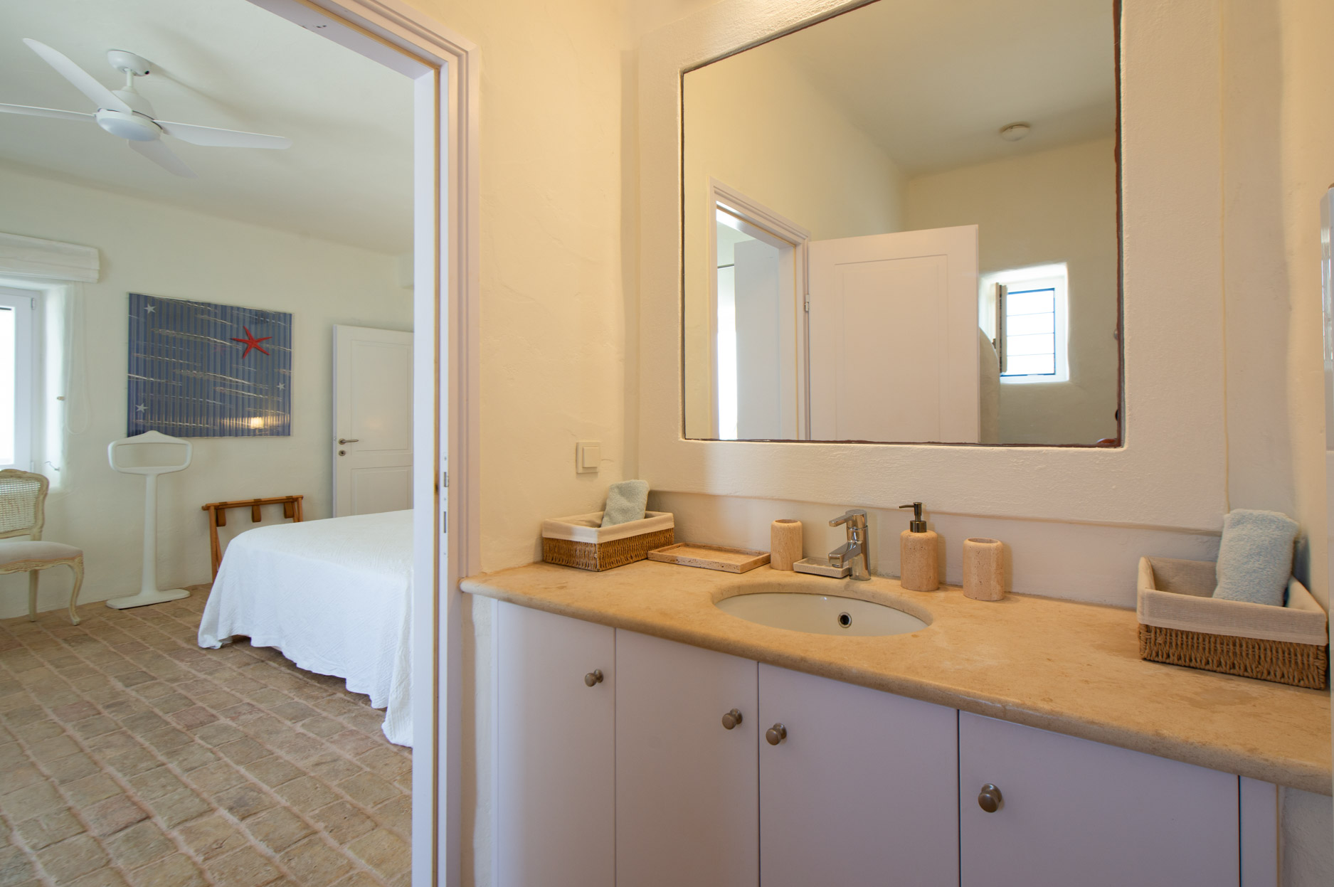 One master bedroom with a king-size double bed, A/C, en-suite bathroom, access to two private terraces, sea view.