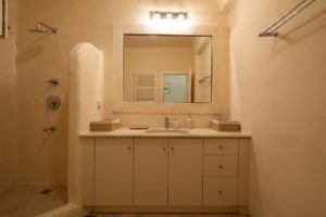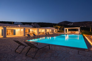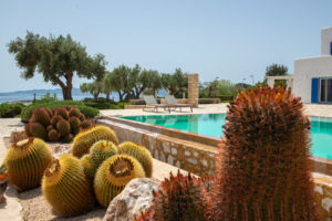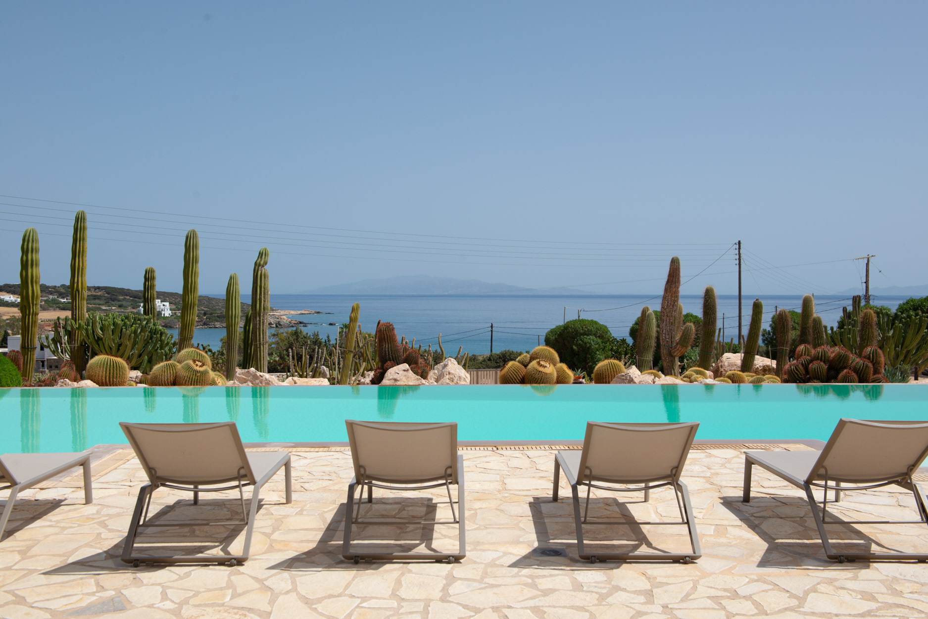 Two twin bedrooms with two single joinable beds in each, en-suite bathrooms, both with access to the pool terrace, garden view.