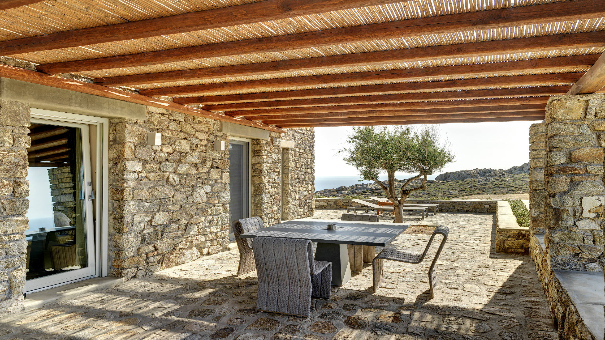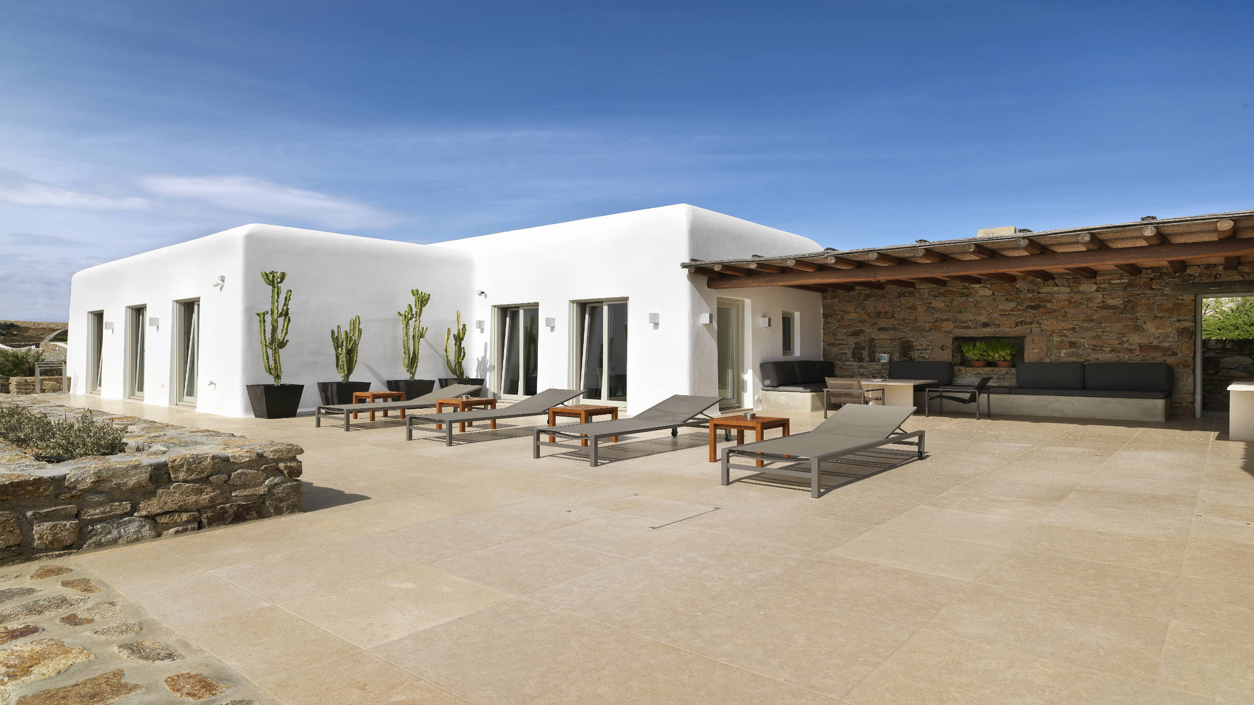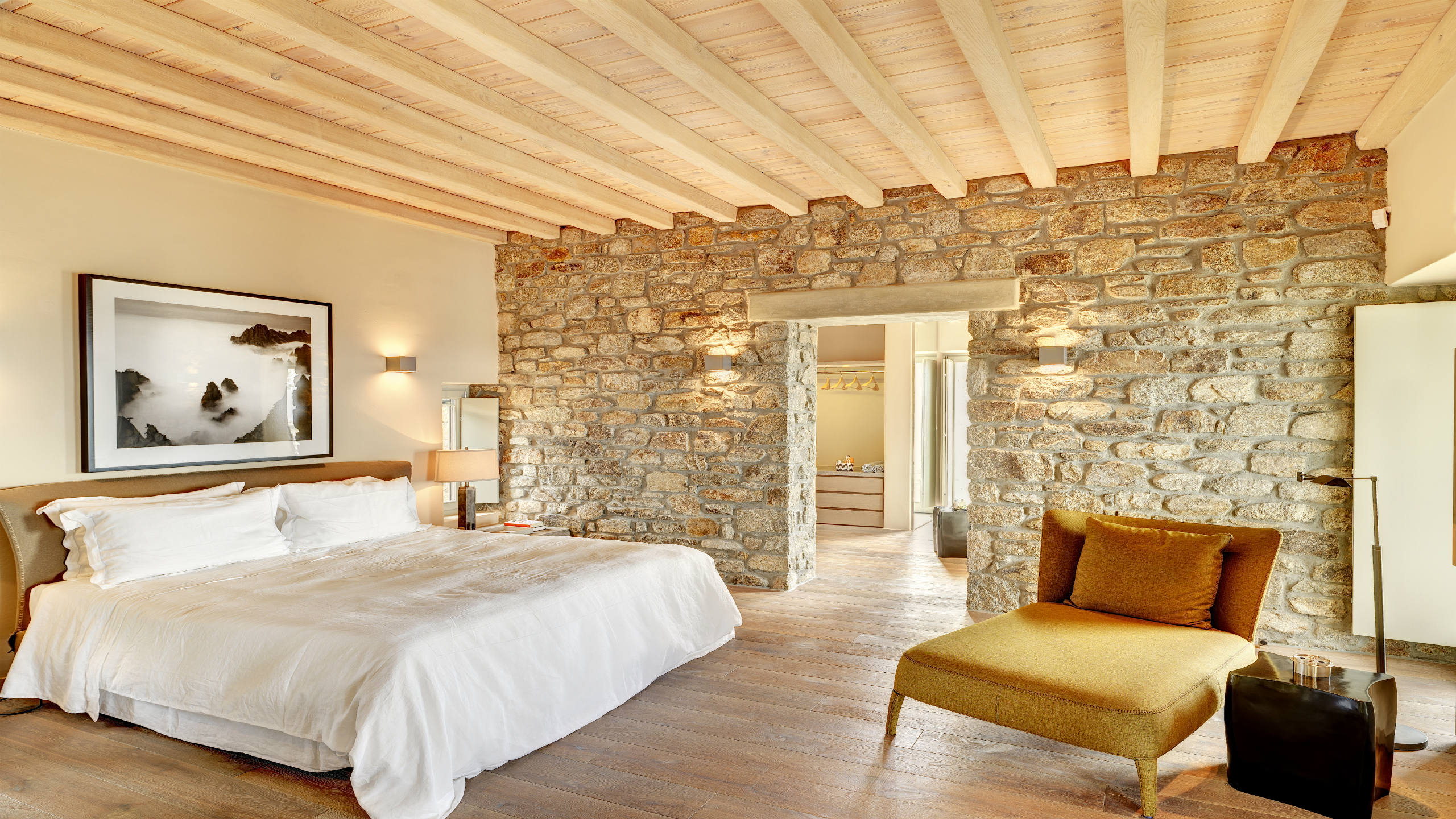 Double bedroom with en-suite bathroom, walk-in closet, independent terrace for sunbathing and outdoor dining area.