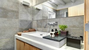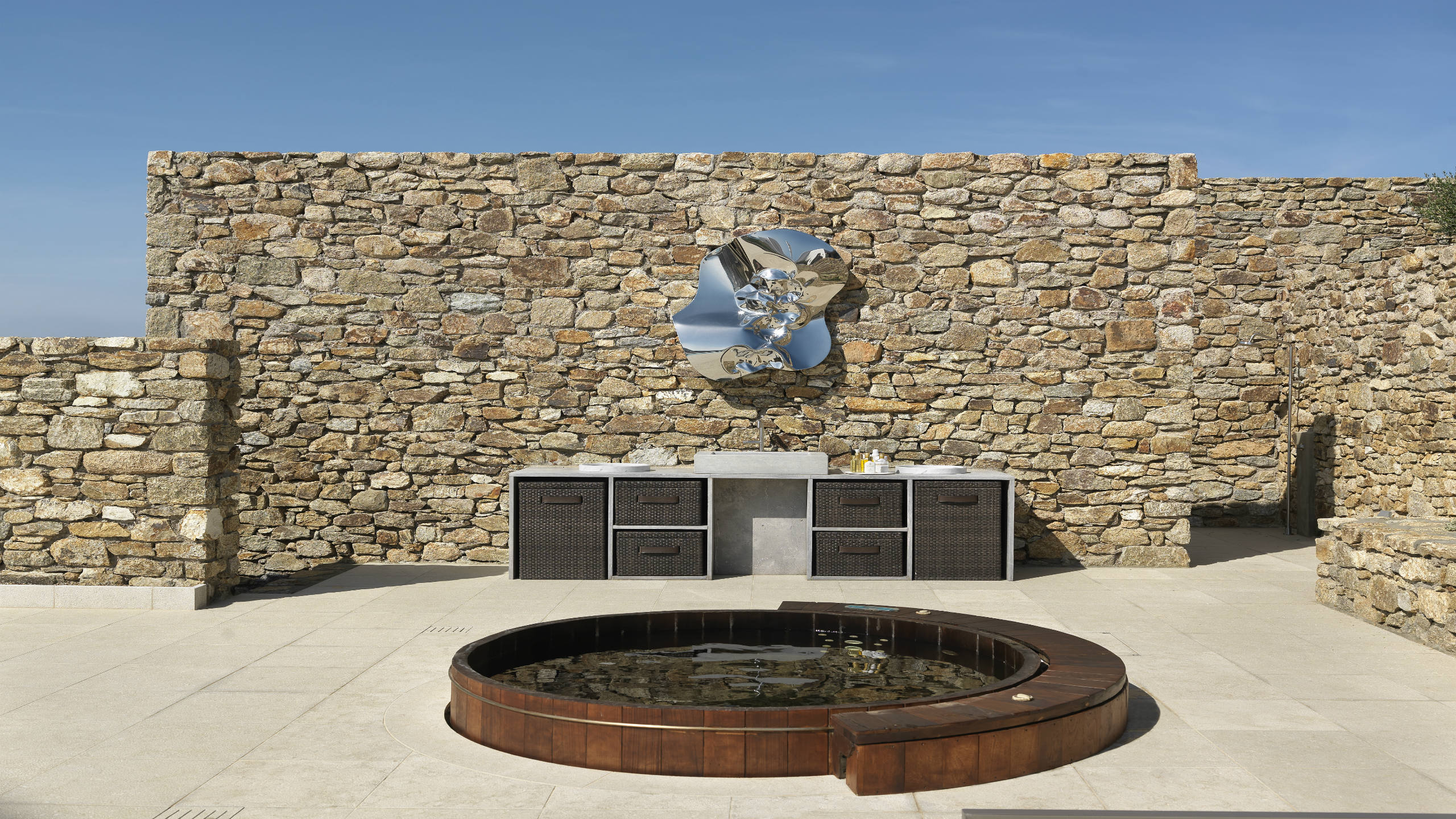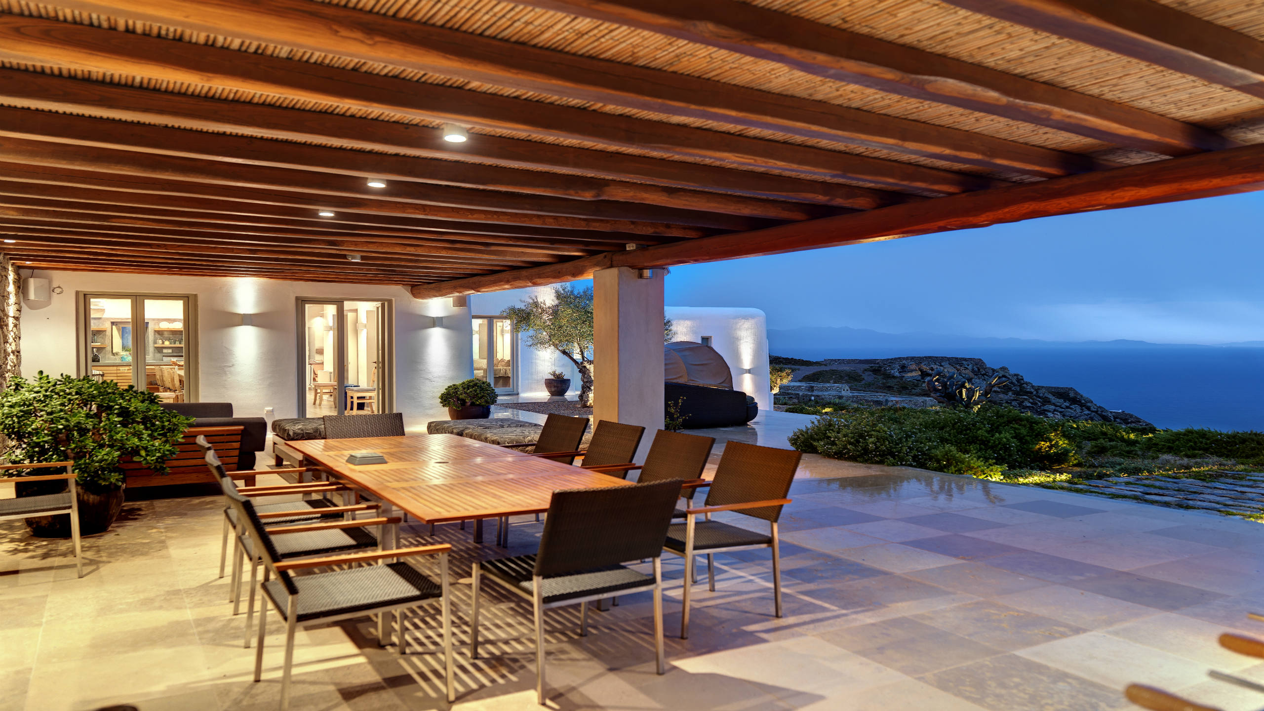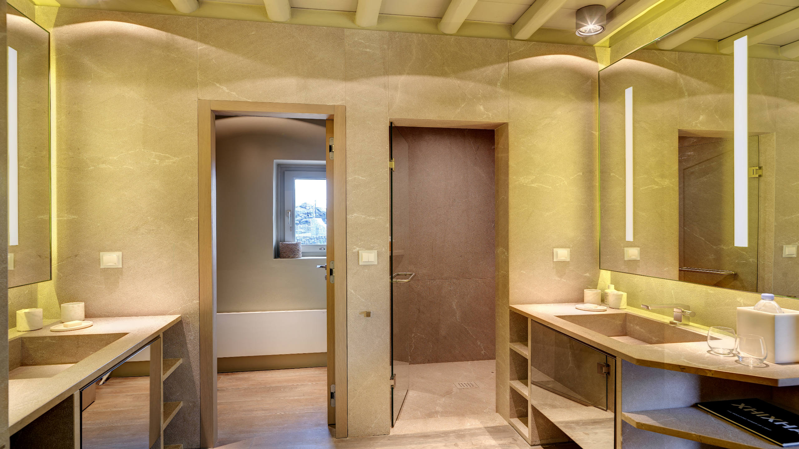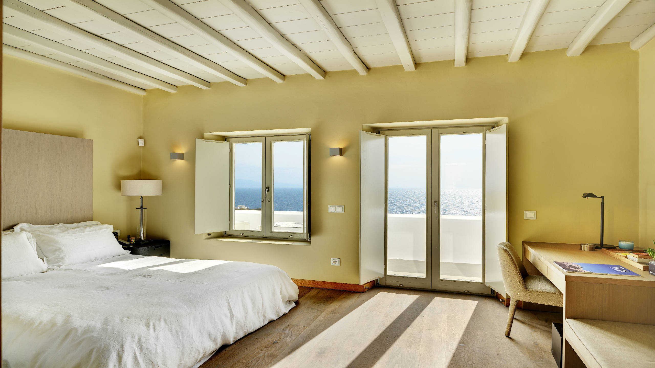 Double bedroom with en-suite bathroom, walk-in closet, independent terrace for sunbathing and outdoor dining area.