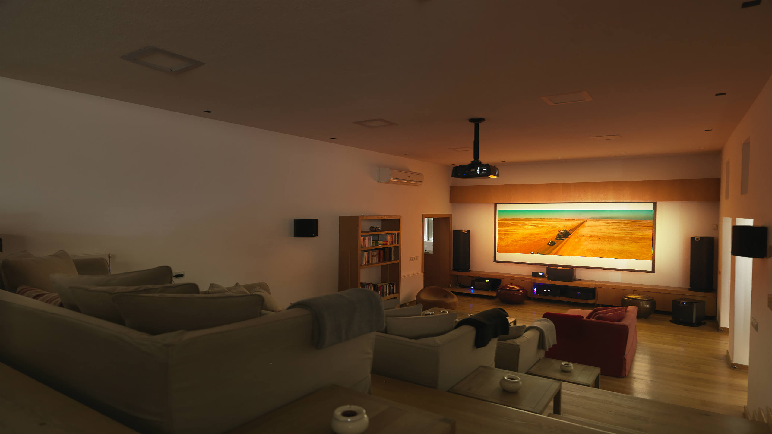 Fully equipped KitchenHome cinema with 4-meter widescreen.