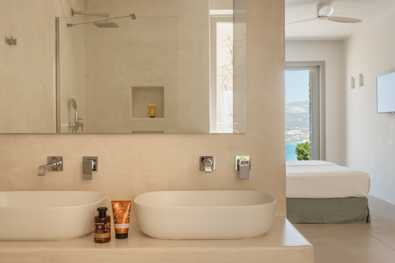 The outdoor spaces are equally impressive, with ample terraces and lounging areas to enjoy the spectacular vistas of Paros and the surrounding waters. Whether you’re entertaining guests, unwinding in solitude, or soaking in the views, this villa provides an unparalleled living experience in one of the most sought-after locations in the Aegean.