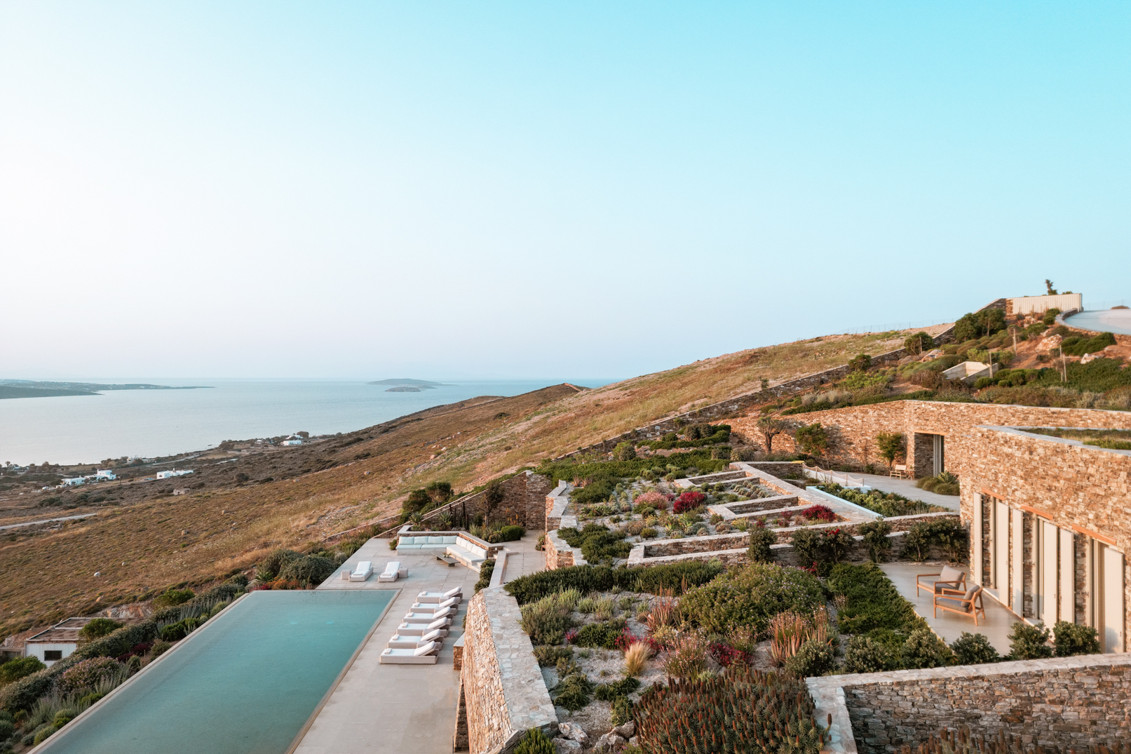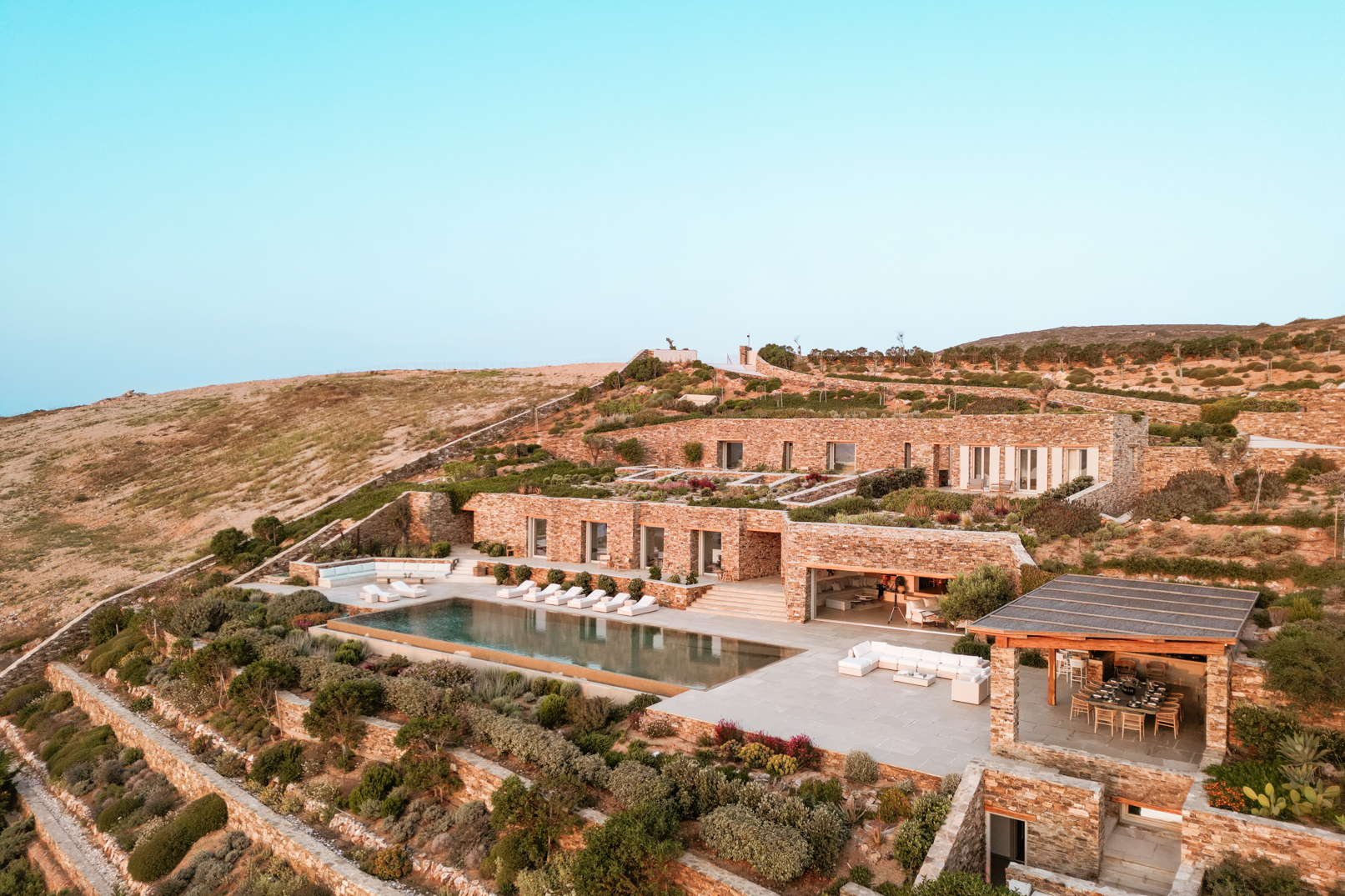 This luxury subterranean stone villa in Antiparos is an architectural marvel, nestled in an elevated position that offers breathtaking panoramic views of the island of Paros. Recently built with meticulous attention to detail, the villa combines modern comforts with the island’s natural beauty, seamlessly blending into the landscape.