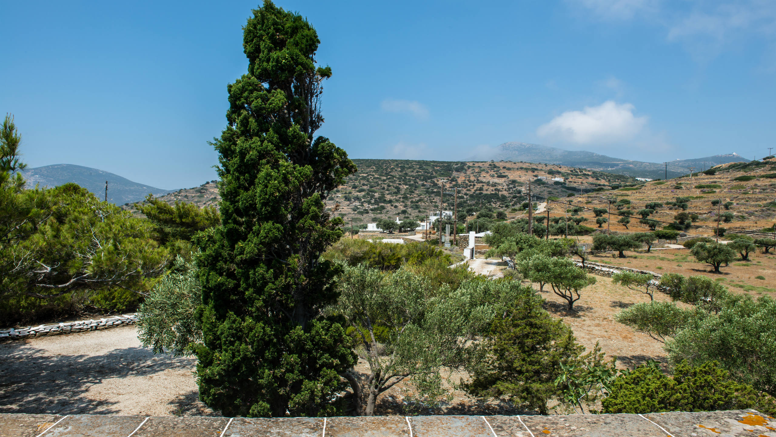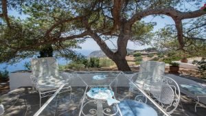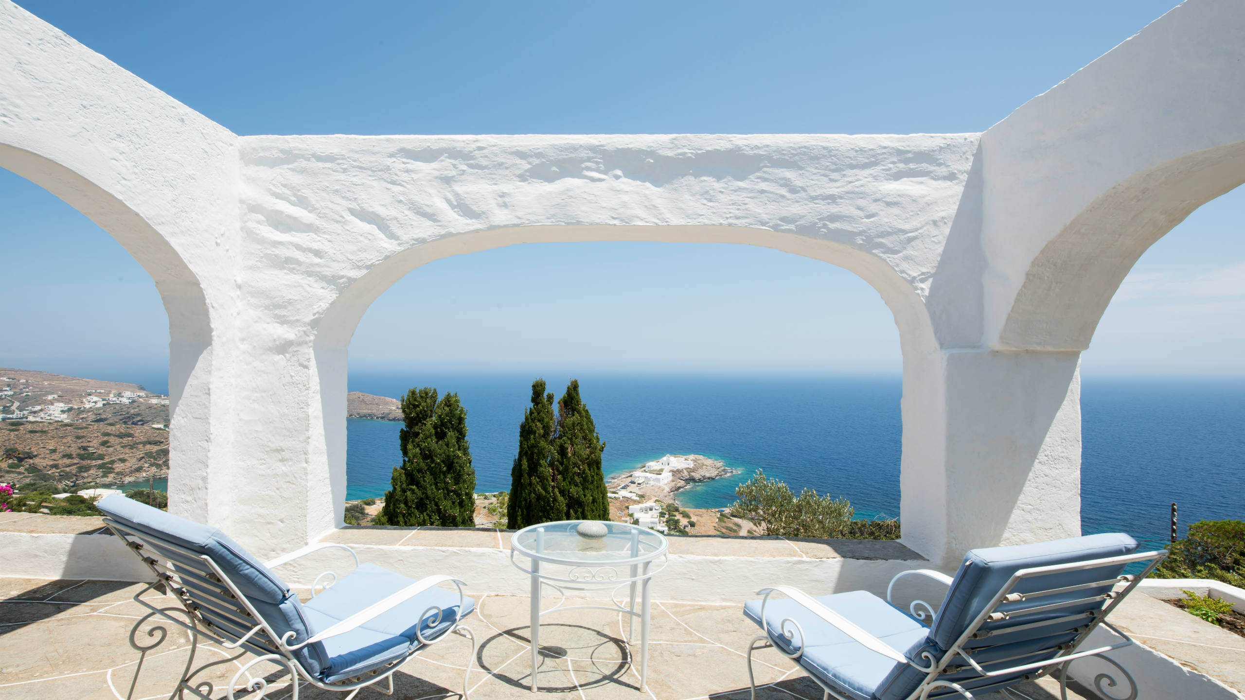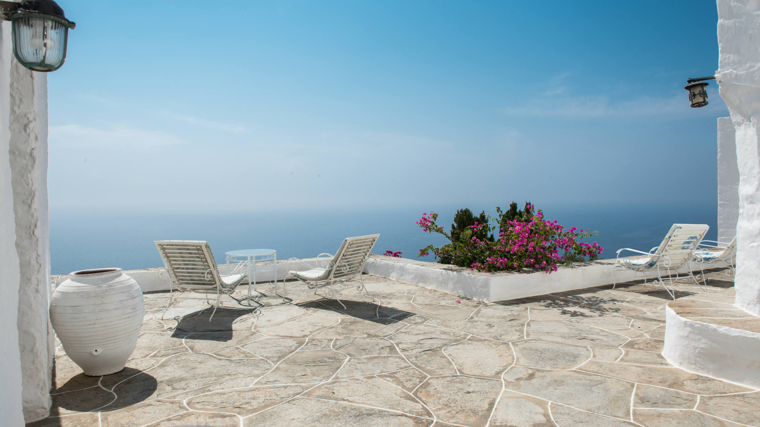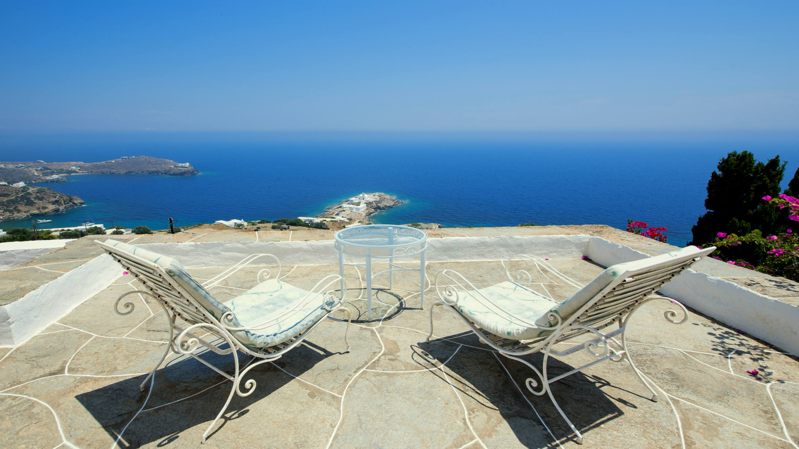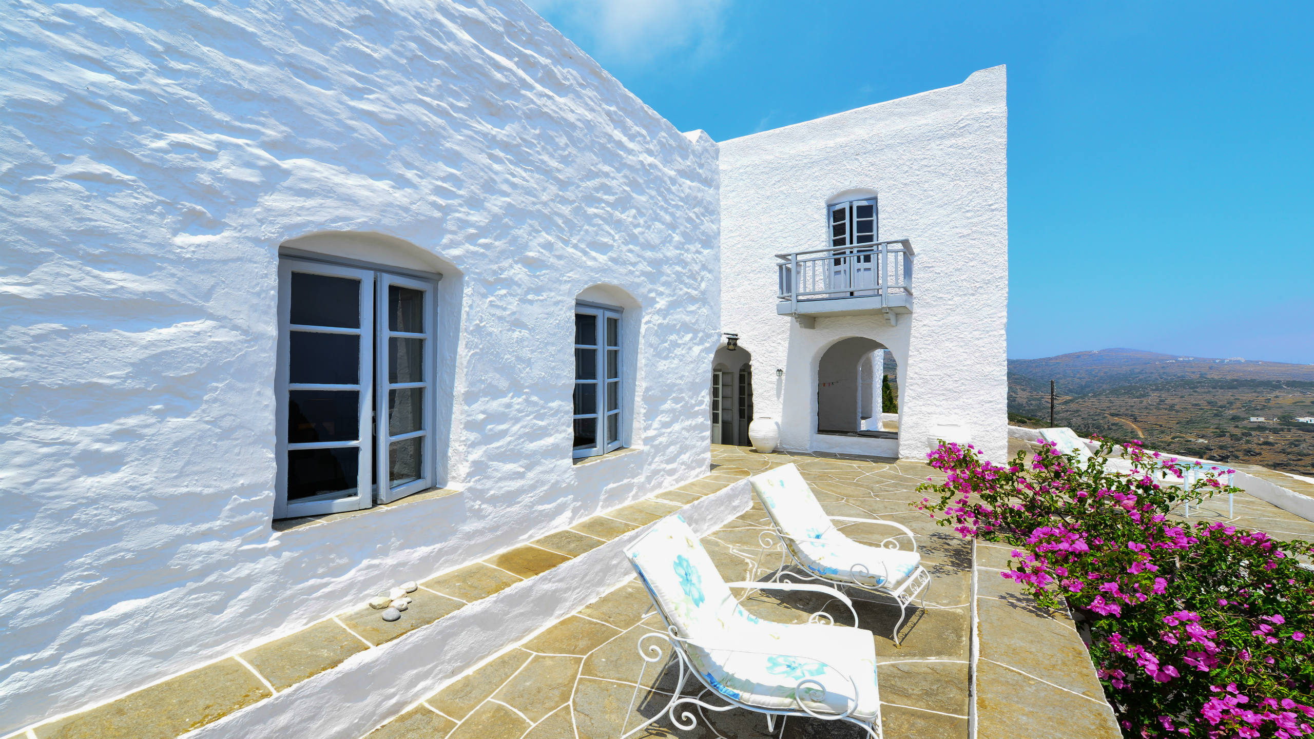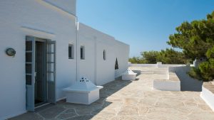 Two twin bedrooms with a shared bathroom, terrace