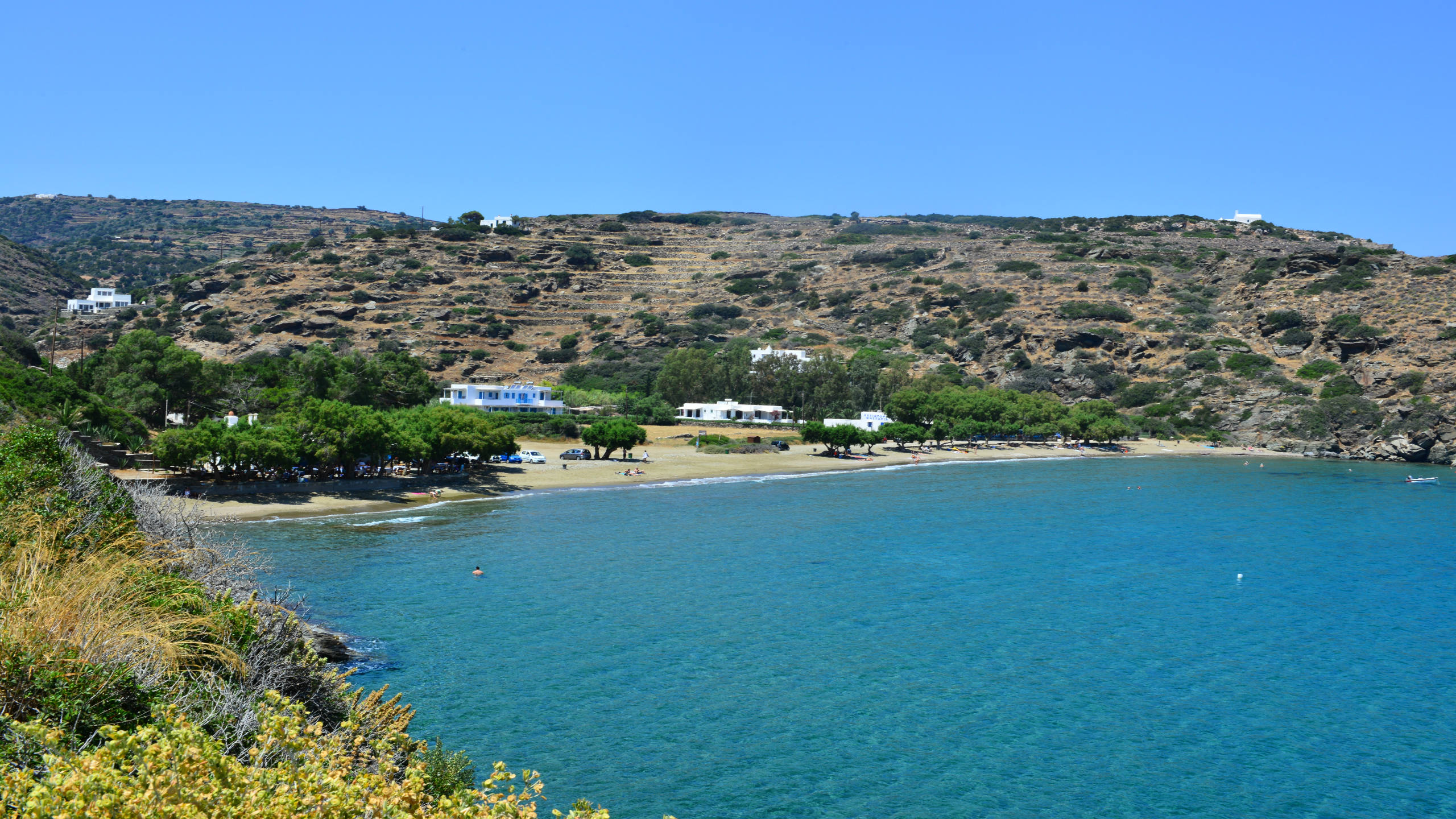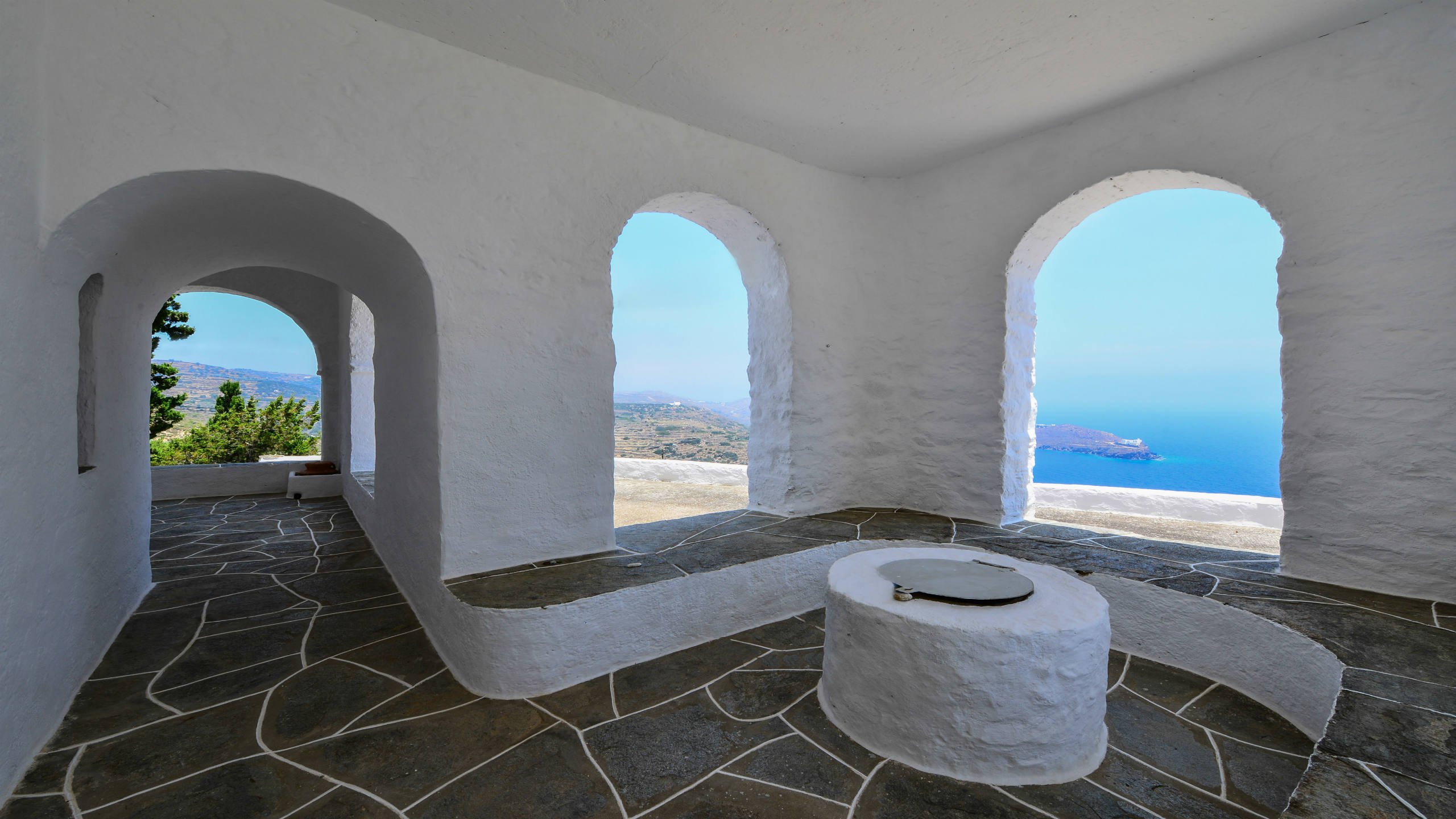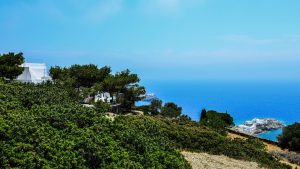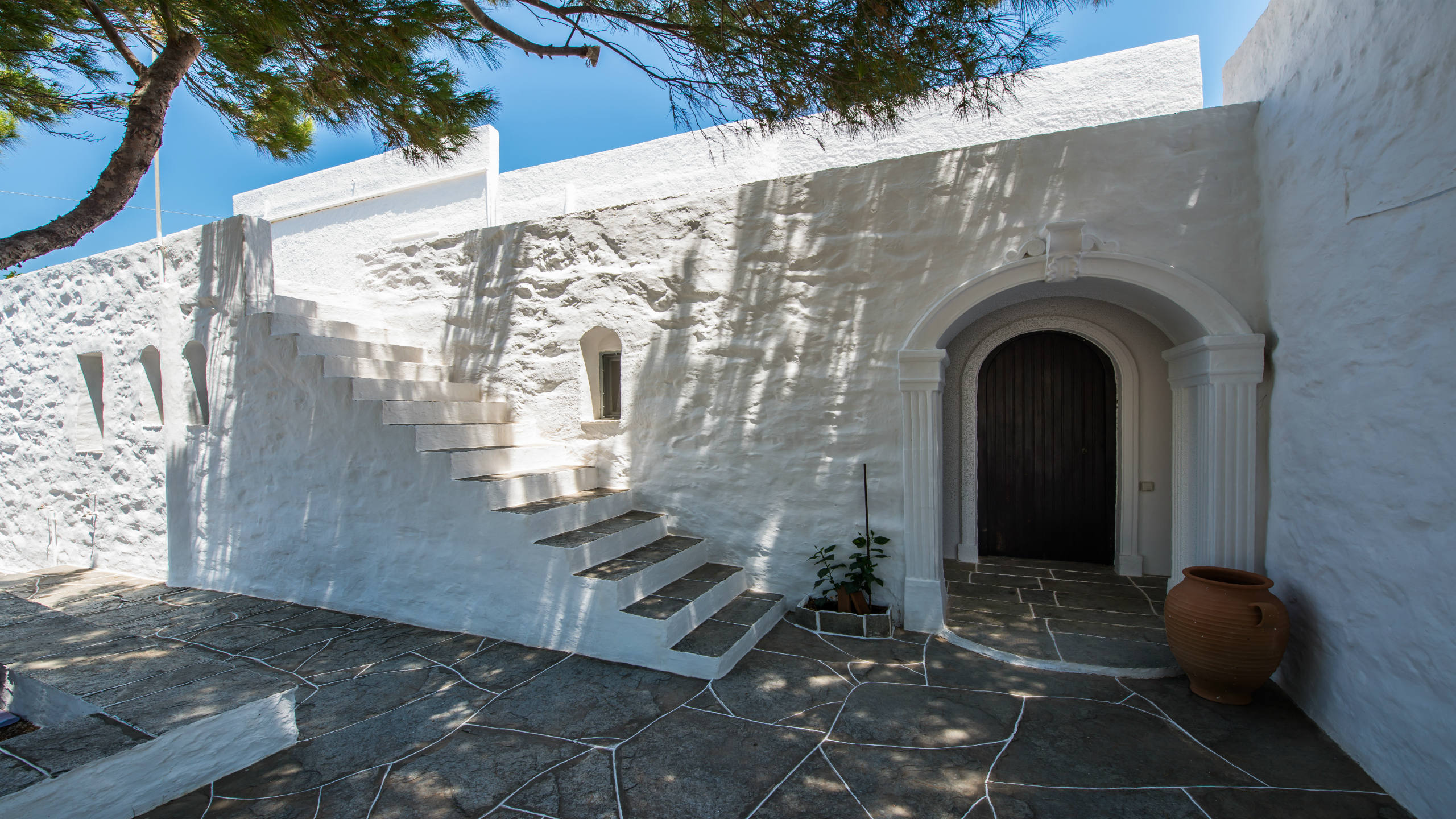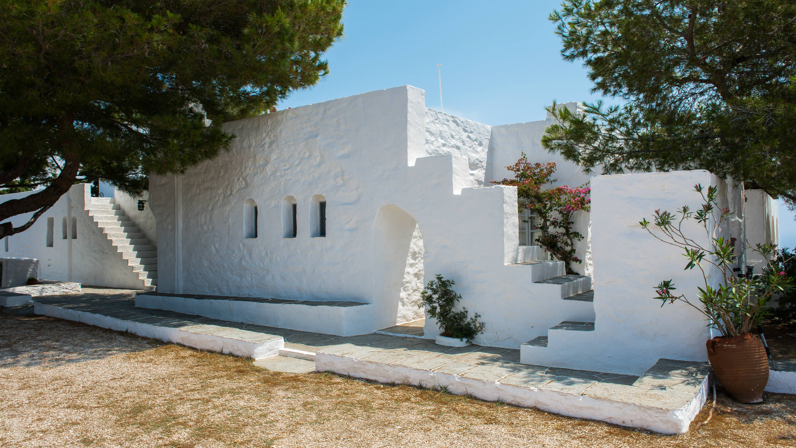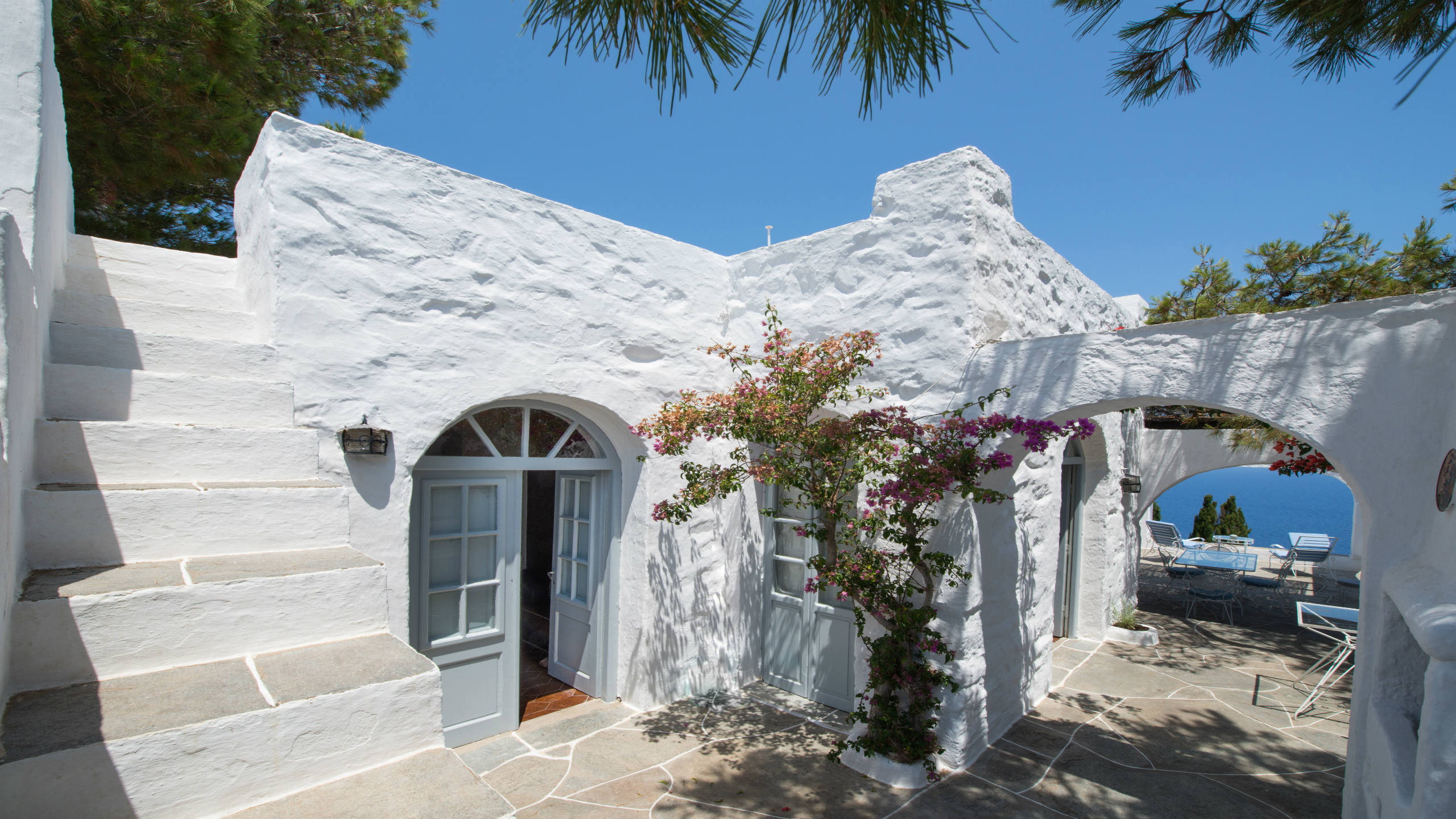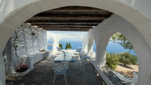 Two twin bedrooms with a shared bathroom, terrace