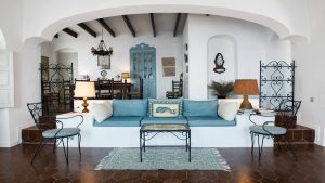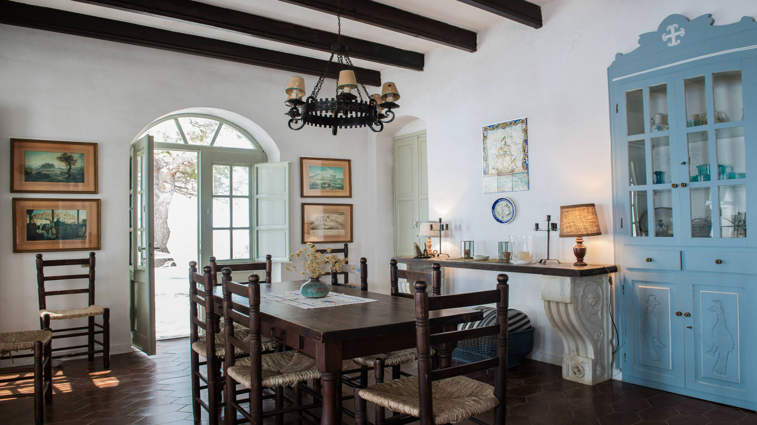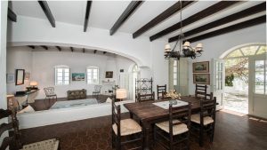Elevated dining room and behind it is the traditional kitchen.