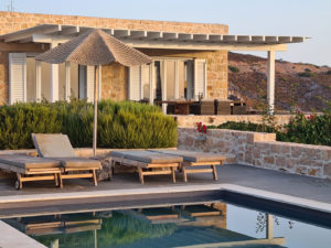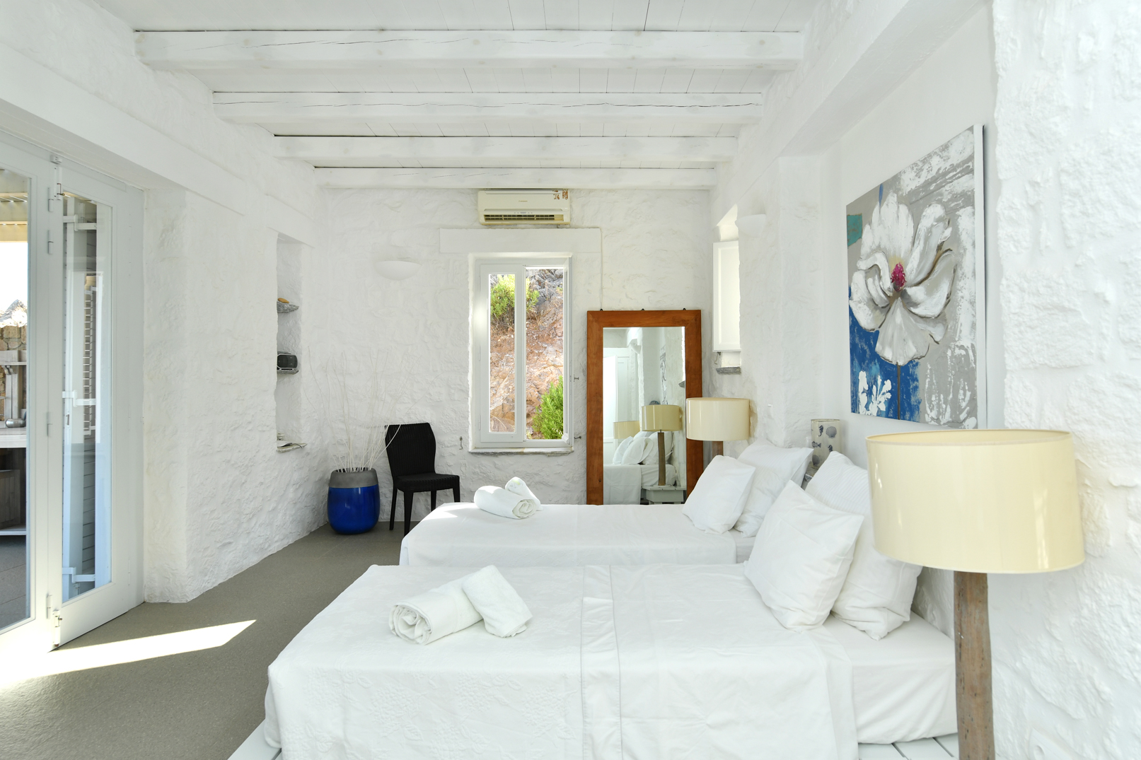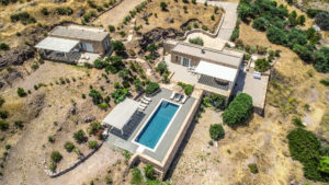 Villa Jolie is set upon an expansive 9000 sqm plot, designed by a renowned Greek architect, seamlessly blending with the island’s natural stone with modern elegance. The villa features a private swimming pool, scenic outdoor areas and breathtaking views.