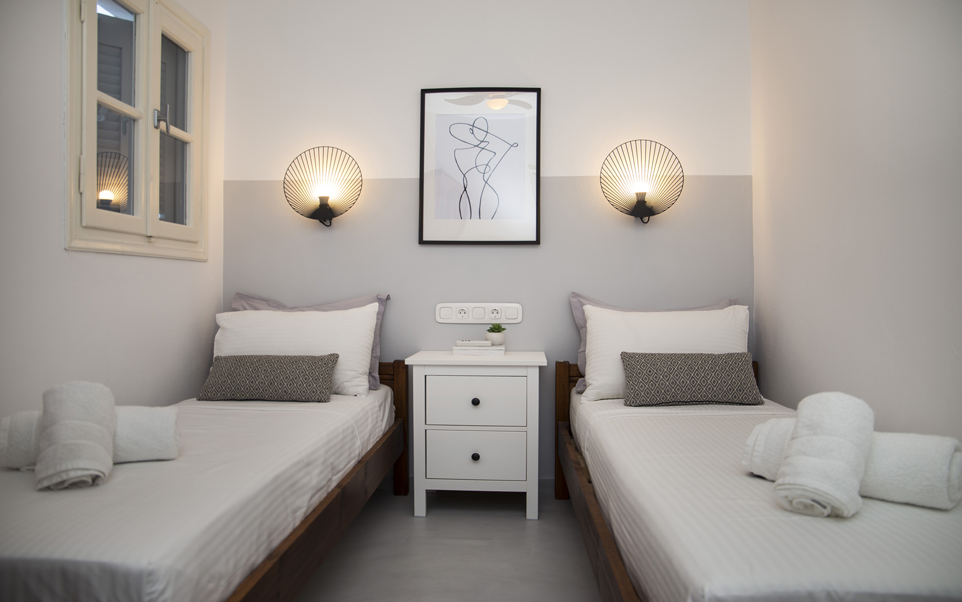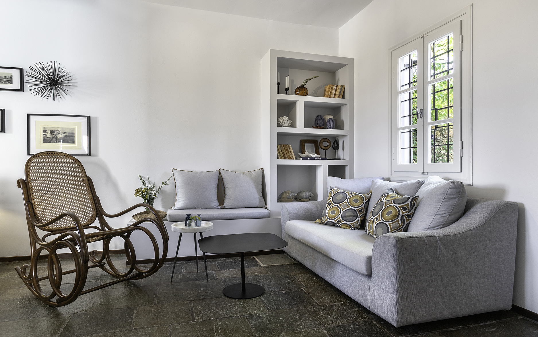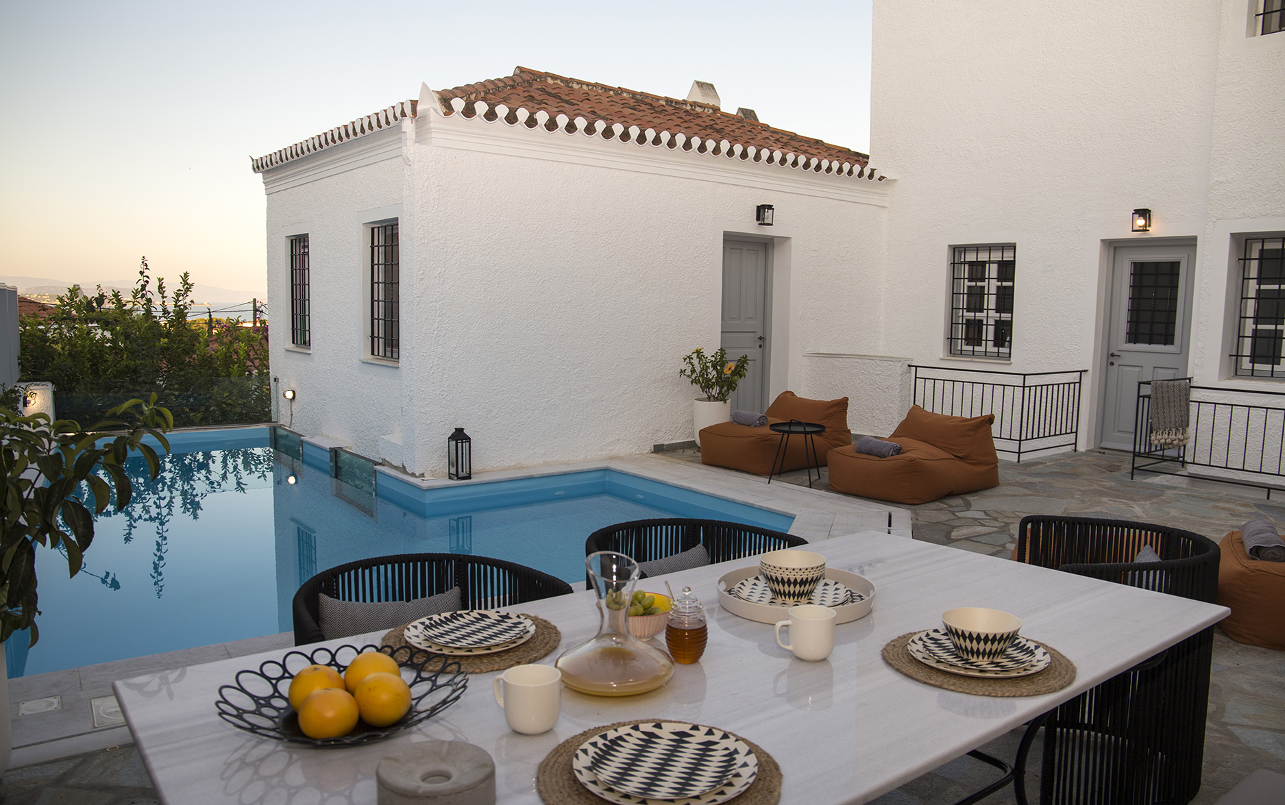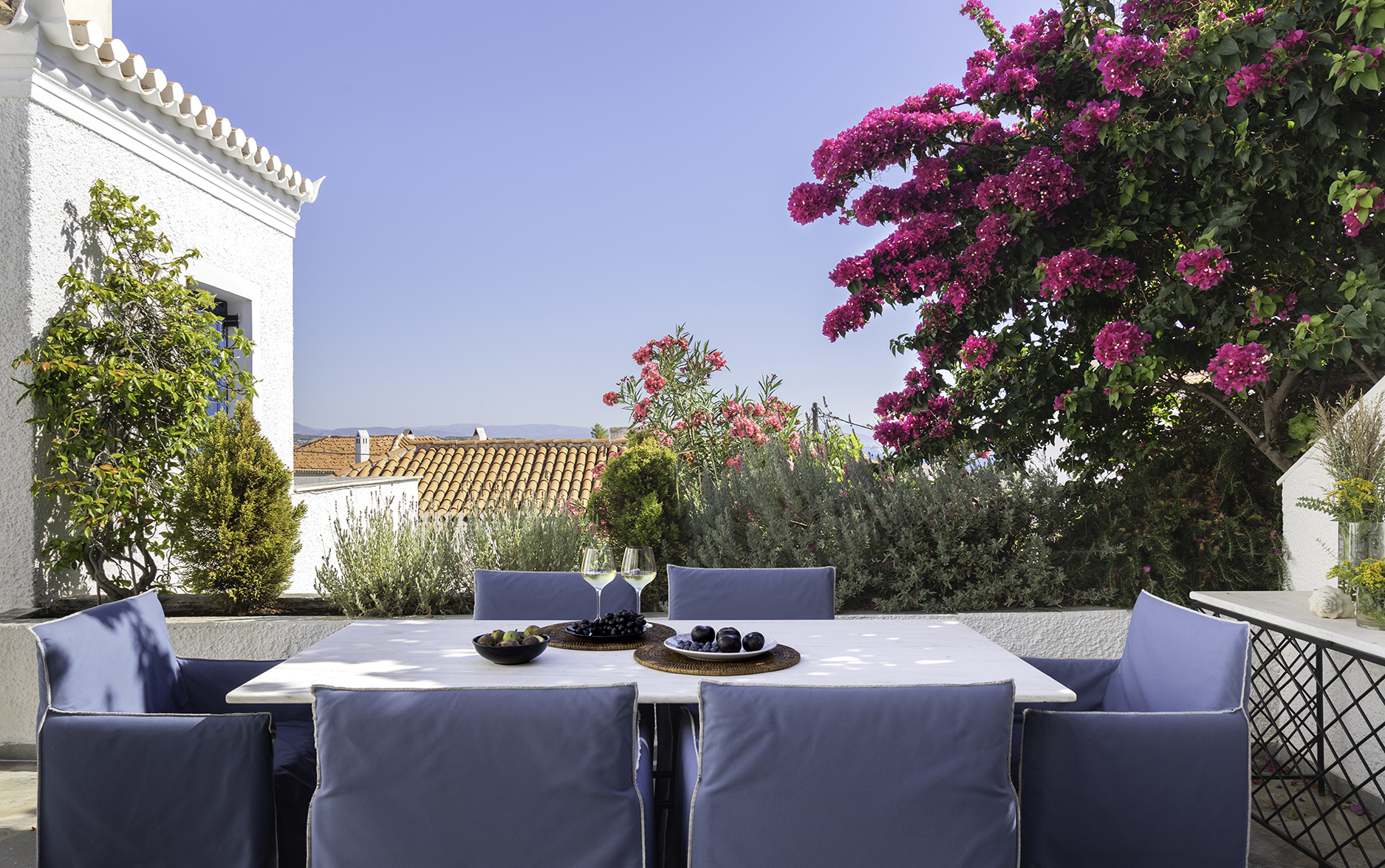 The beautiful Villa Kiera is located just seven minutes walking distance from the island’s center Dapia. The Villa was completely renovated in 2019, keeping its traditional architecture. All six en suite bedrooms are appointed with Cocomat mattresses and Pillows as well as amenities. The kitchen is fully equipped with Franke appliances.