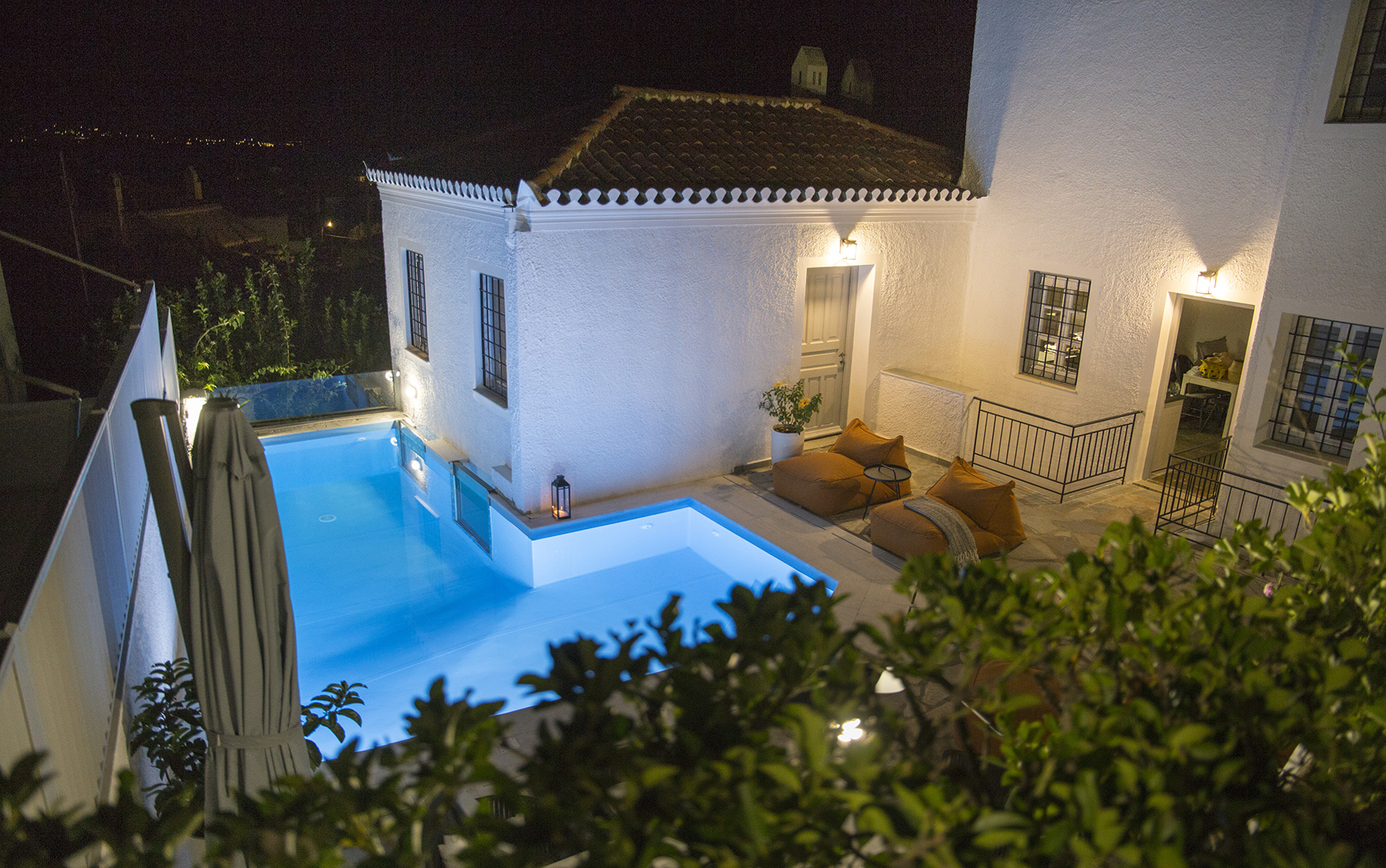 In the exterior premises you will find a 30 m² swimming pool with dining that can accommodate up to 12 guests in two dining areas. Planted greens with vibrant colors create beautiful ambient atmosphere while spending time outdoors.