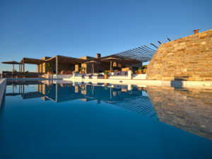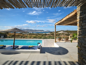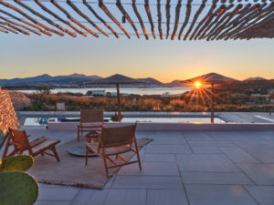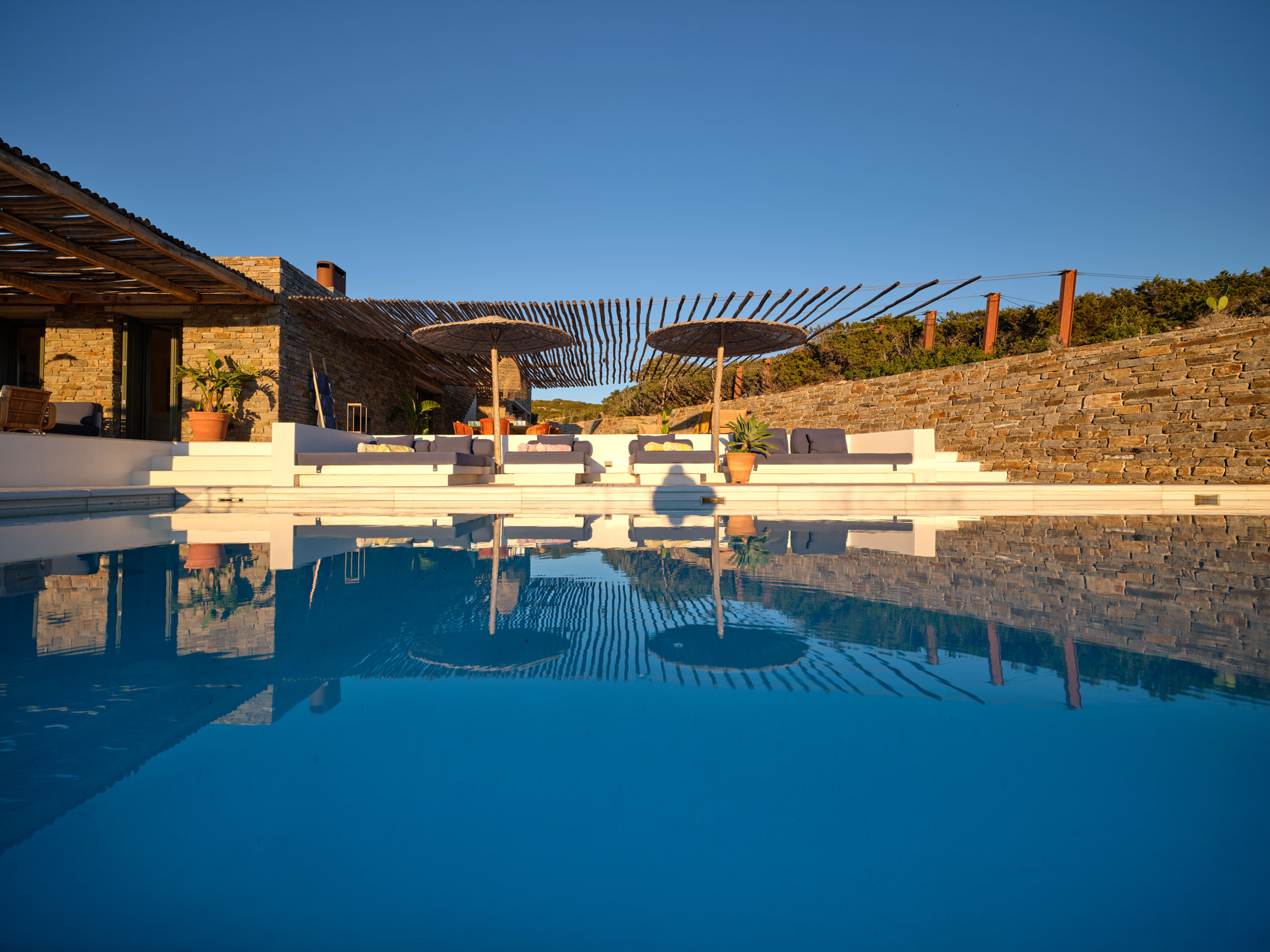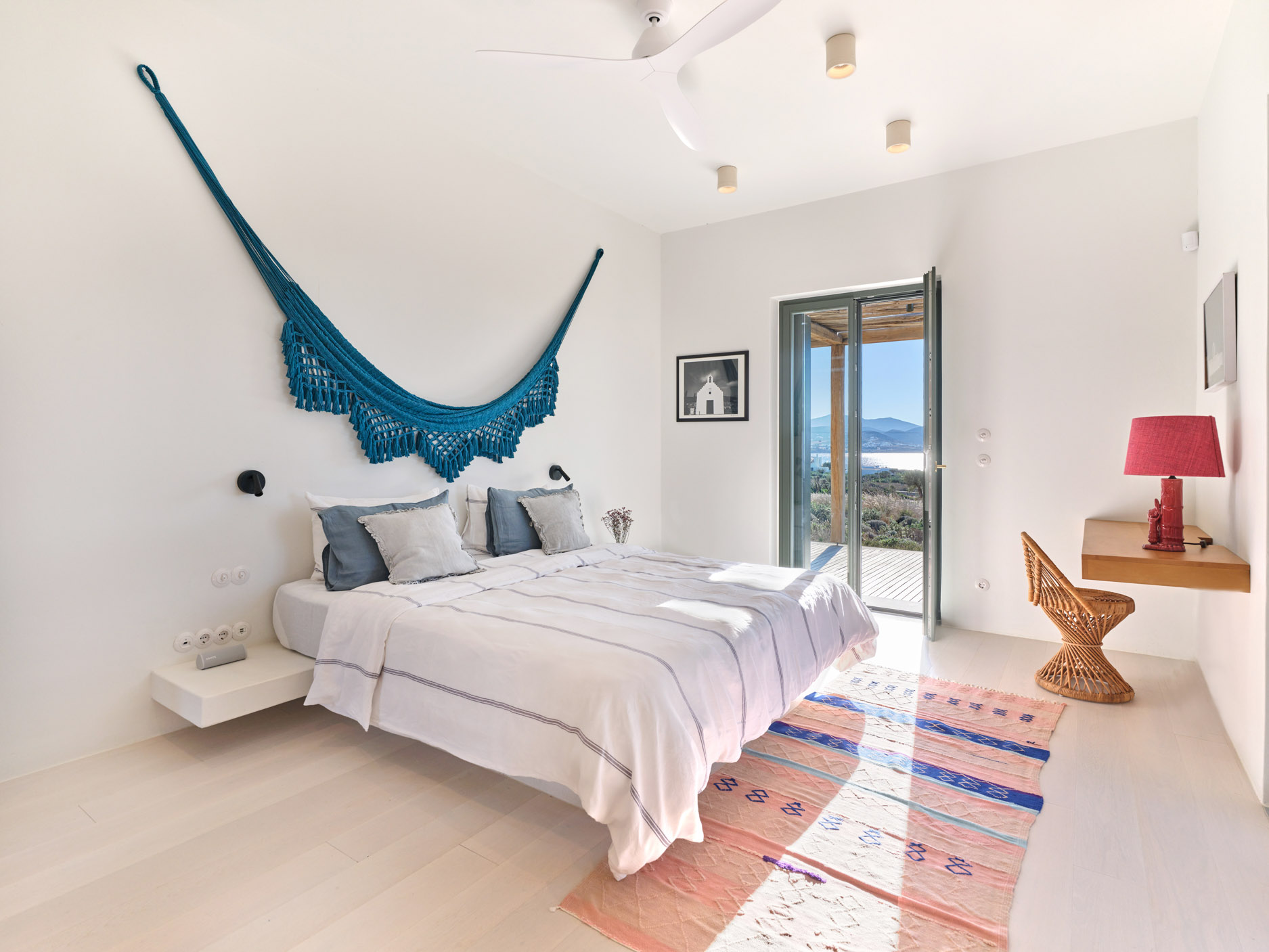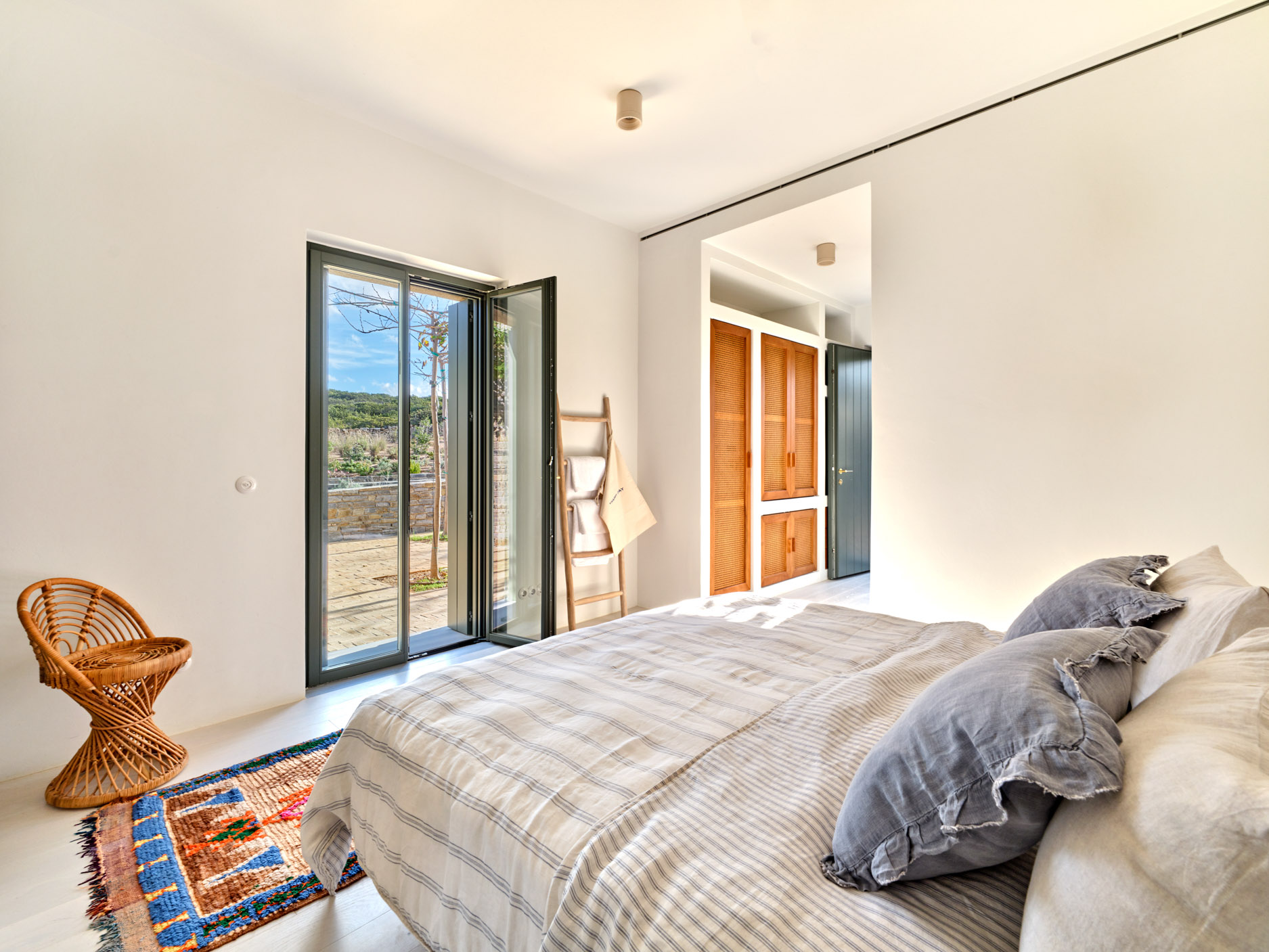 One double bedroom with a double bed, en-suite shower room, outdoor terrace and partial sea view.