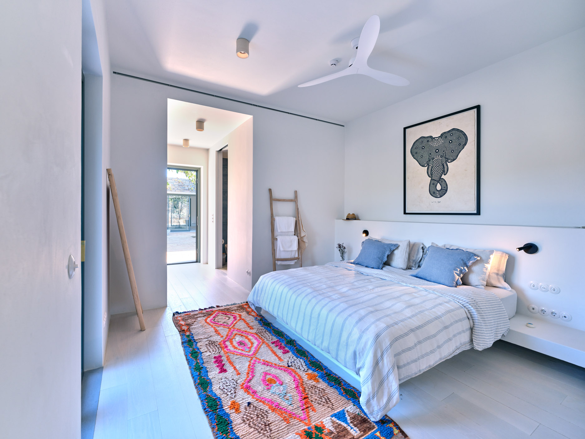 One independent double bedroom, with a double bed, en-suite bathroom, terrace and partial sea view