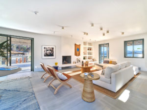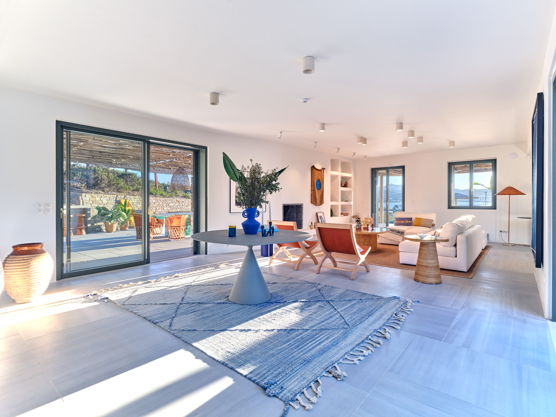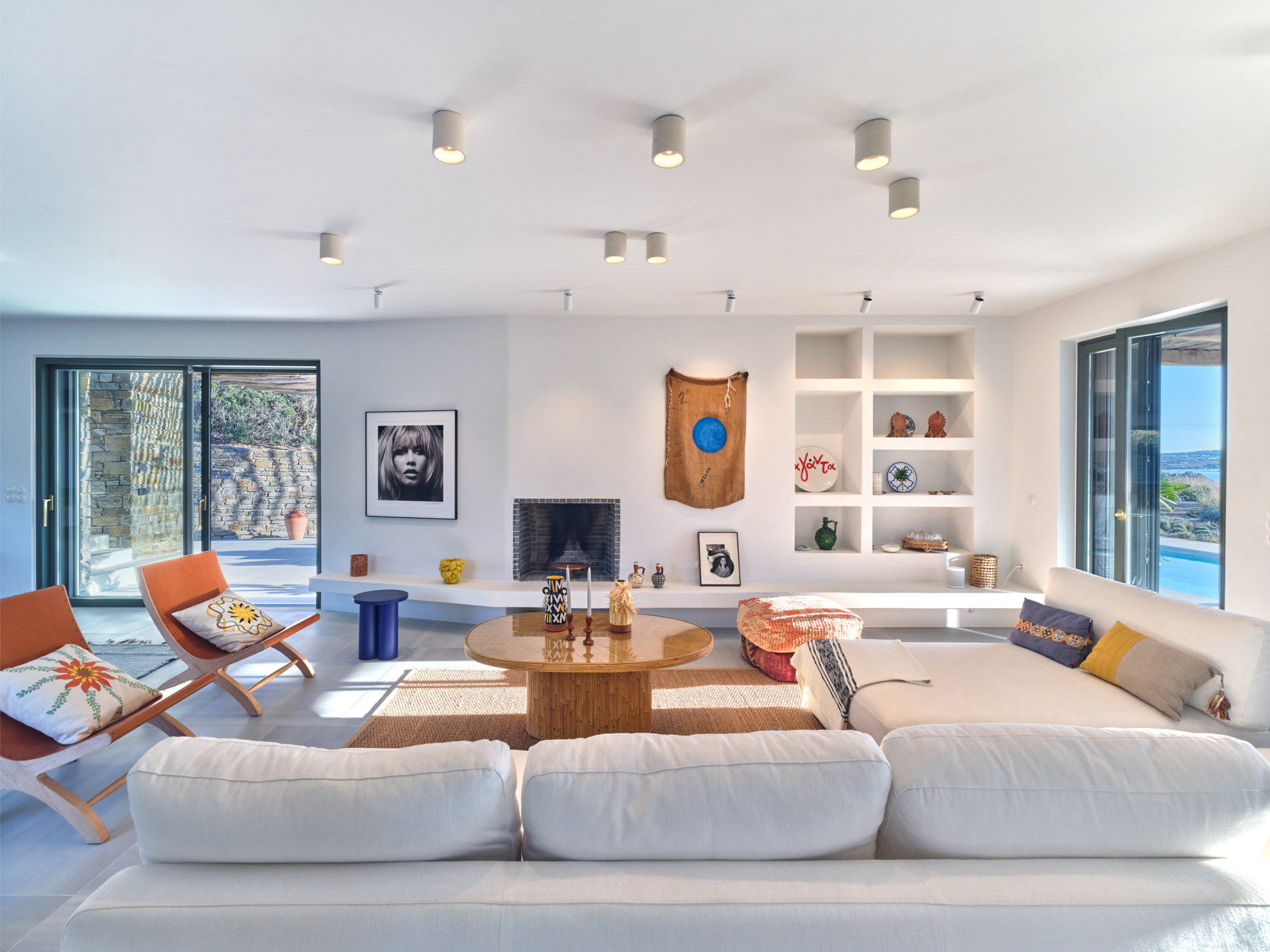 Large living area, including sitting area, fireplace, dining area for 10pp
