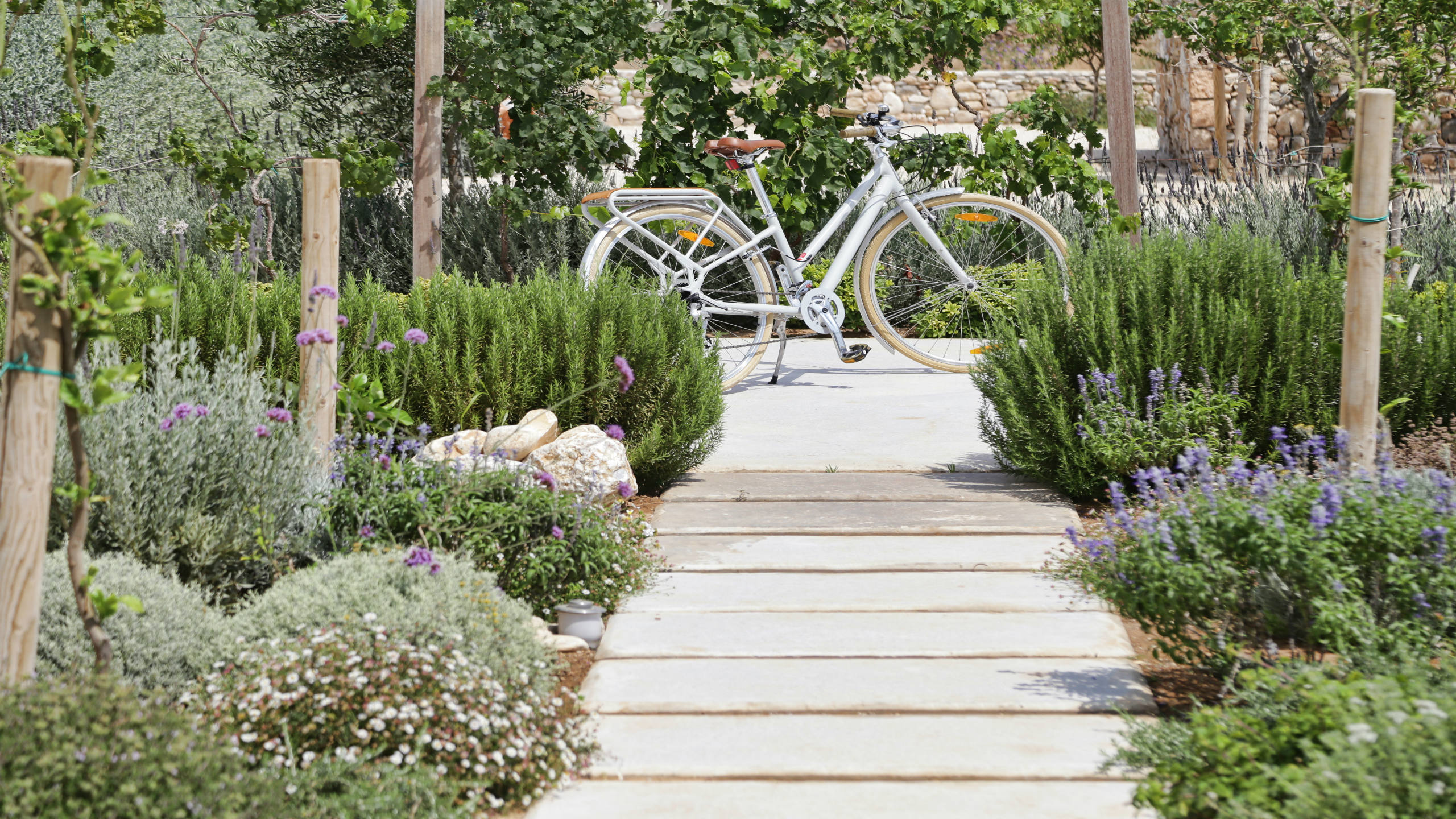 Mediterranean garden with herbal bushes