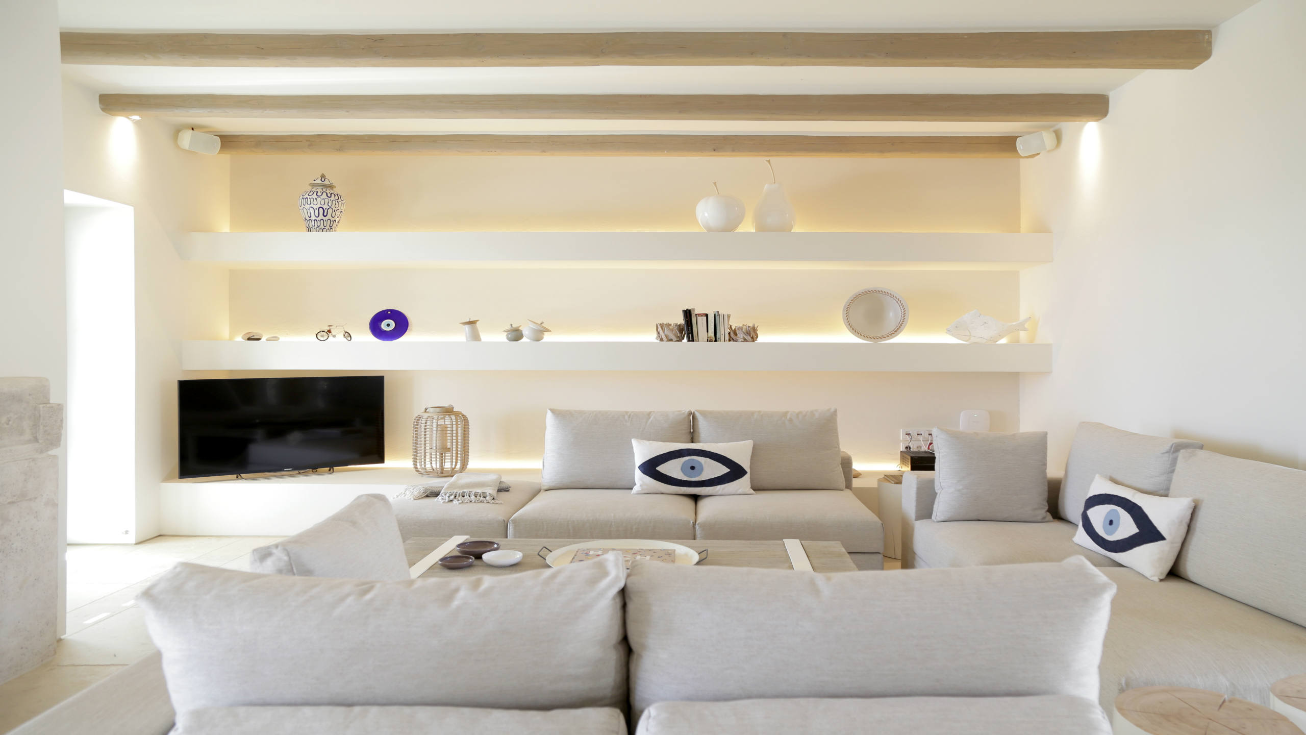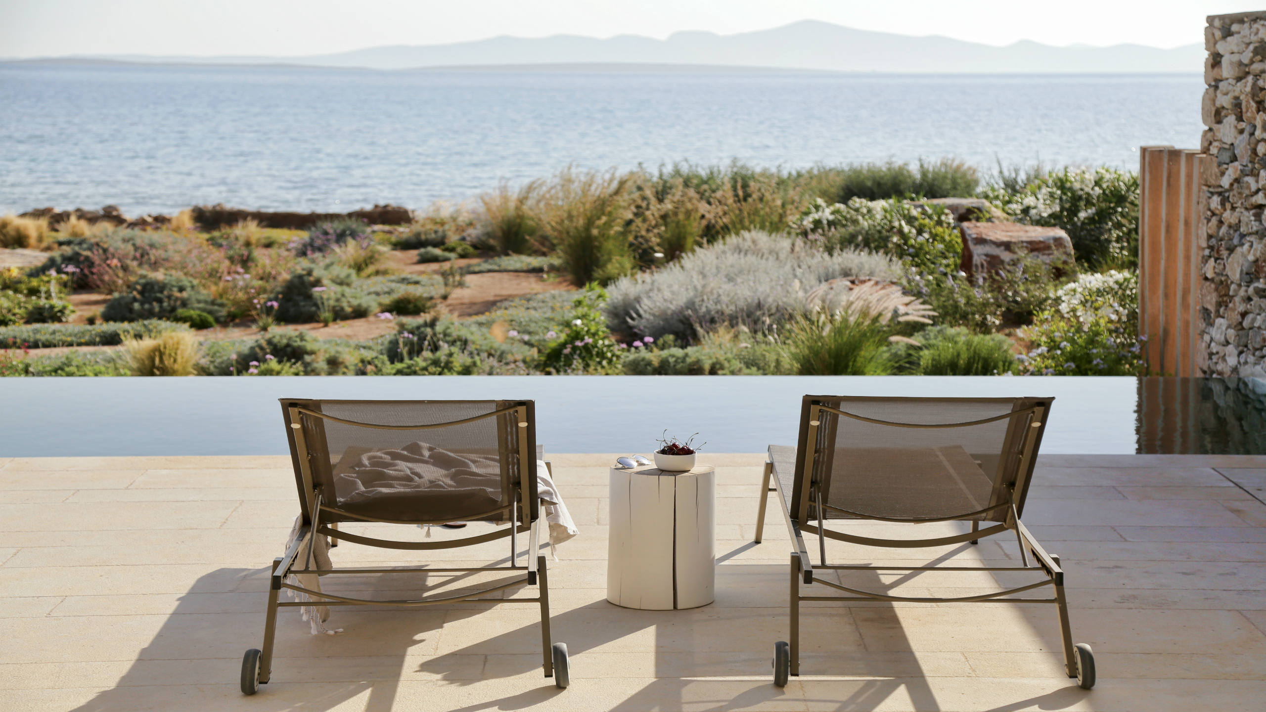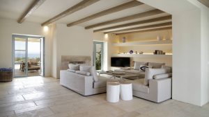 The privileged beachfront location revitalises whilst offering every comfort. The beautiful gardens lead down to secluded pebble beach allowing total freedom to move from pool to the crystal blue waters of the Aegean. Villa’s 4 bedrooms are on 3 floors with stunning interiors.