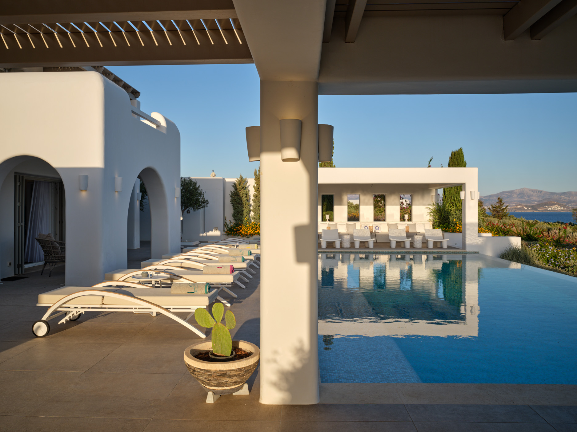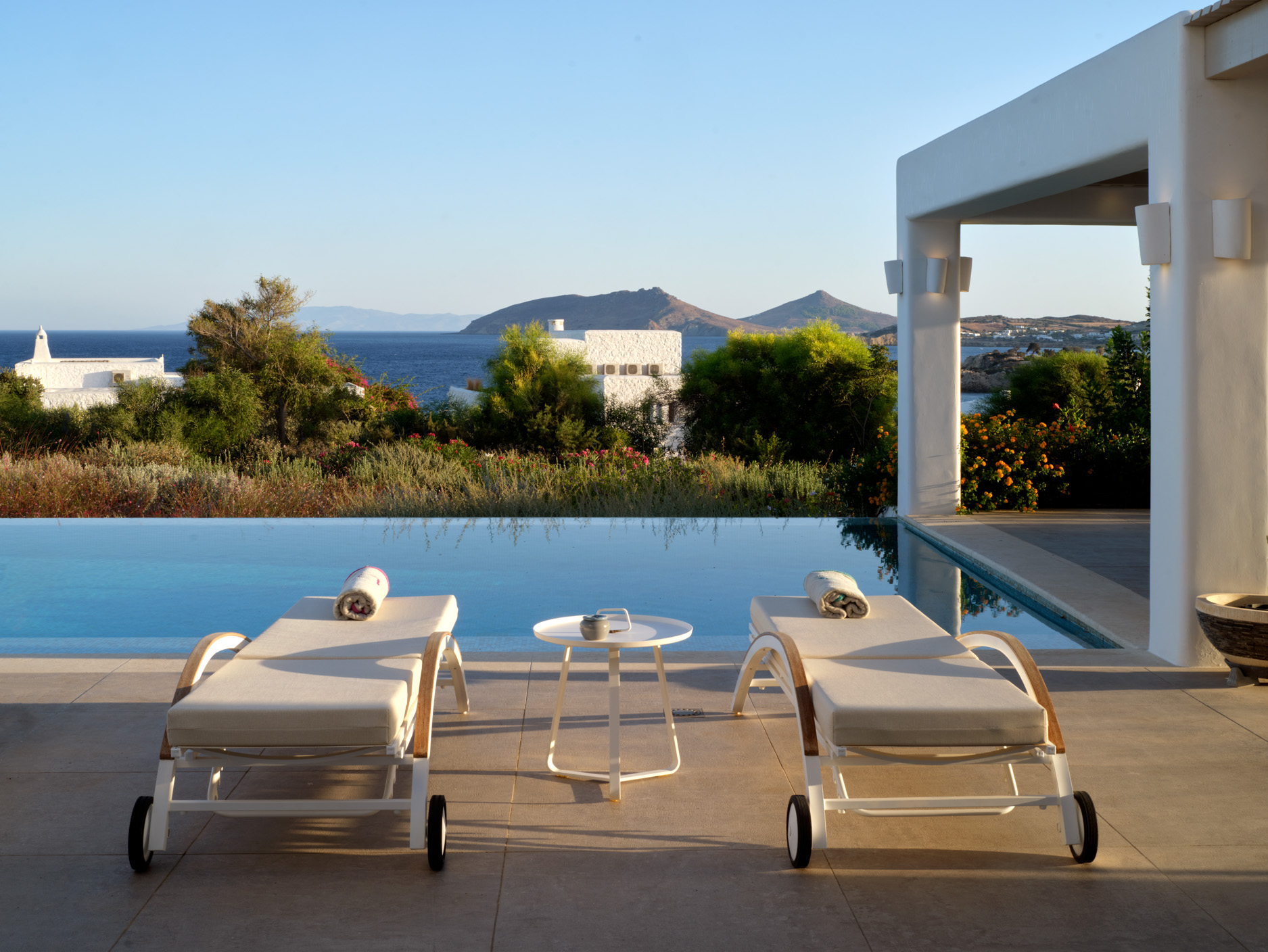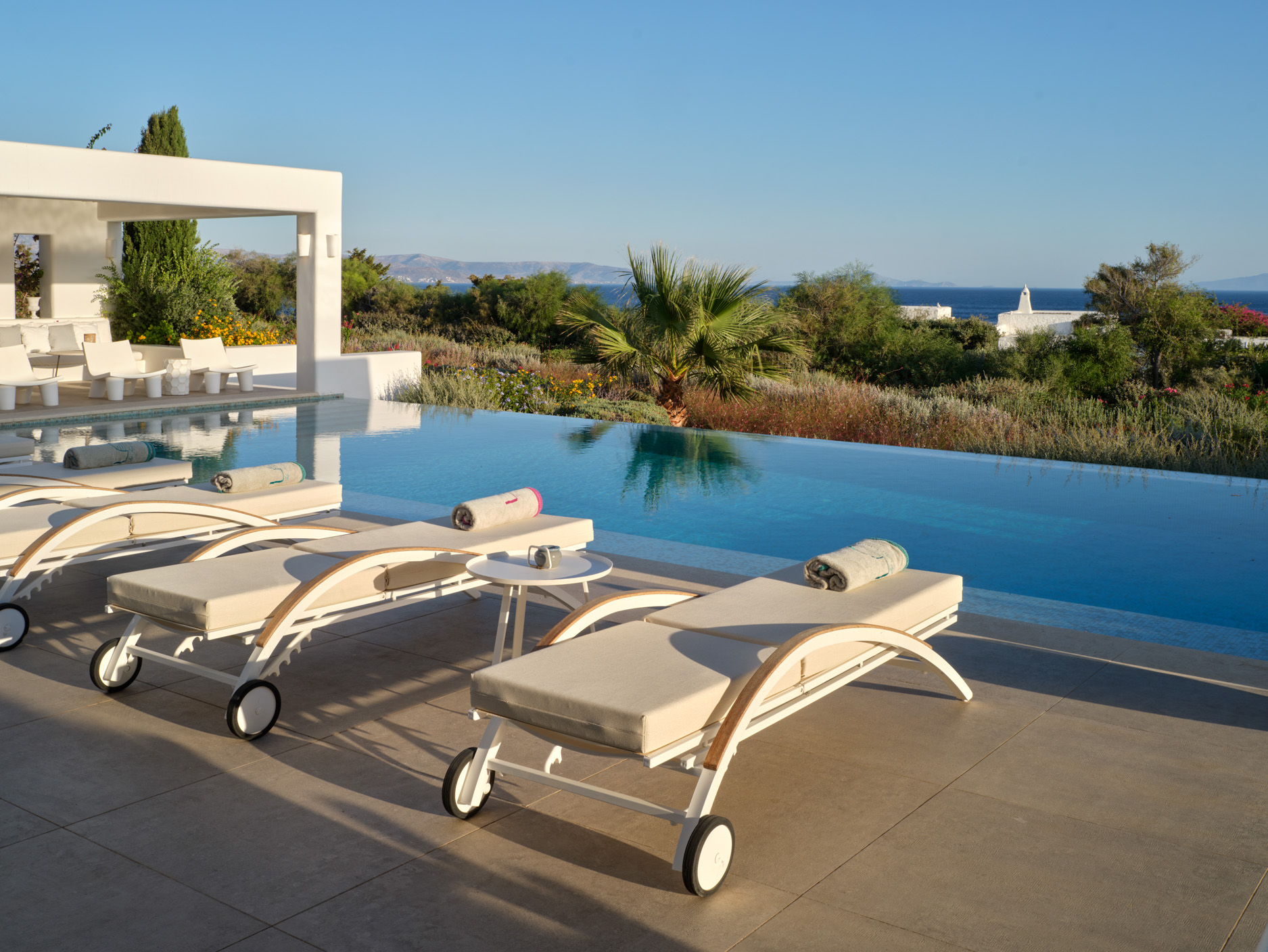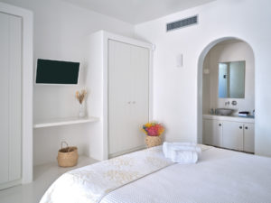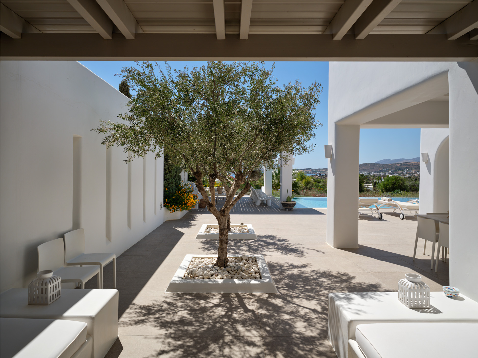 This brand new luxury 8-bedroom villa is located in Ampelas, overlooking the Aegean Sea and the island of Naxos. It boasts a fine fusion of Greek architectural integrity and modern finishes with all the luxuries of a five star hotel. Just a stone’s throw or 6-minute drive from the cosmopolitan town of Naousa, this is just the right property to enjoy a lavish, private stay on fabulous Paros.
