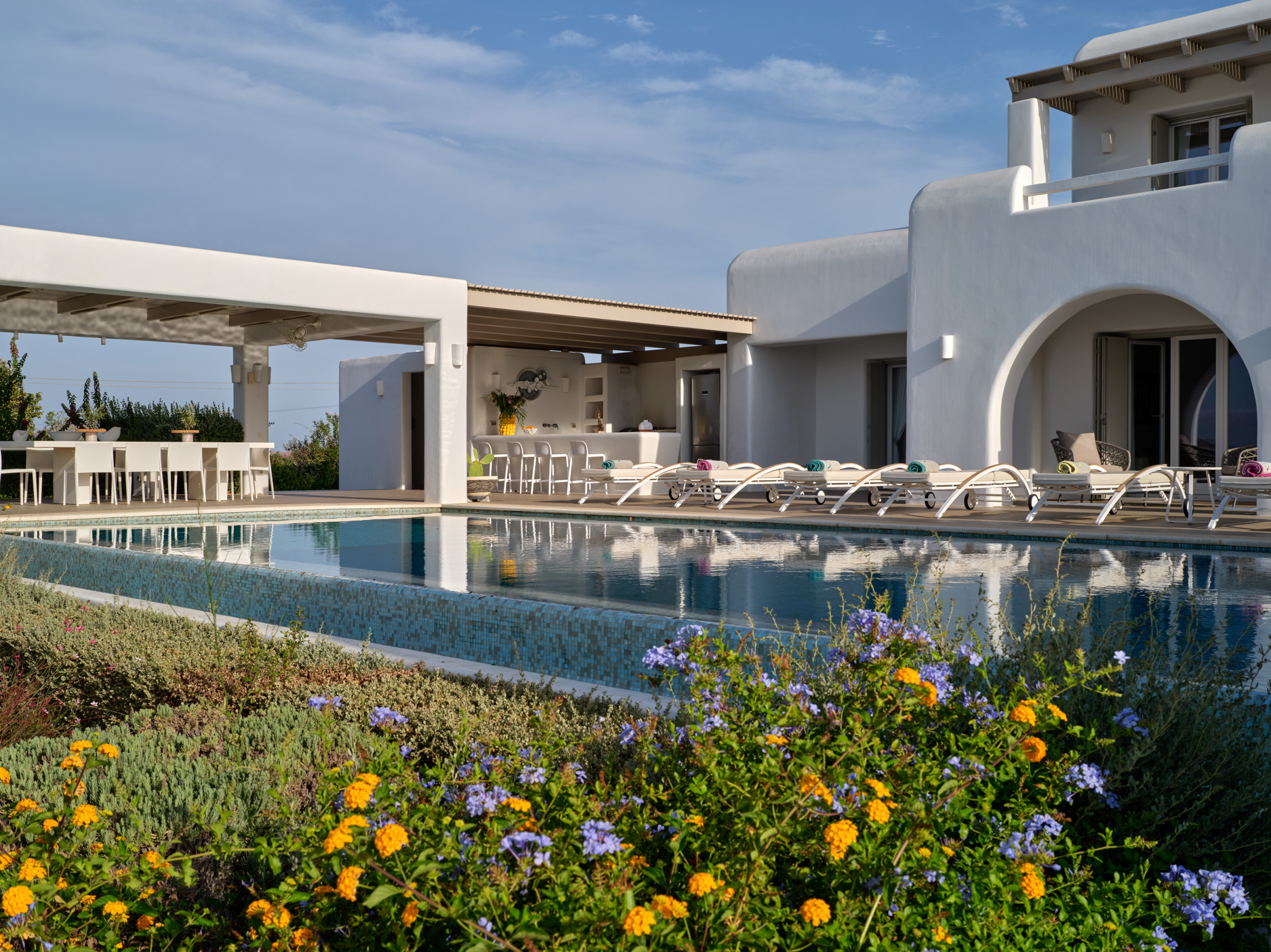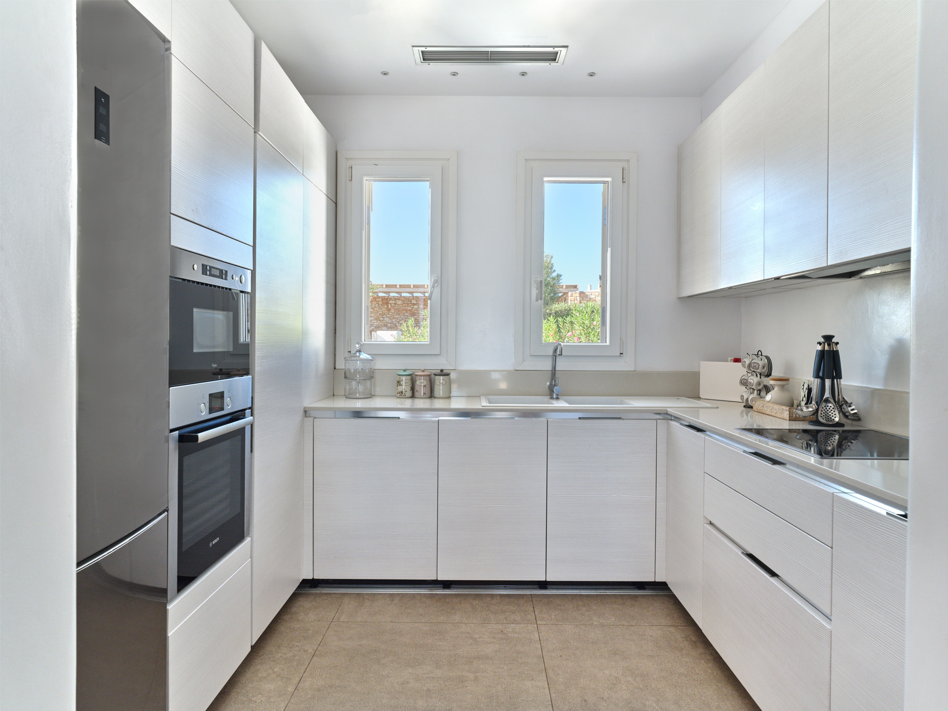 Fresh and elegant, this property offers both luxury and beautiful, bright lounge spaces styled with meticulous design, discreetly conveying a graceful island flair in white and turquoise tones and with beautiful bedrooms featuring modern, spacious bathrooms.