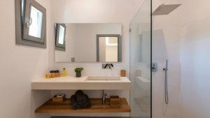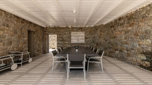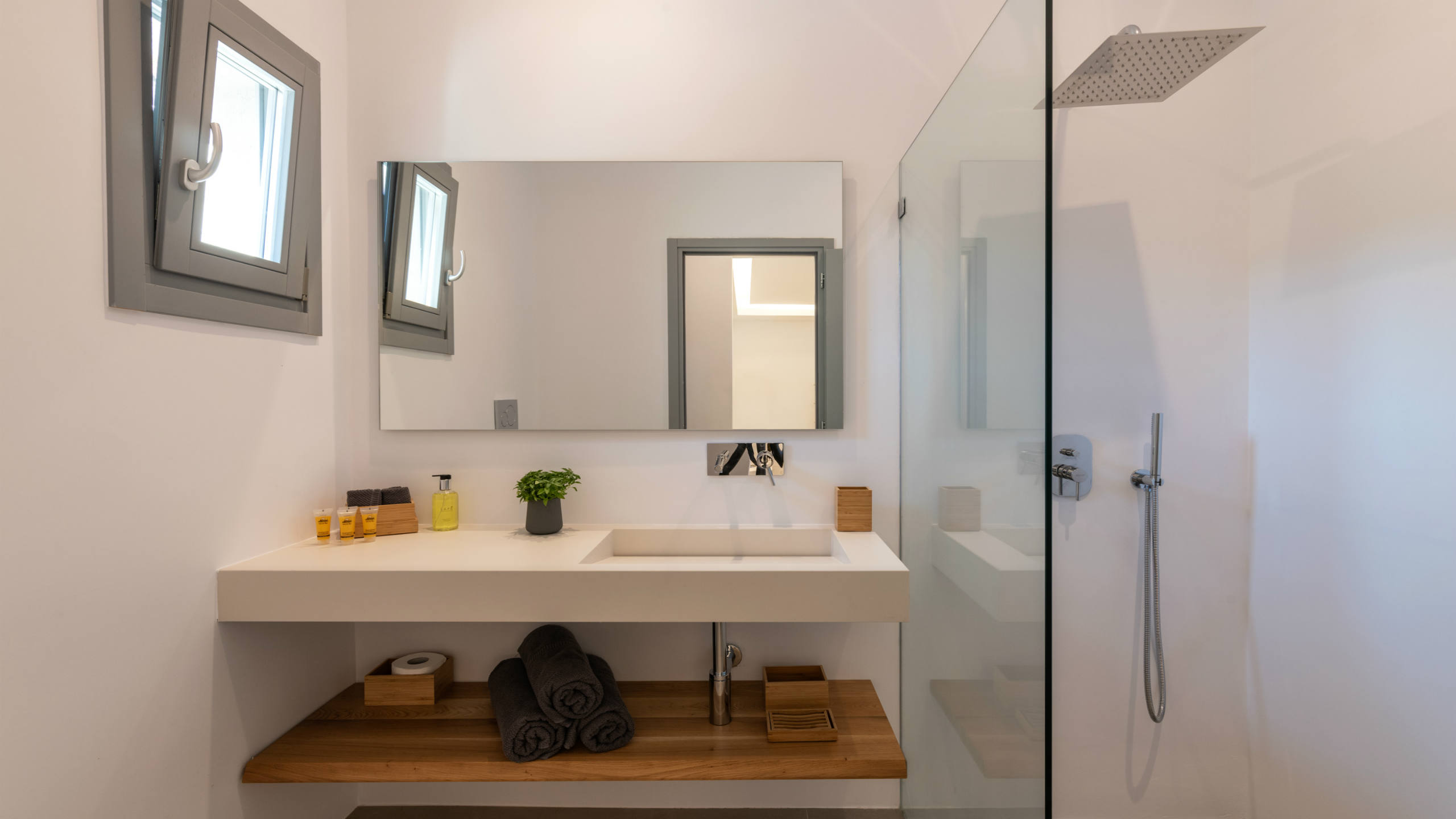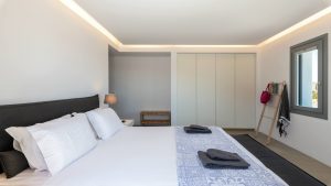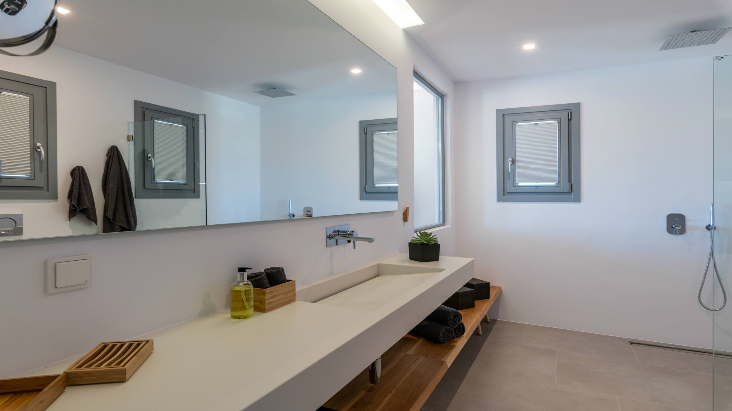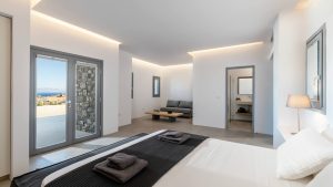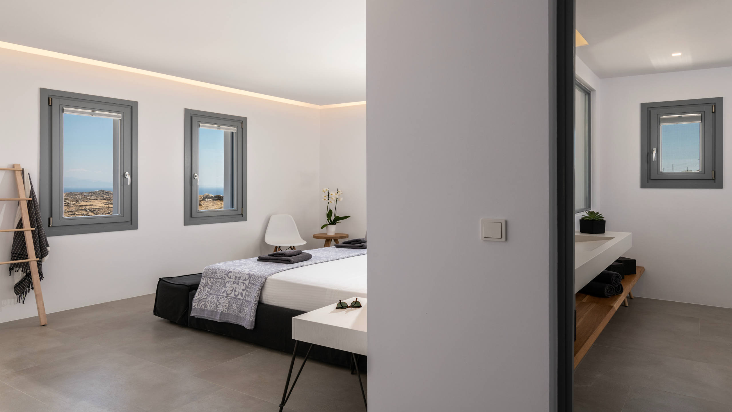 Newly built on a large land plot and in an elevated position just over 2 km or 6 driving minutes to Agrari Beach this magnificent contemporary Villa can accommodate large groups in total privacy in what can only be described as the perfect Myconian setting. Combining the rocky elements of its surroundings Villa Rocky is built of local stone and colours that integrate in perfect harmony with its typical Myconian landscape.