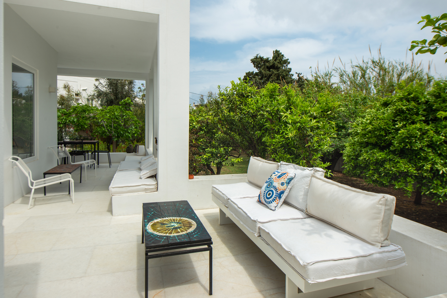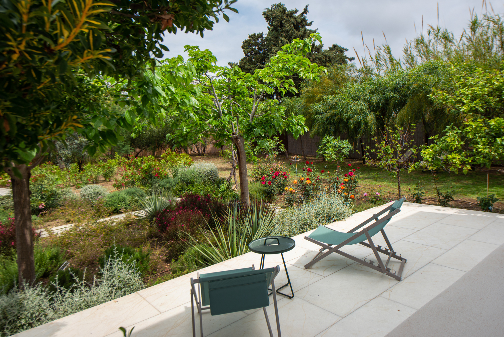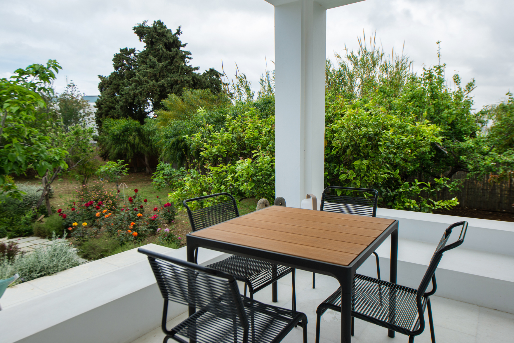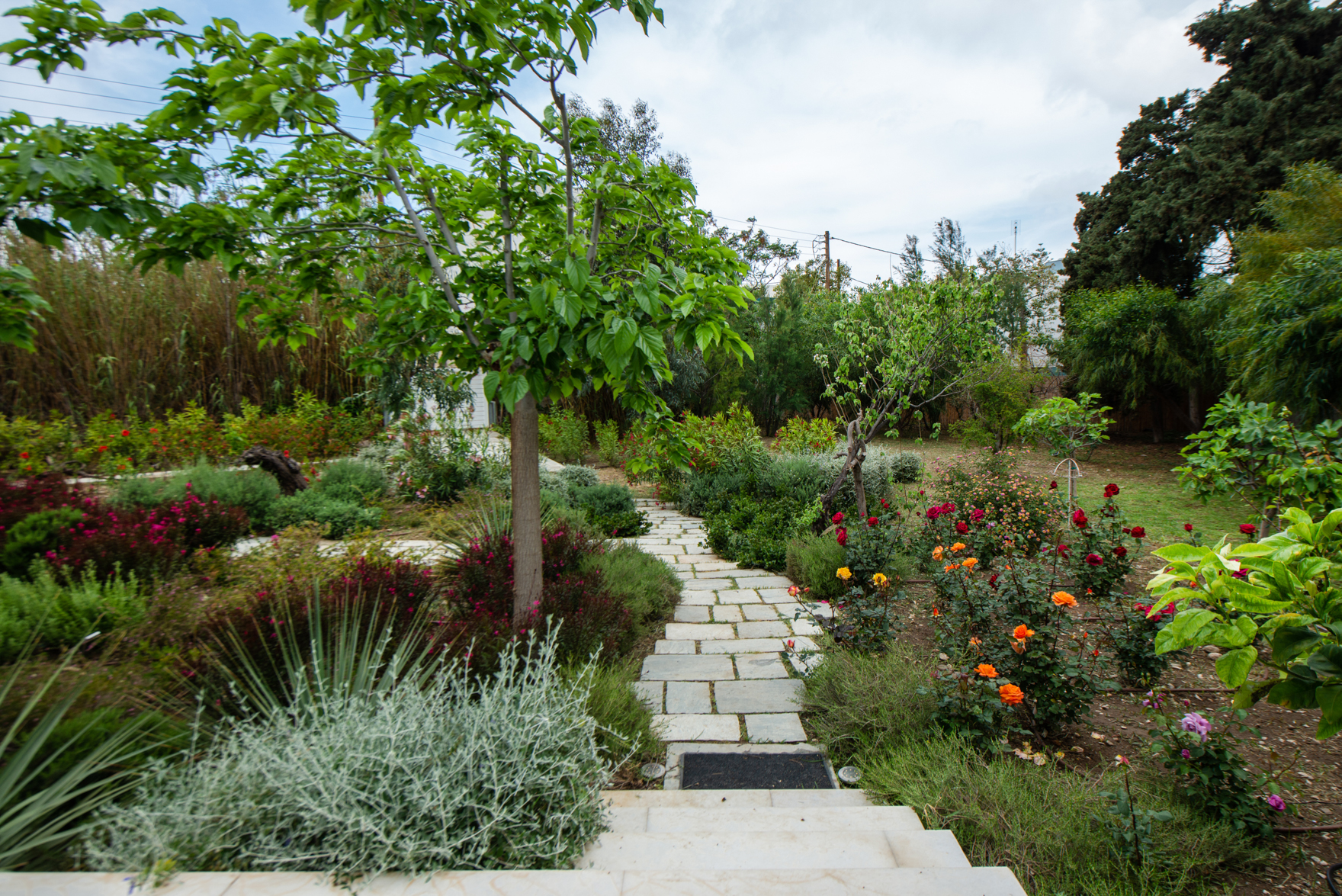 It combines the convenience of Town living and the serenity of its surroundings. The Villa rests on a large and private property plot with a verdant ambience including fruit and citrus trees, shrubs and bushes and a colour palette of flowers as well as roses.