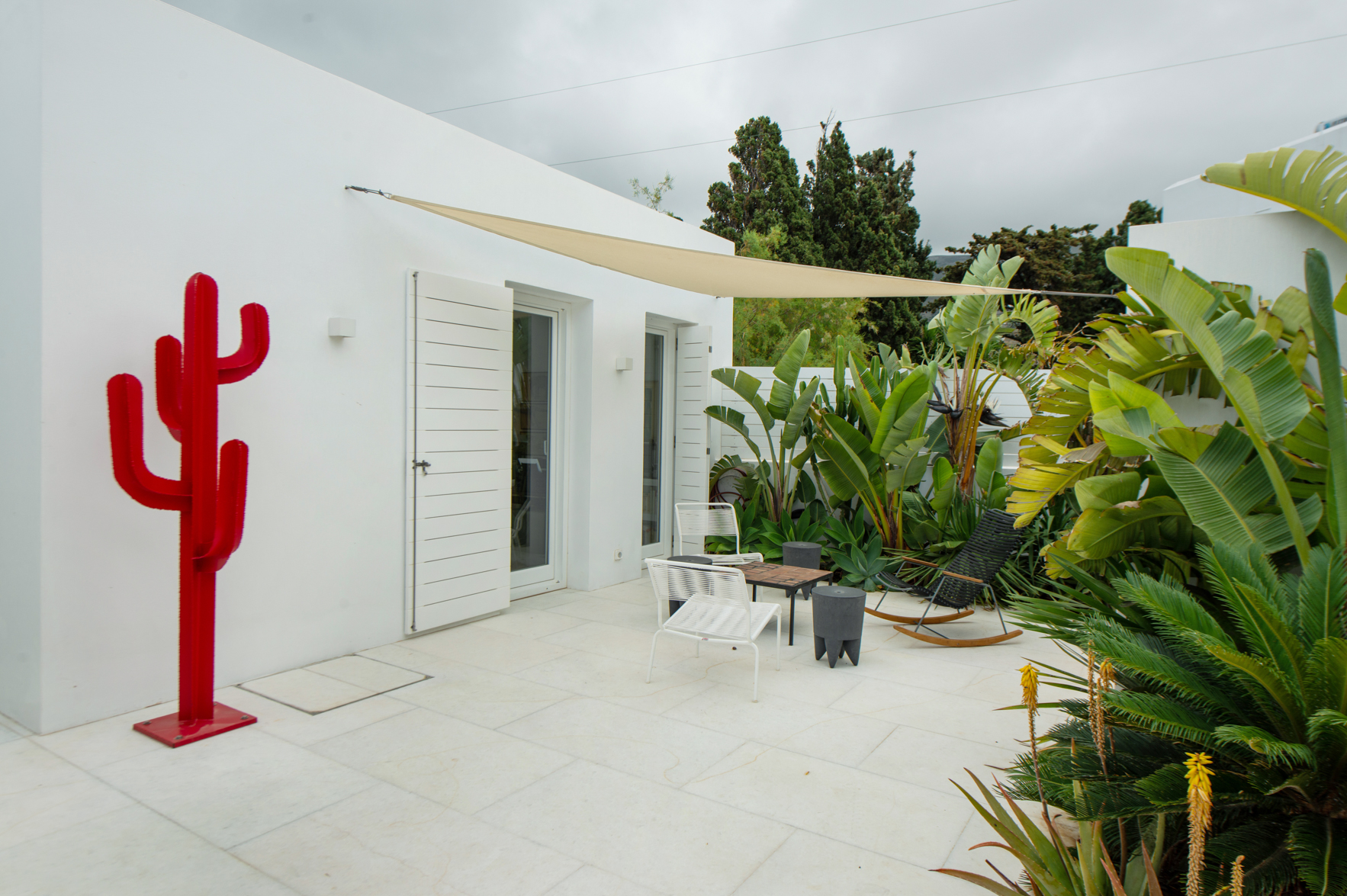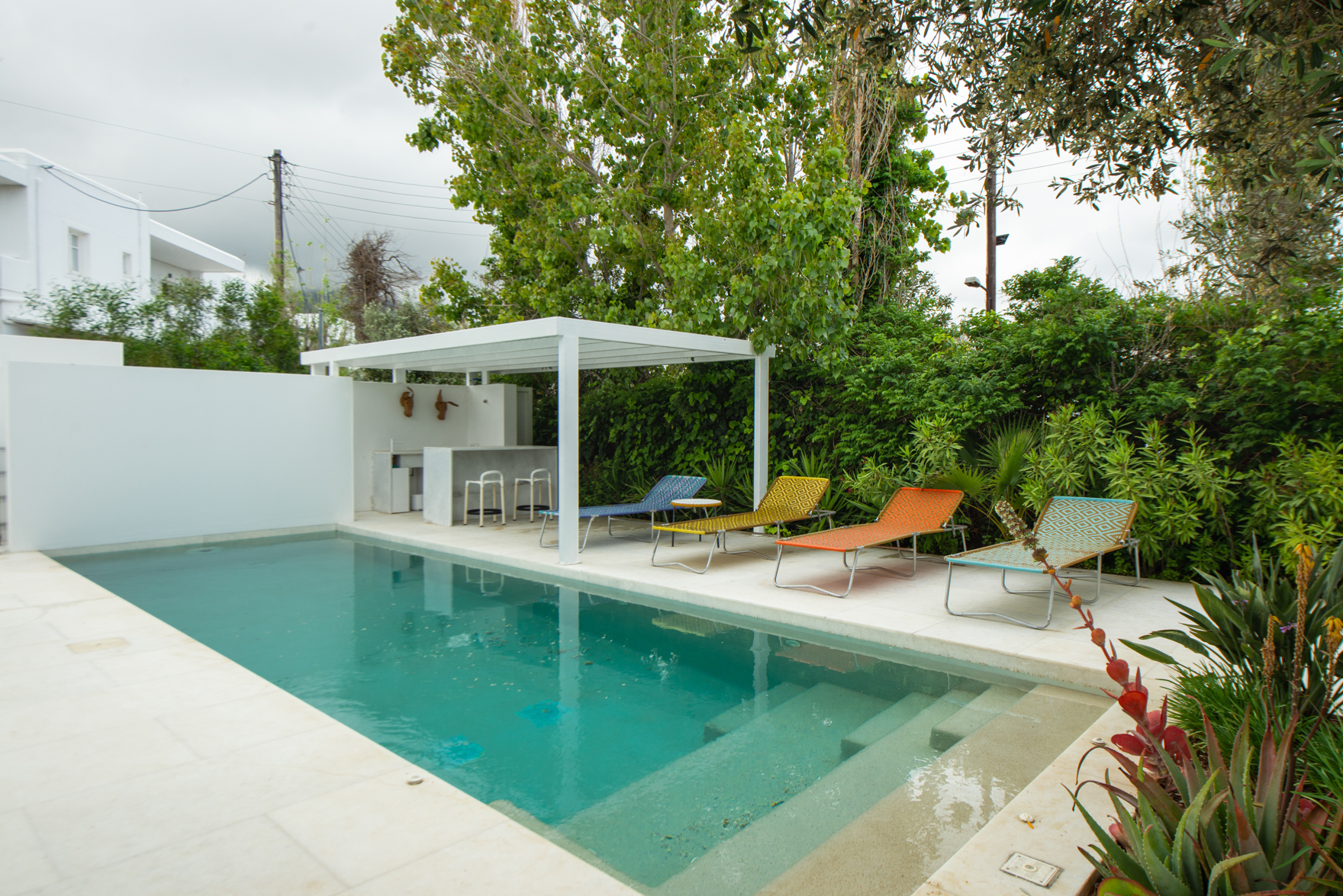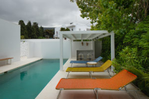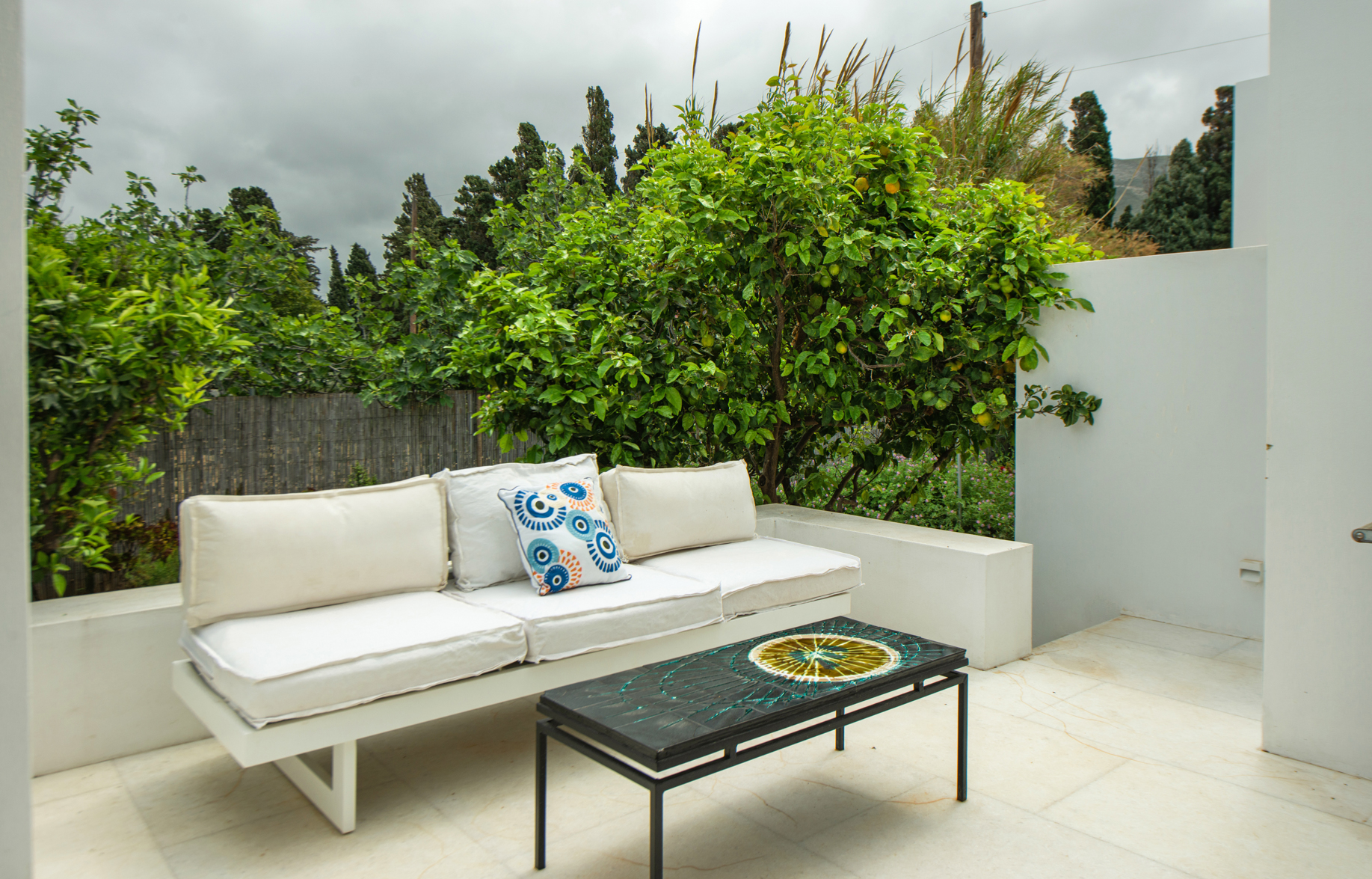 It combines the convenience of Town living and the serenity of its surroundings. The Villa rests on a large and private property plot with a verdant ambience including fruit and citrus trees, shrubs and bushes and a colour palette of flowers as well as roses.