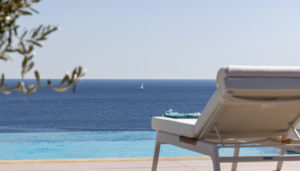 Room 3: double bedroom with king-size bed, smart TV, central ventilation & [A/C], en-suite bathroom – direct access to shaded outdoor lounge area and to fire pit lounge, via balcony doors | amazing sea views.