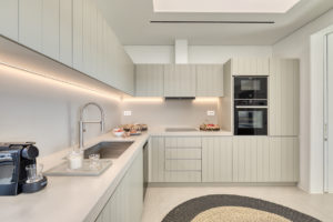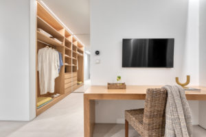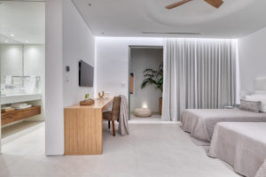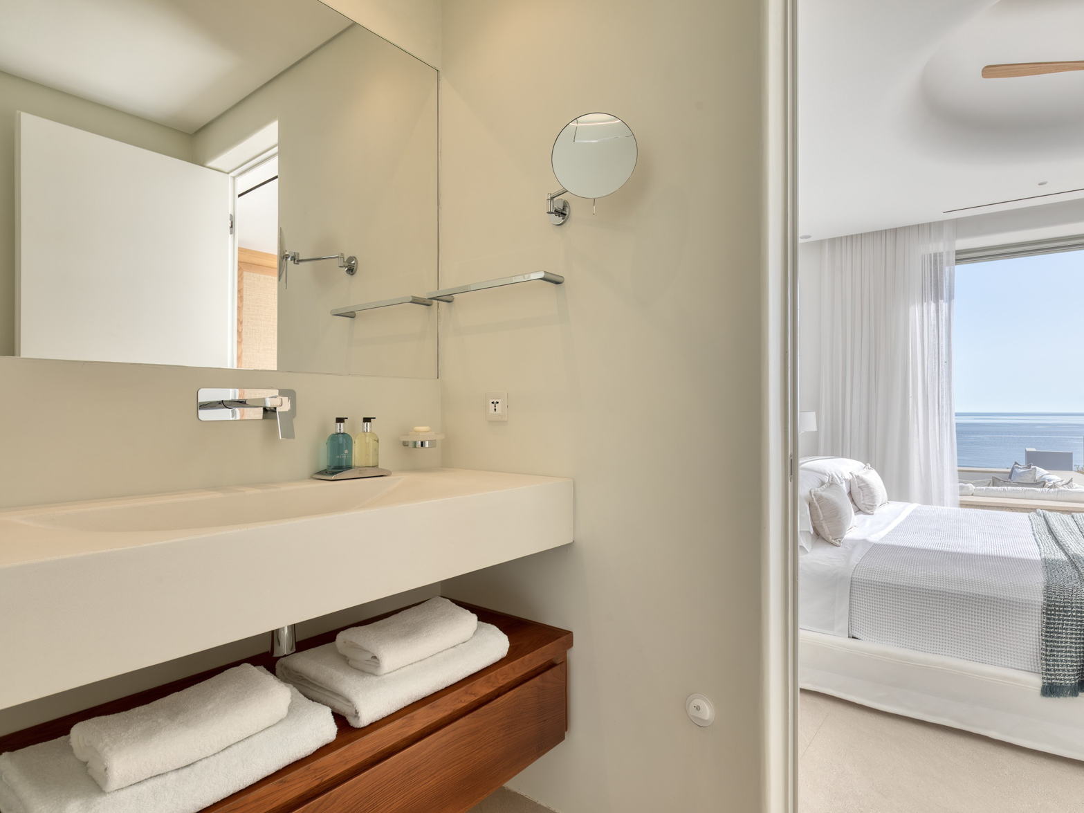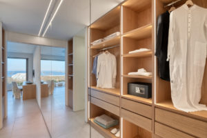 Guest house 3: master bedroom with king-size bed, smart TV, central ventilation & [A/C], walk-in closet, build-in sofa, en-suite bathroom, sitting area – direct access to Guest house 2 via internal doors, direct access to Garden via balcony doors | amazing sea views.