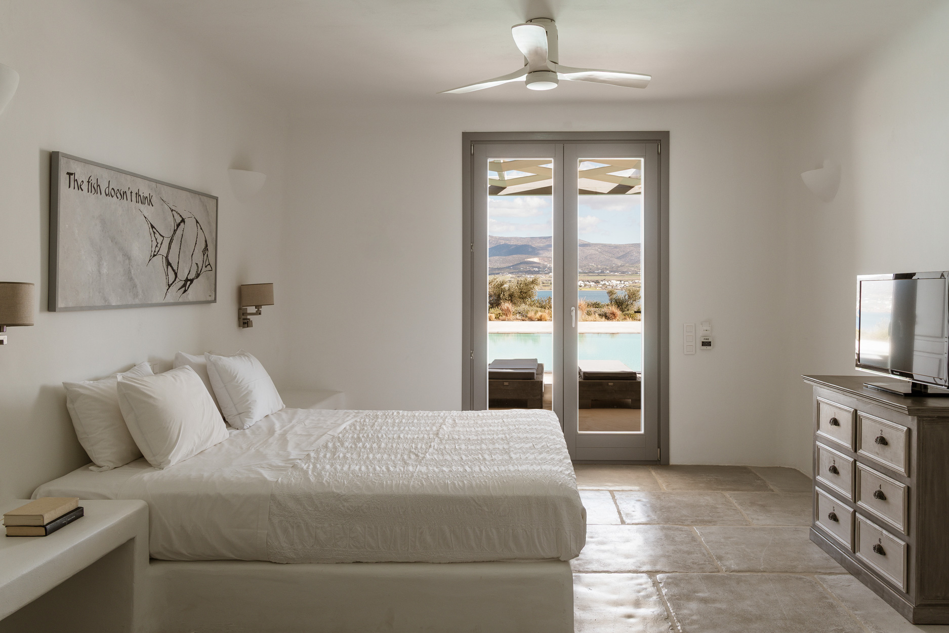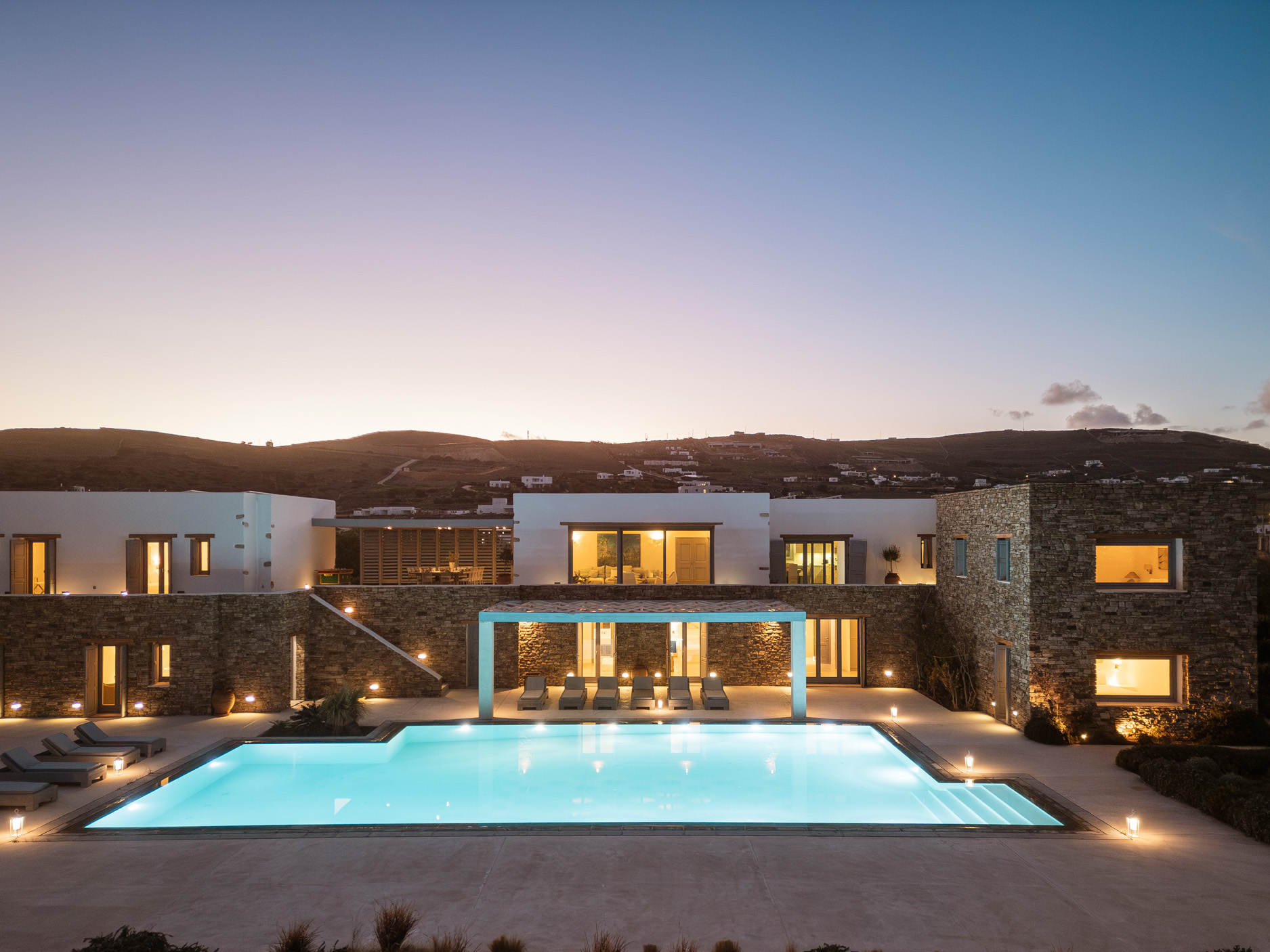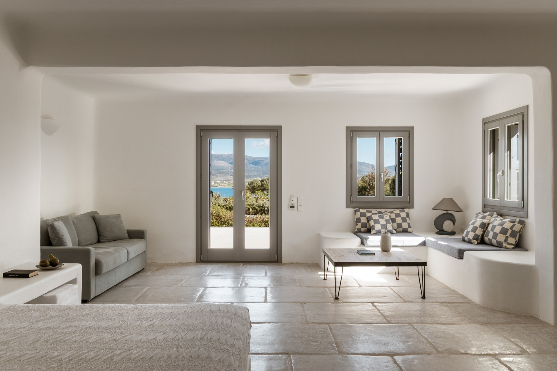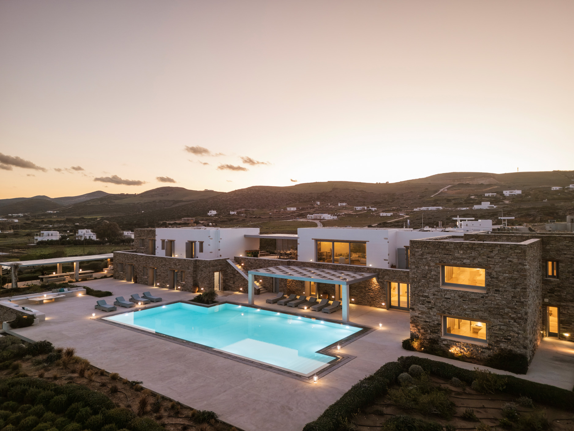 Located just a short drive from Antiparos Town, this brand-new multi-level villa enjoys a privileged position overlooking the sea channel between Paros and Antiparos. Designed to host larger groups in comfort, it offers an impressive 13 spacious double bedrooms, all with en-suite bathrooms, combining generous shared spaces with plenty of privacy.