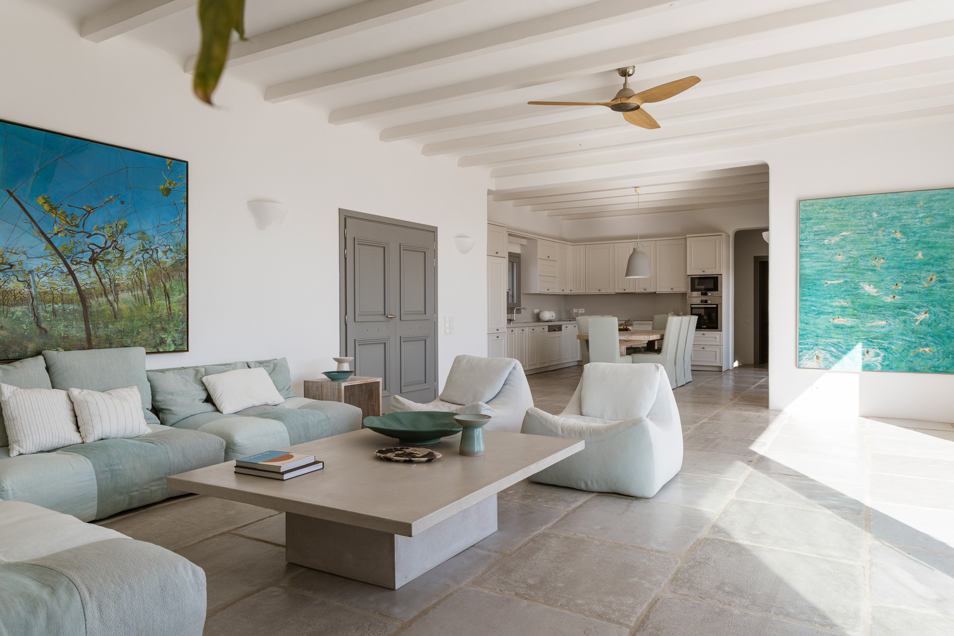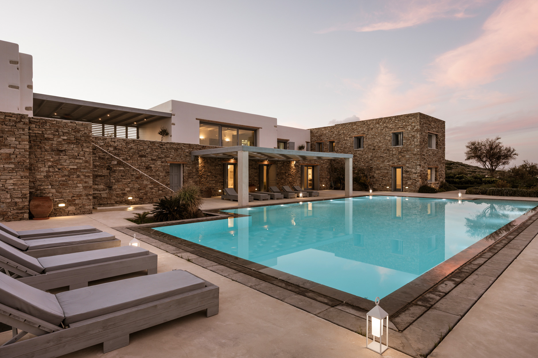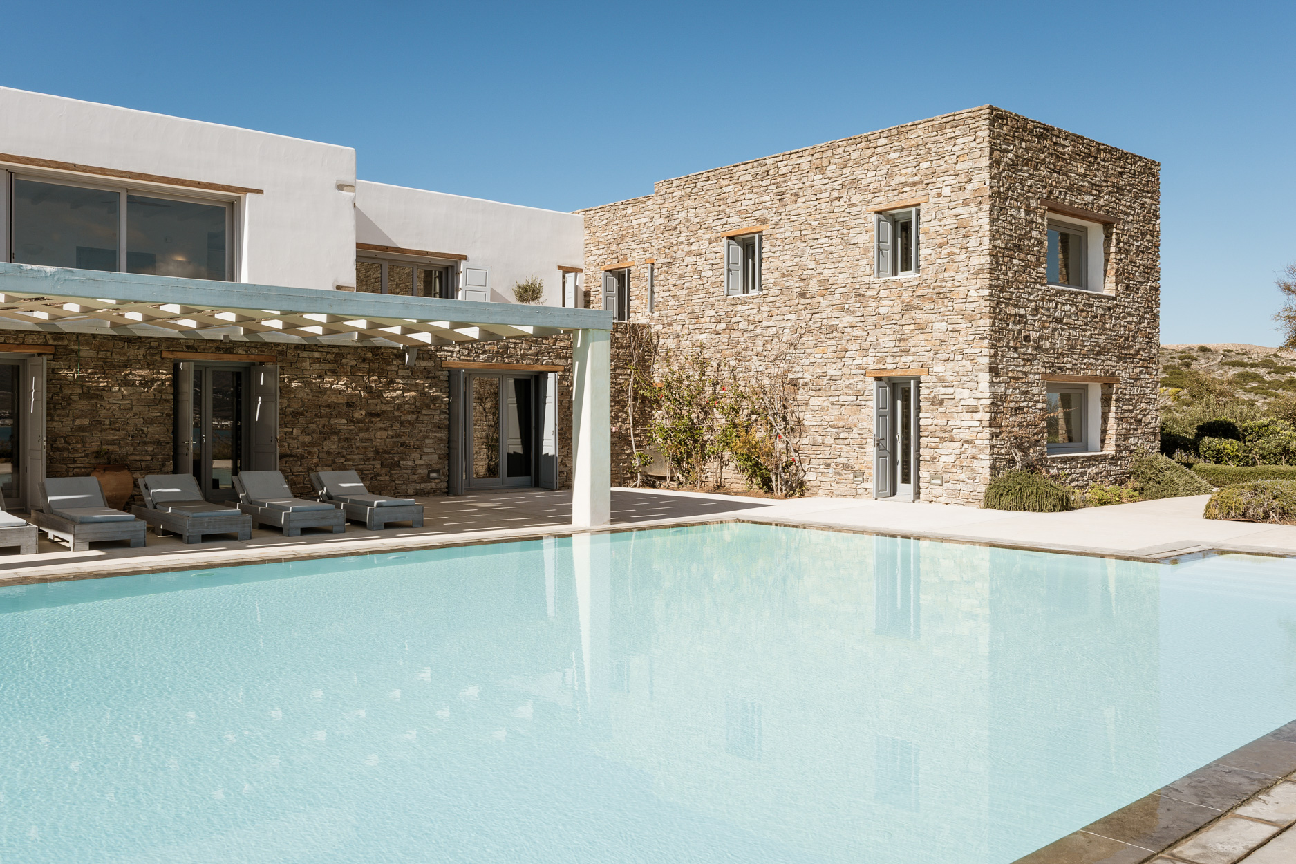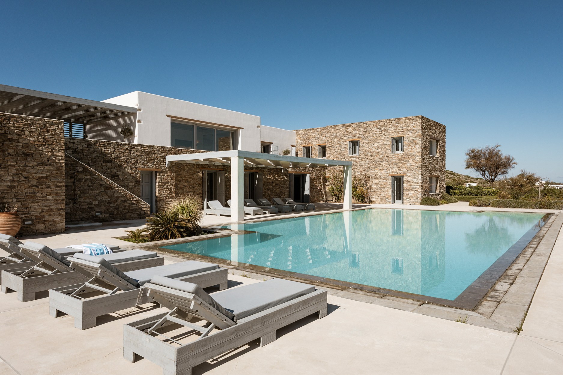 Located just a short drive from Antiparos Town, this brand-new multi-level villa enjoys a privileged position overlooking the sea channel between Paros and Antiparos. Designed to host larger groups in comfort, it offers an impressive 13 spacious double bedrooms, all with en-suite bathrooms, combining generous shared spaces with plenty of privacy.