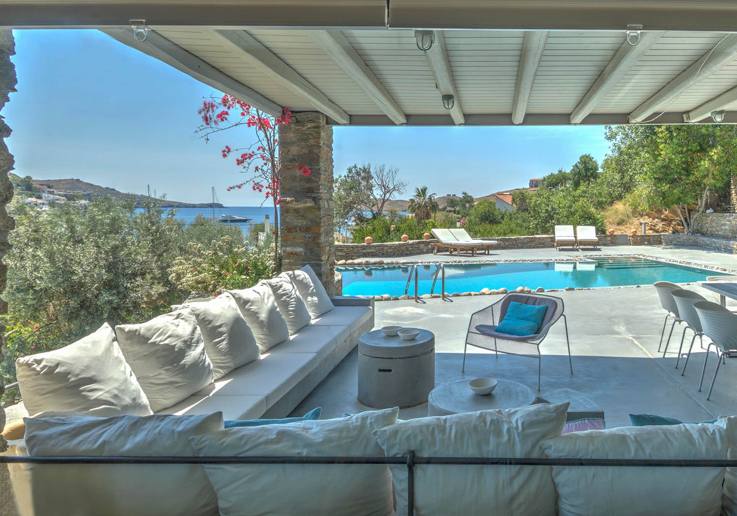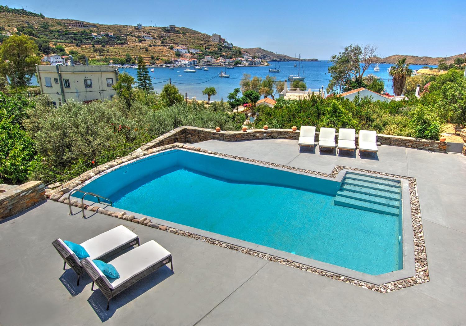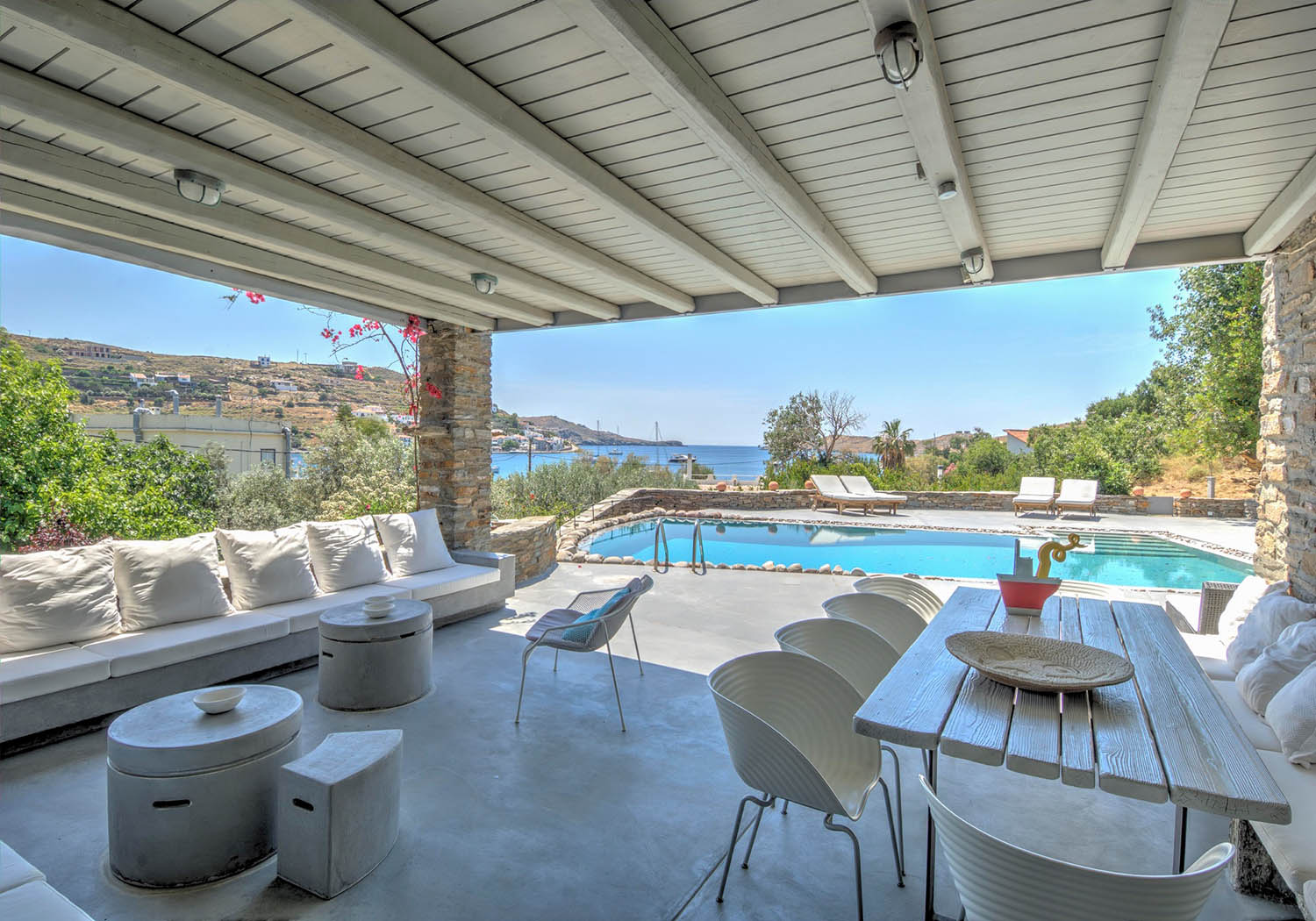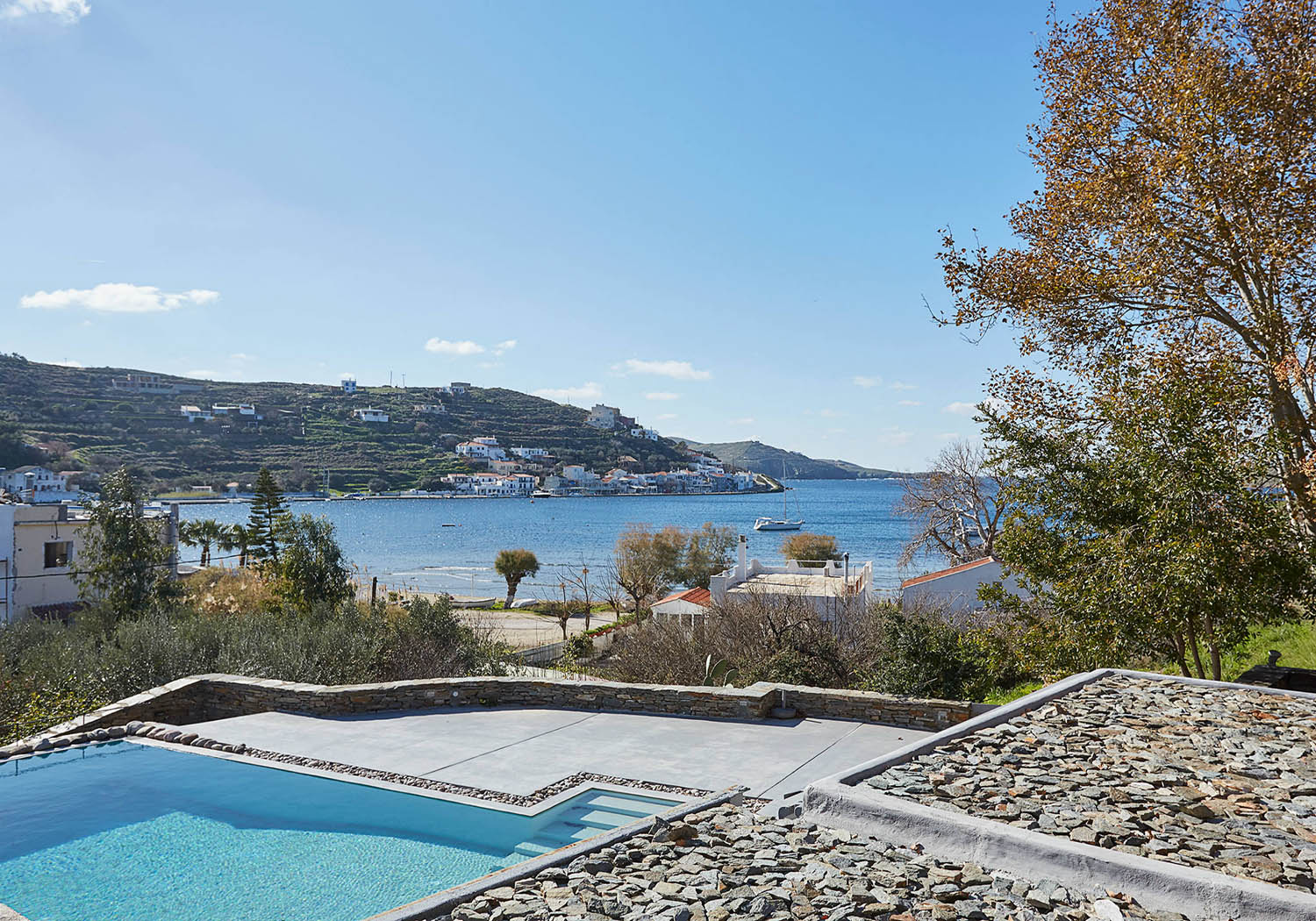 Villa Vourkarion is a stone-built property overlooking Vourkari yacht harbour where the best entertainment of the island can be found. Offering guests spacious living quarters from the double bedrooms to the living room and dining areas as well as its outdoors, the villa is a relaxing oasis.