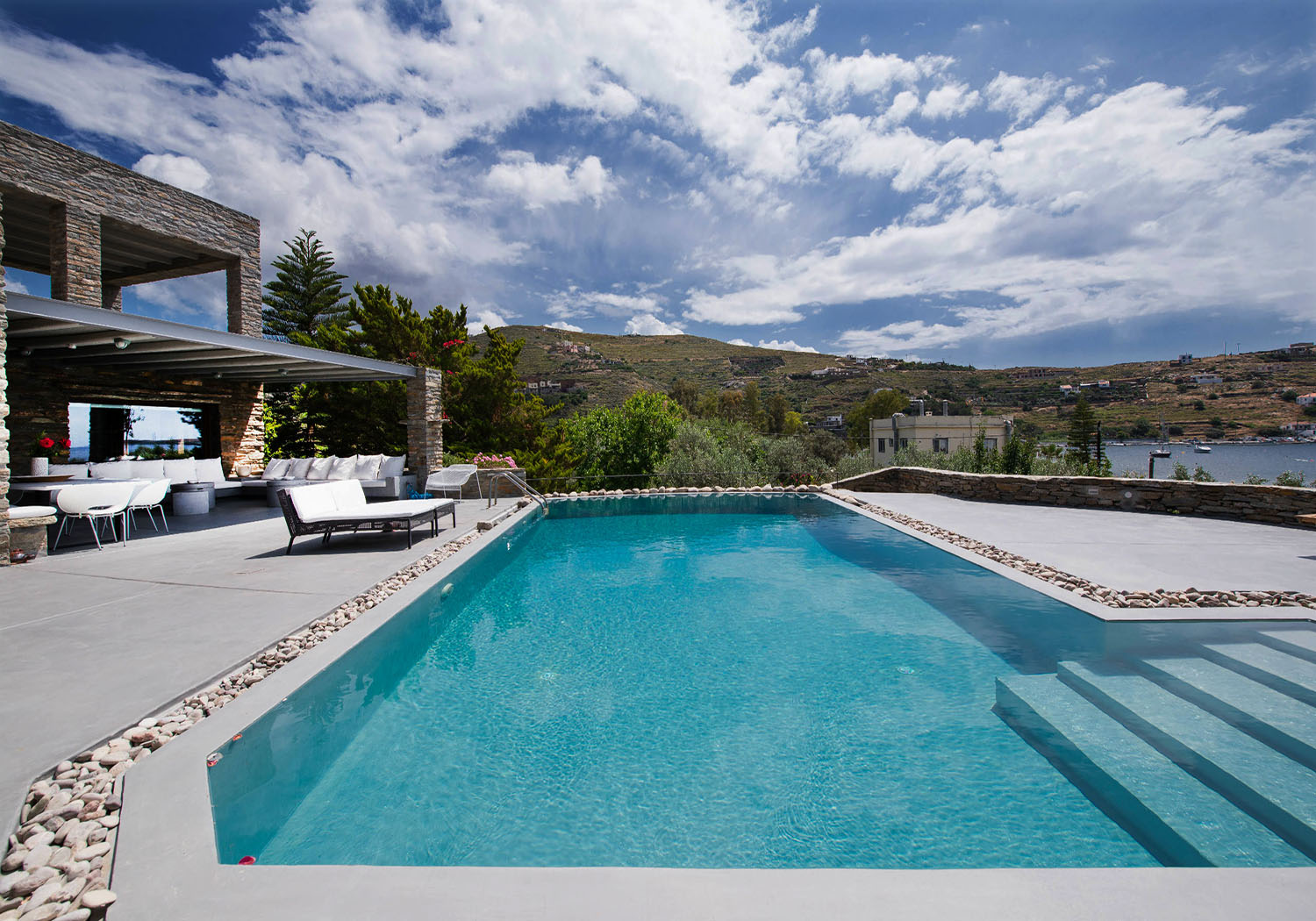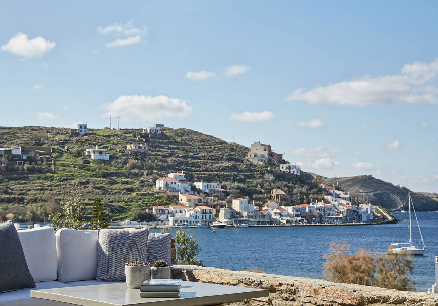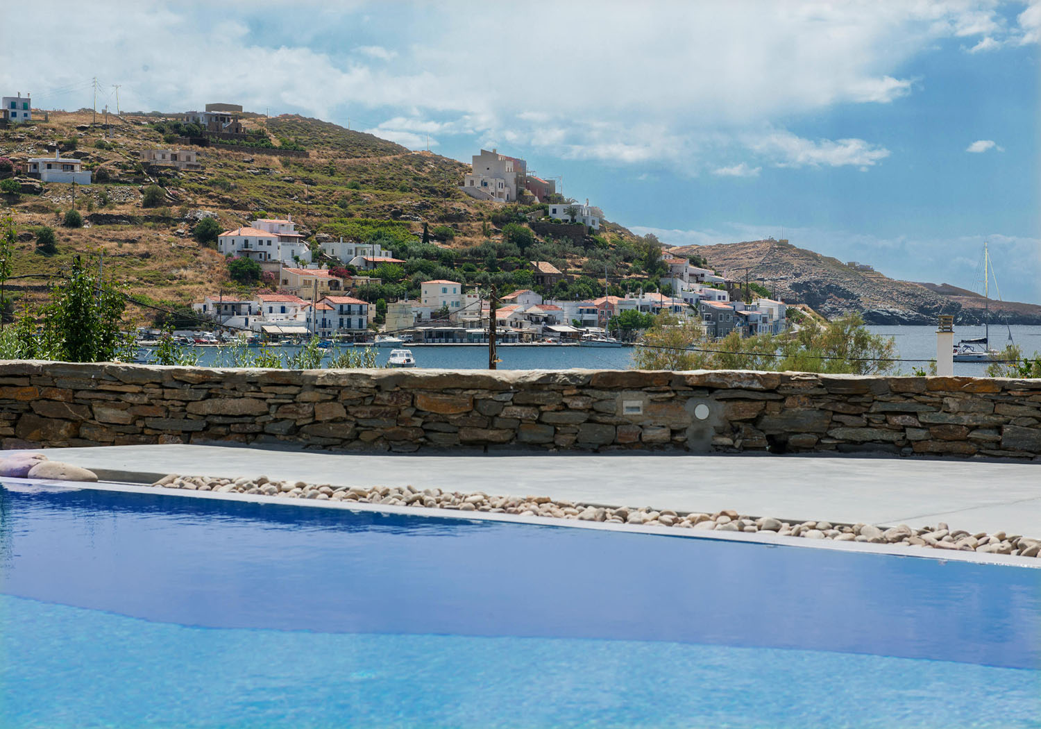 Villa Vourkarion is a stone-built property overlooking Vourkari yacht harbour where the best entertainment of the island can be found. Offering guests spacious living quarters from the double bedrooms to the living room and dining areas as well as its outdoors, the villa is a relaxing oasis.