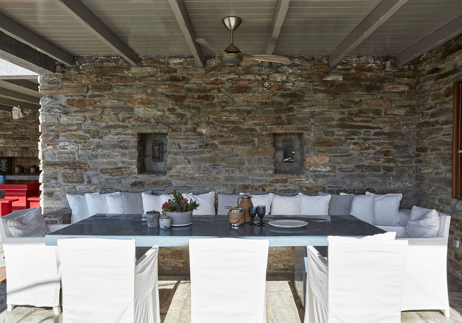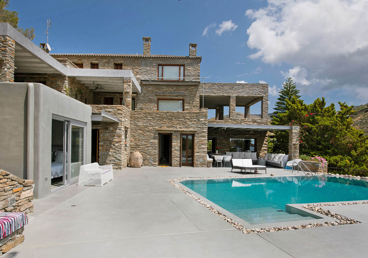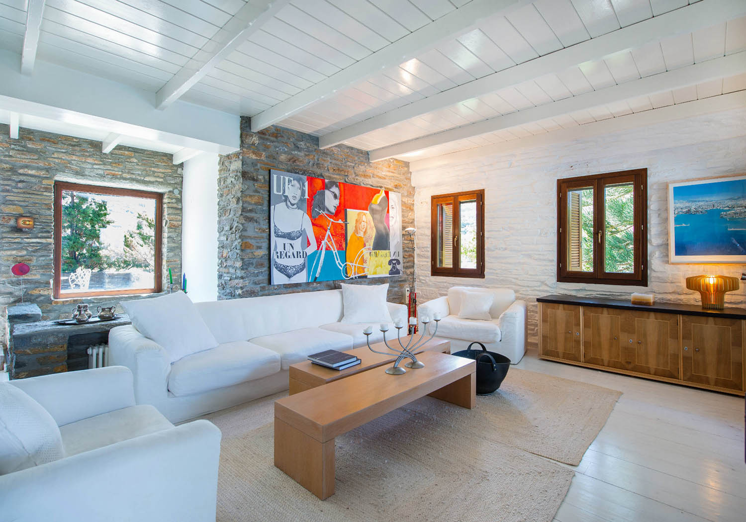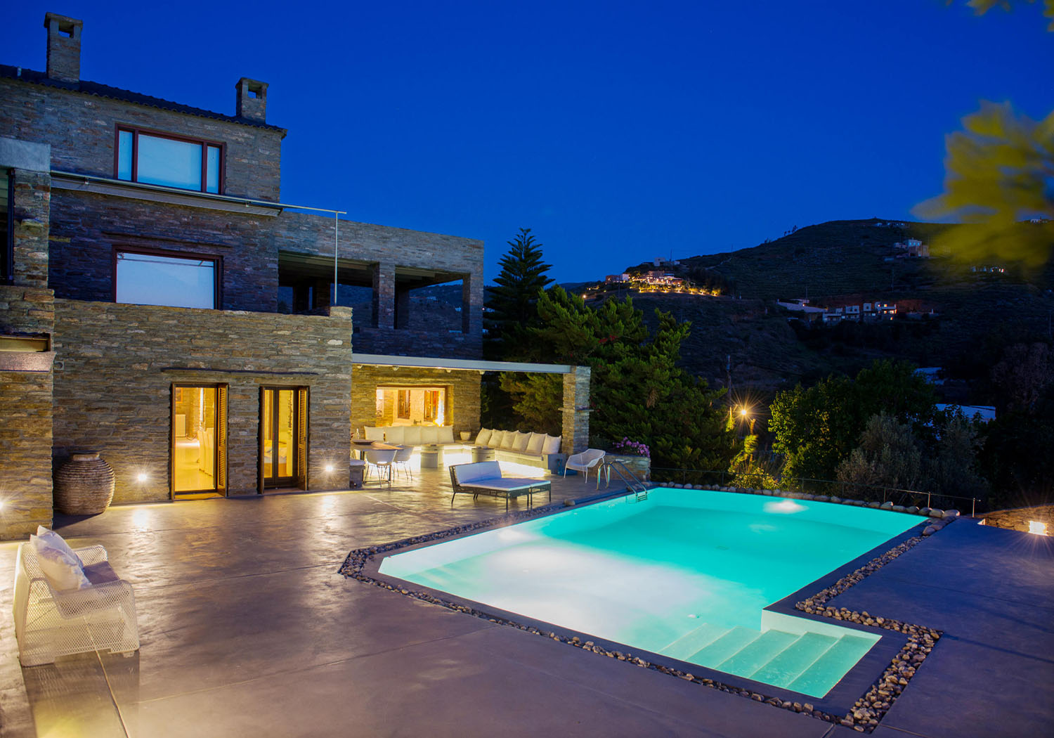 Villa Vourkarion is a stone-built property overlooking Vourkari yacht harbour where the best entertainment of the island can be found. Offering guests spacious living quarters from the double bedrooms to the living room and dining areas as well as its outdoors, the villa is a relaxing oasis.