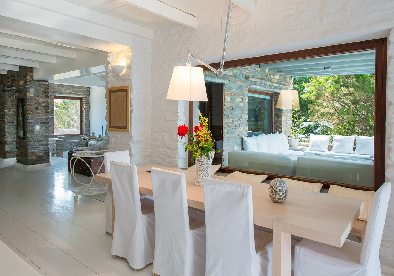 With wonderful views of Vourkari Village and dreamy sunsets, the villa is conveniently located to many of the nearby beaches.