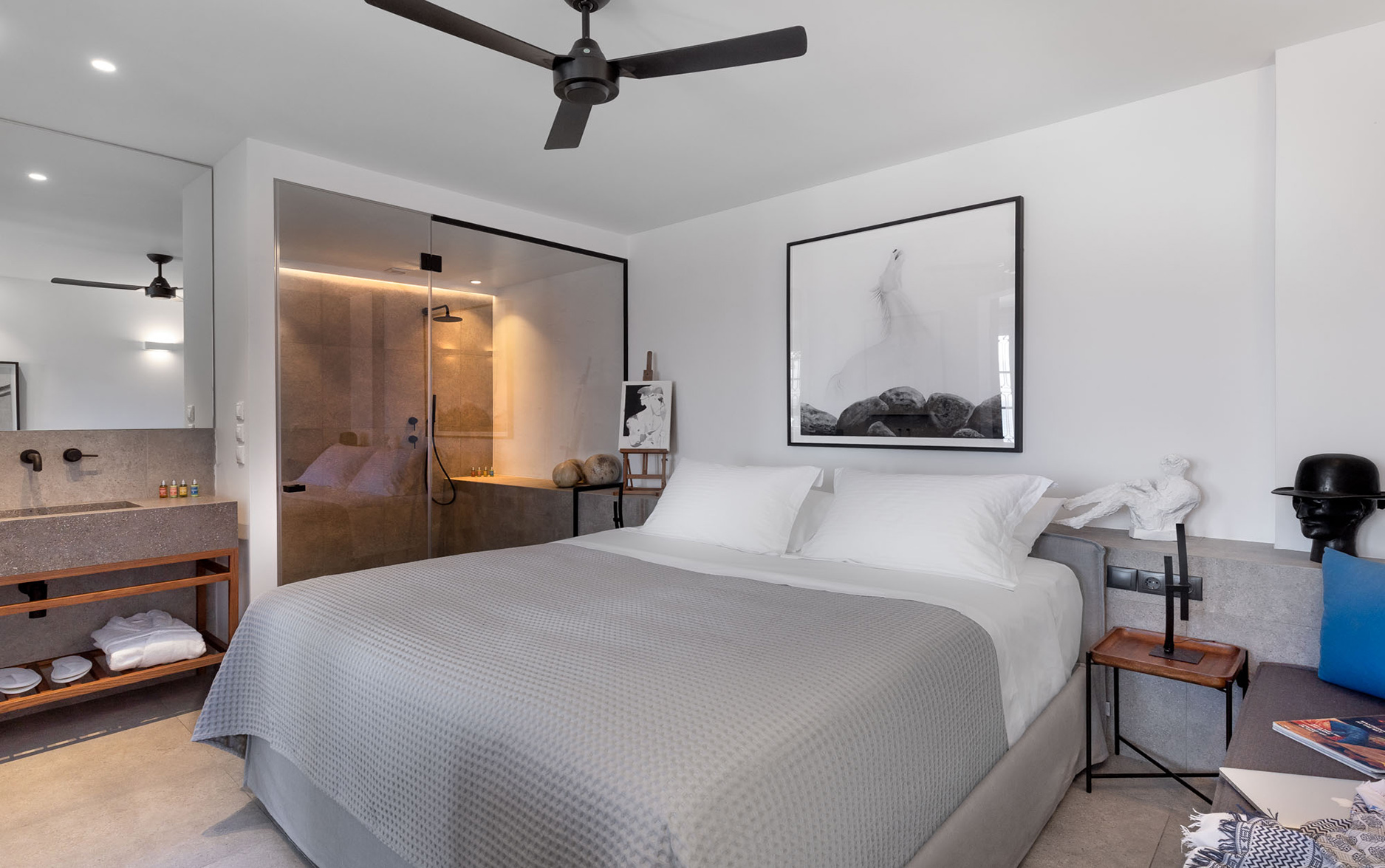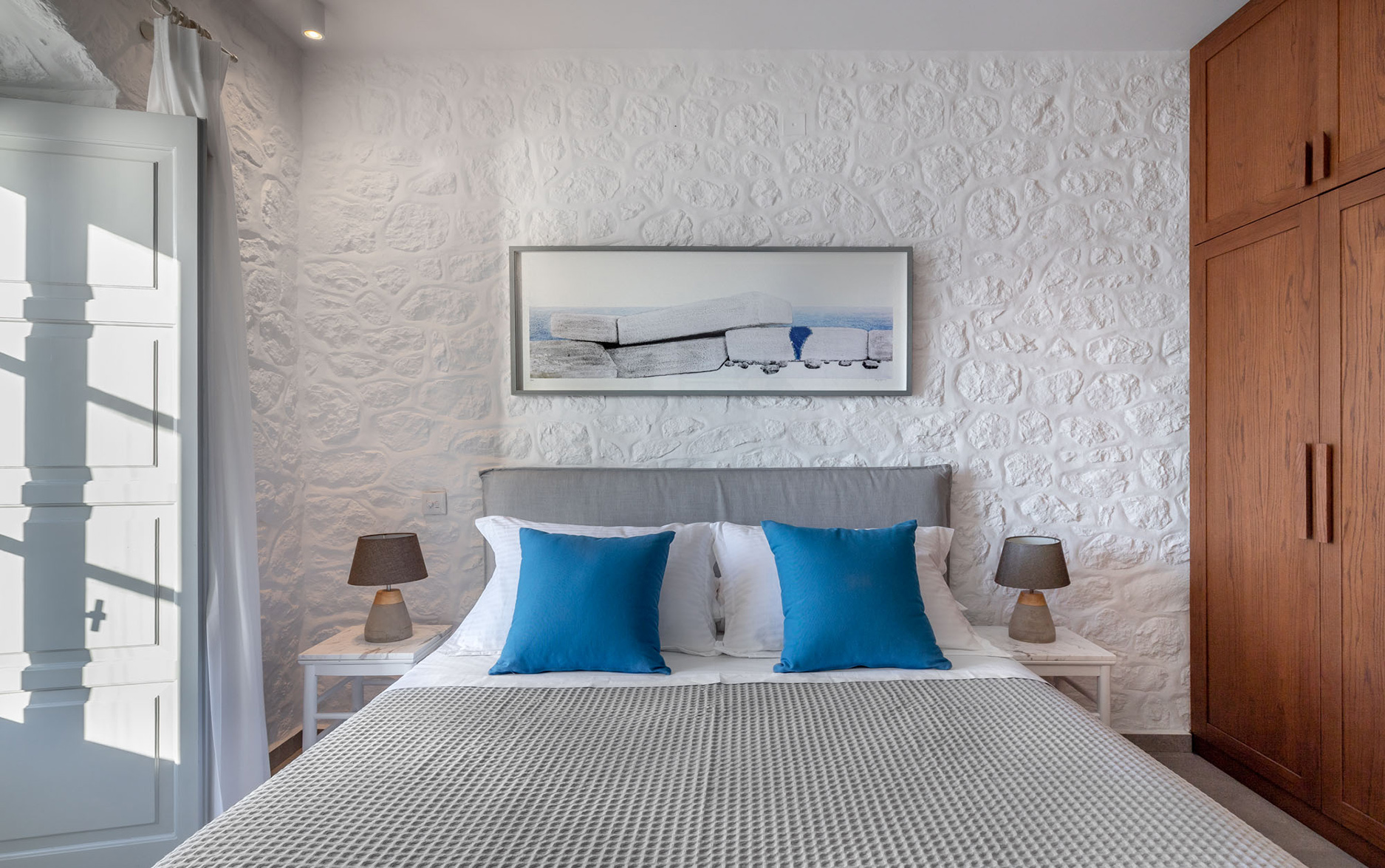 The original artworks in the bedrooms and impressive sculptures complimenting the terraces inspire a genuine connection with the roots of the residence while the contemporary design, delicate colors and eclectic furniture create a modern retreat for relaxation.